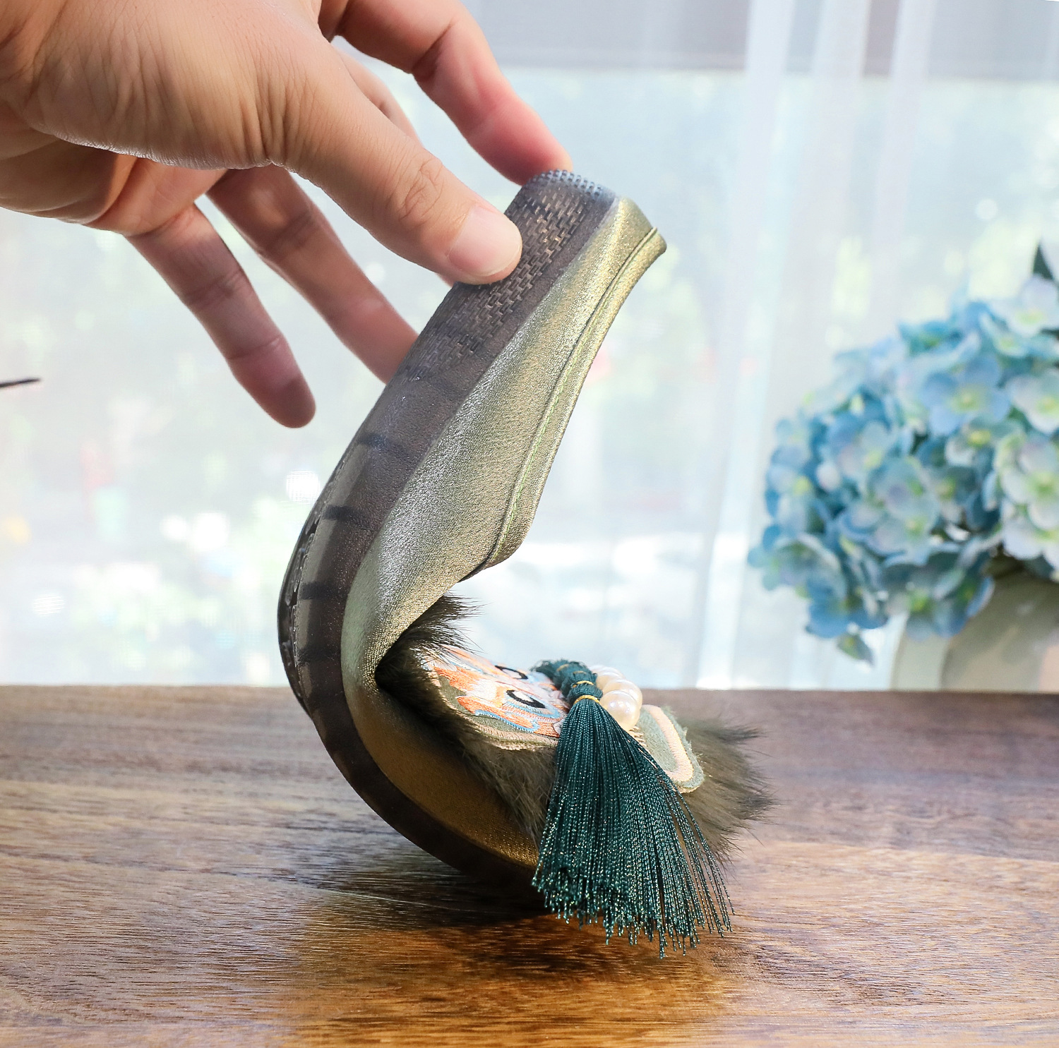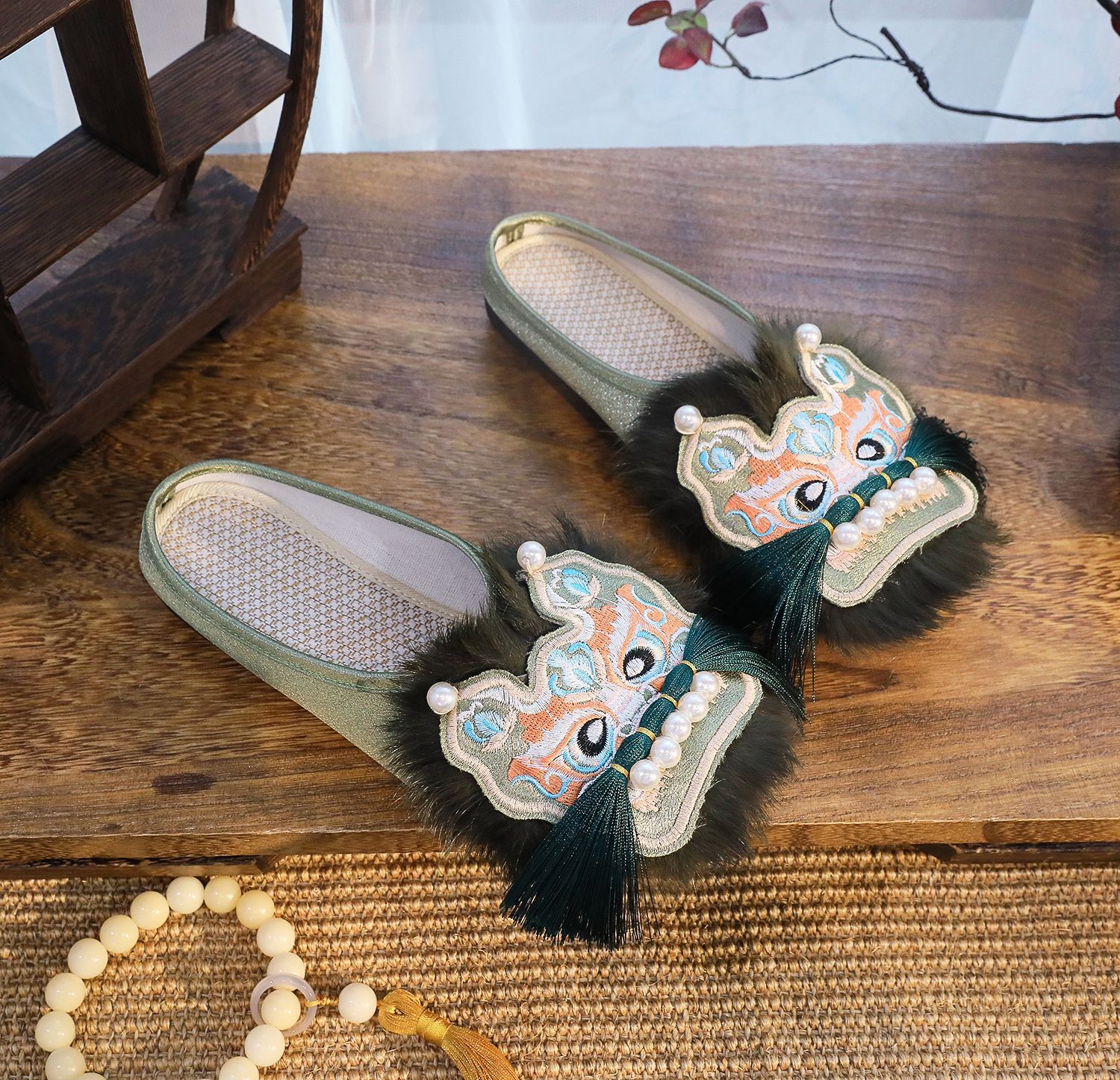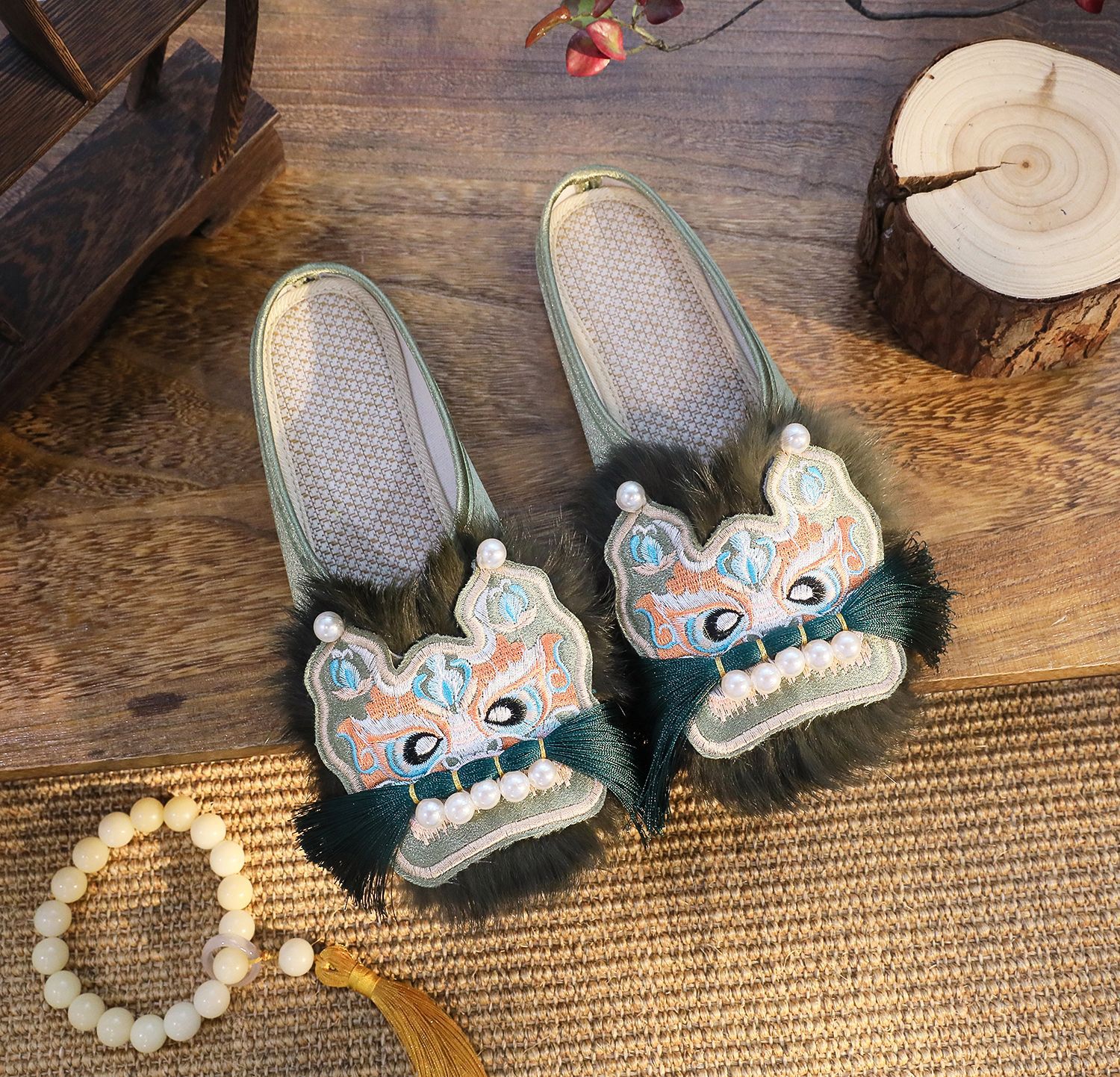瑞虎 2025新款國潮平底拖鞋復古民族風綉花鞋成人虎頭鞋女式拖鞋