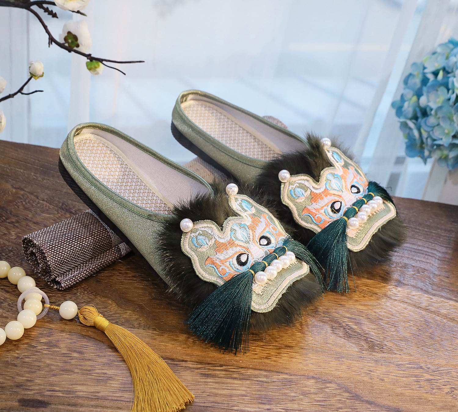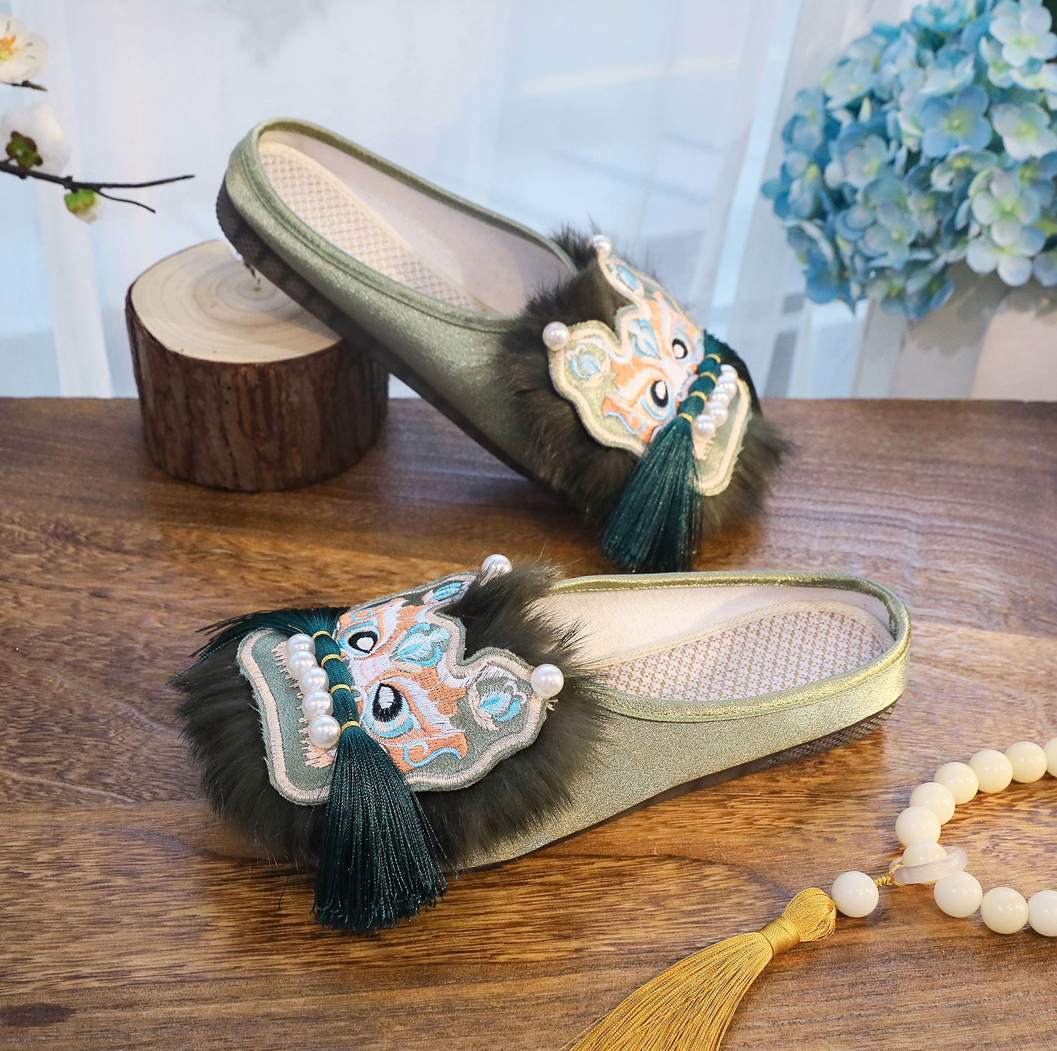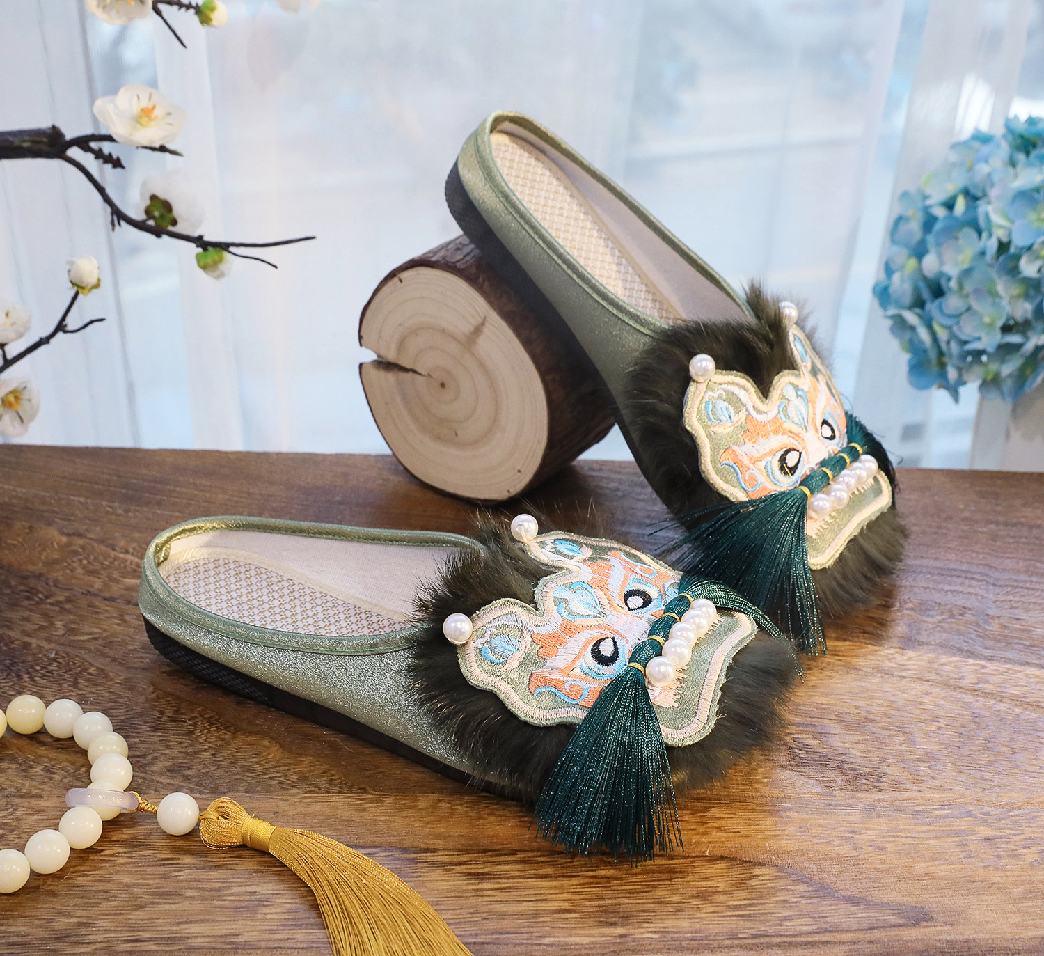 瑞虎 2025新款國潮平底拖鞋復古民族風綉花鞋成人虎頭鞋女式拖鞋
