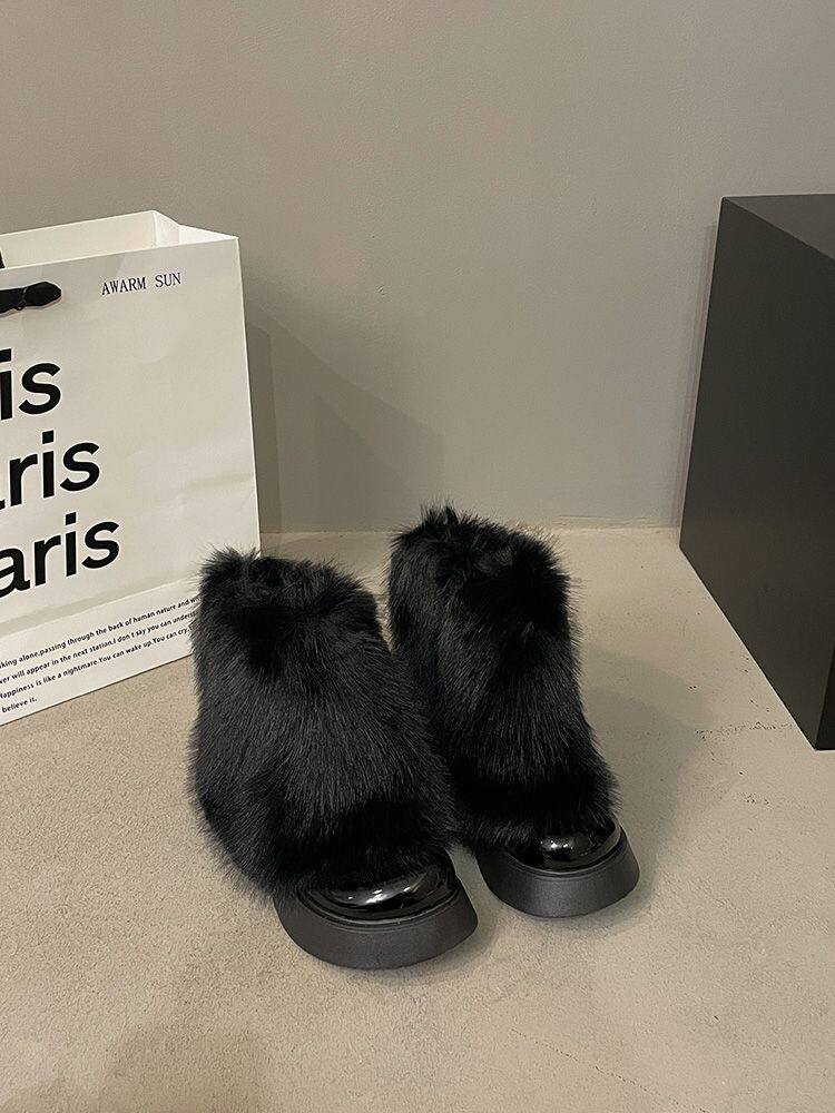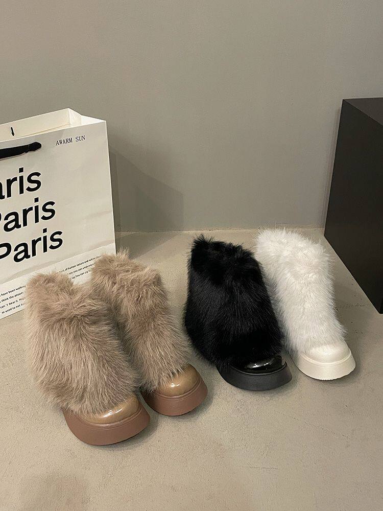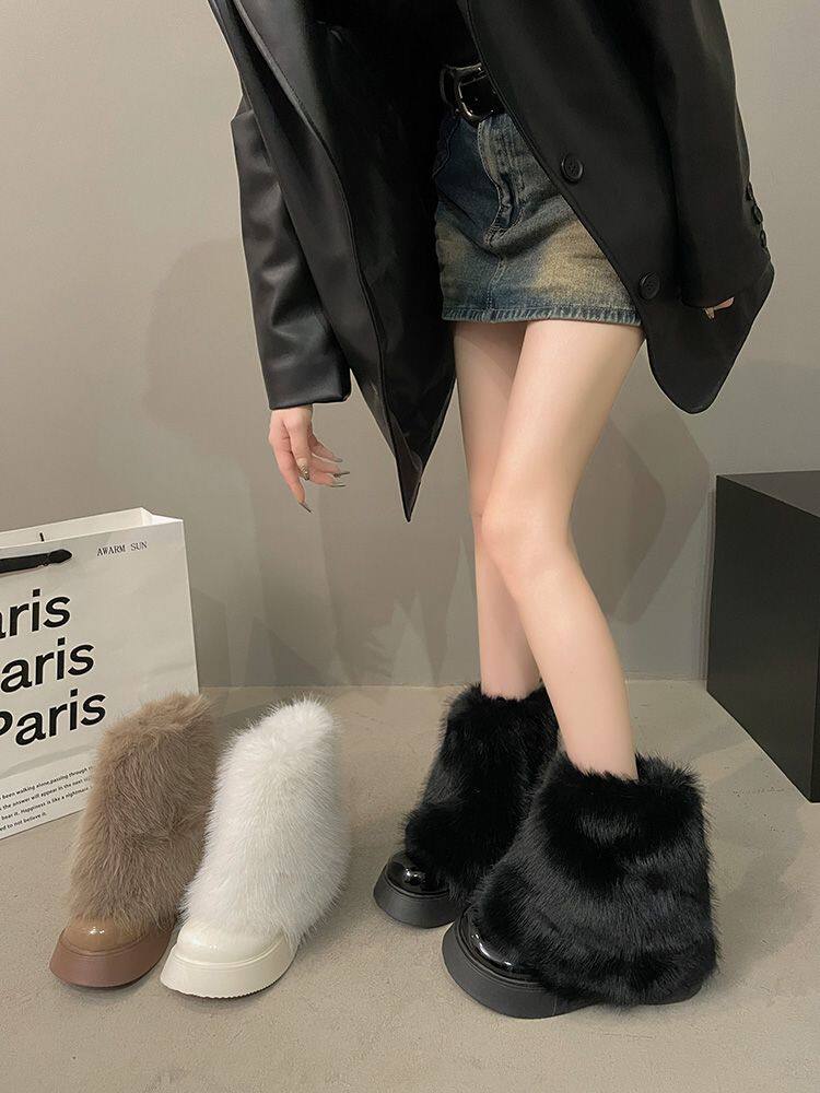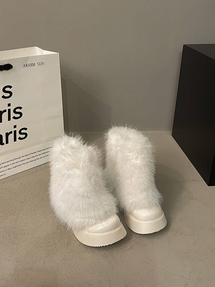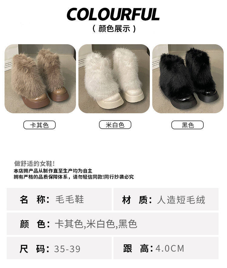 白色毛毛鞋女加絨雪地靴2025年春季新款厚底馬丁靴網紅洋氣短靴子