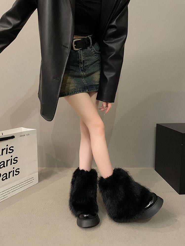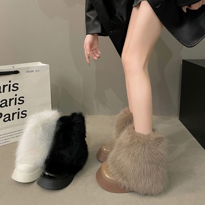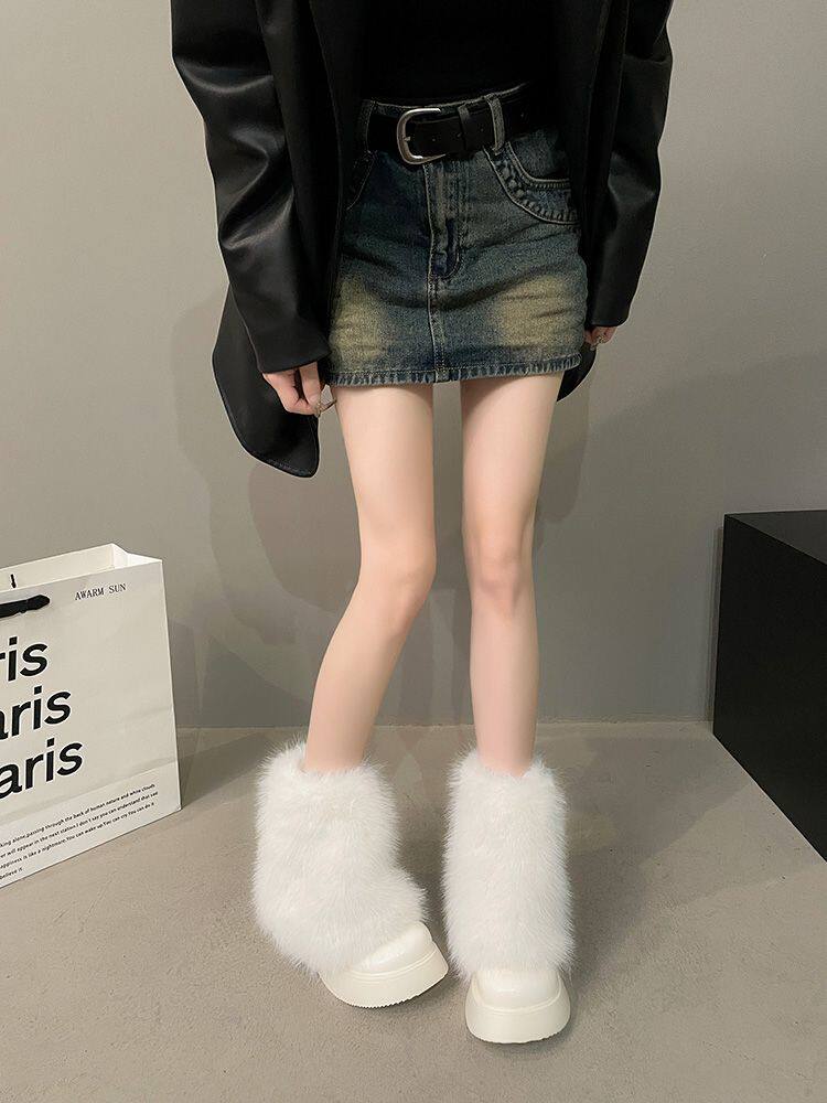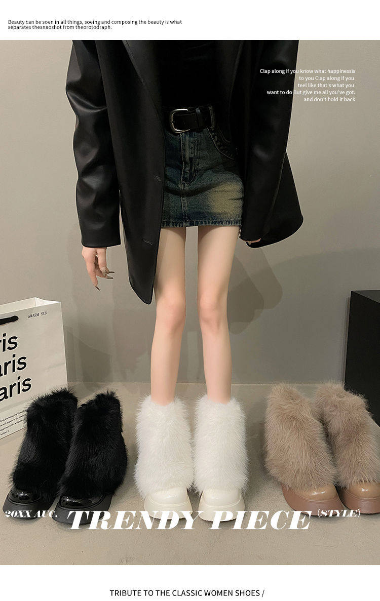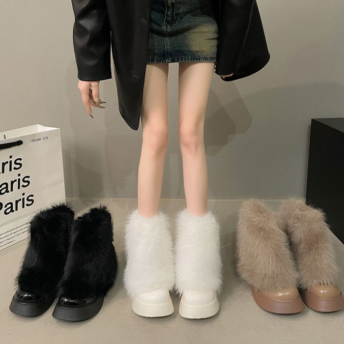 白色毛毛鞋女加絨雪地靴2025年春季新款厚底馬丁靴網紅洋氣短靴子