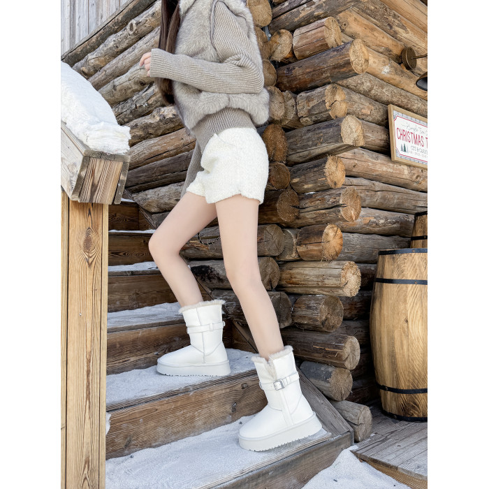 白色厚底防水棉靴2025冬季新款真皮加絨保暖雪地靴中筒短靴防滑