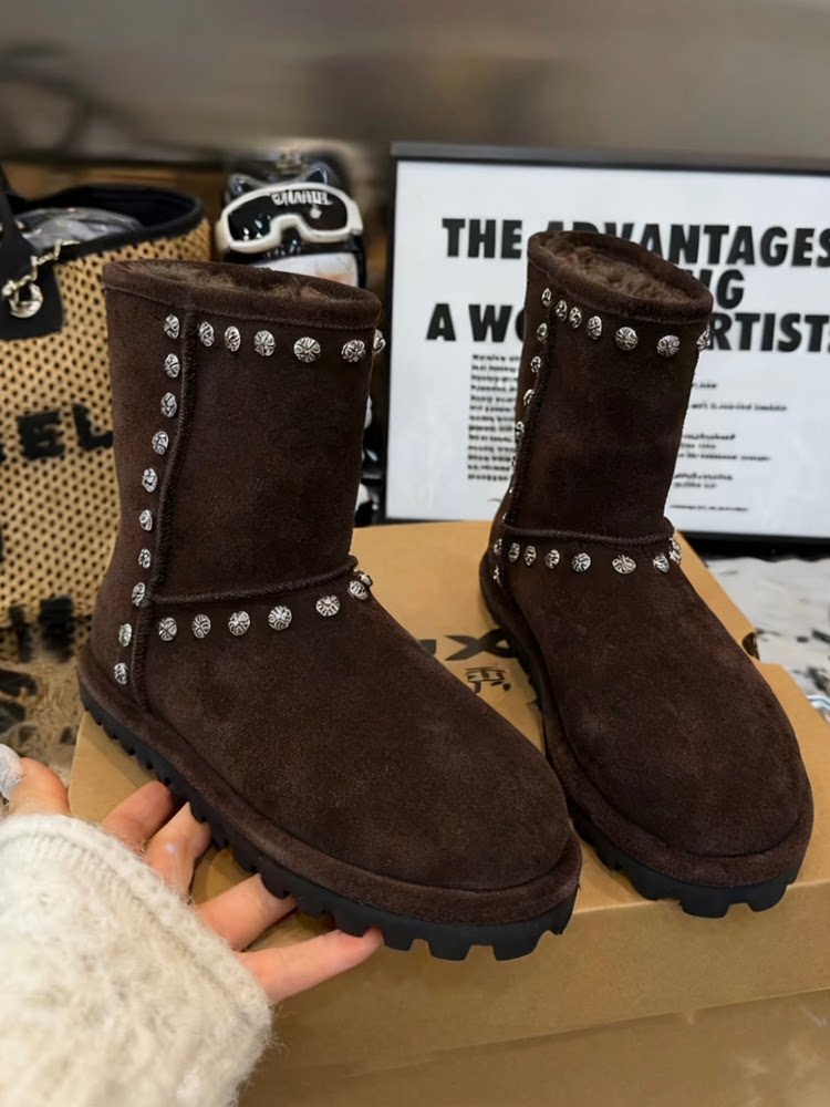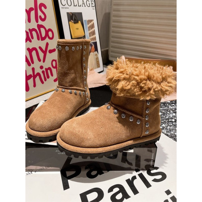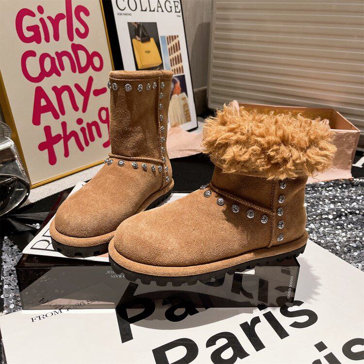 雪地靴女2025冬季新款復古時尚平底加絨防滑保暖中筒機車麵包棉靴