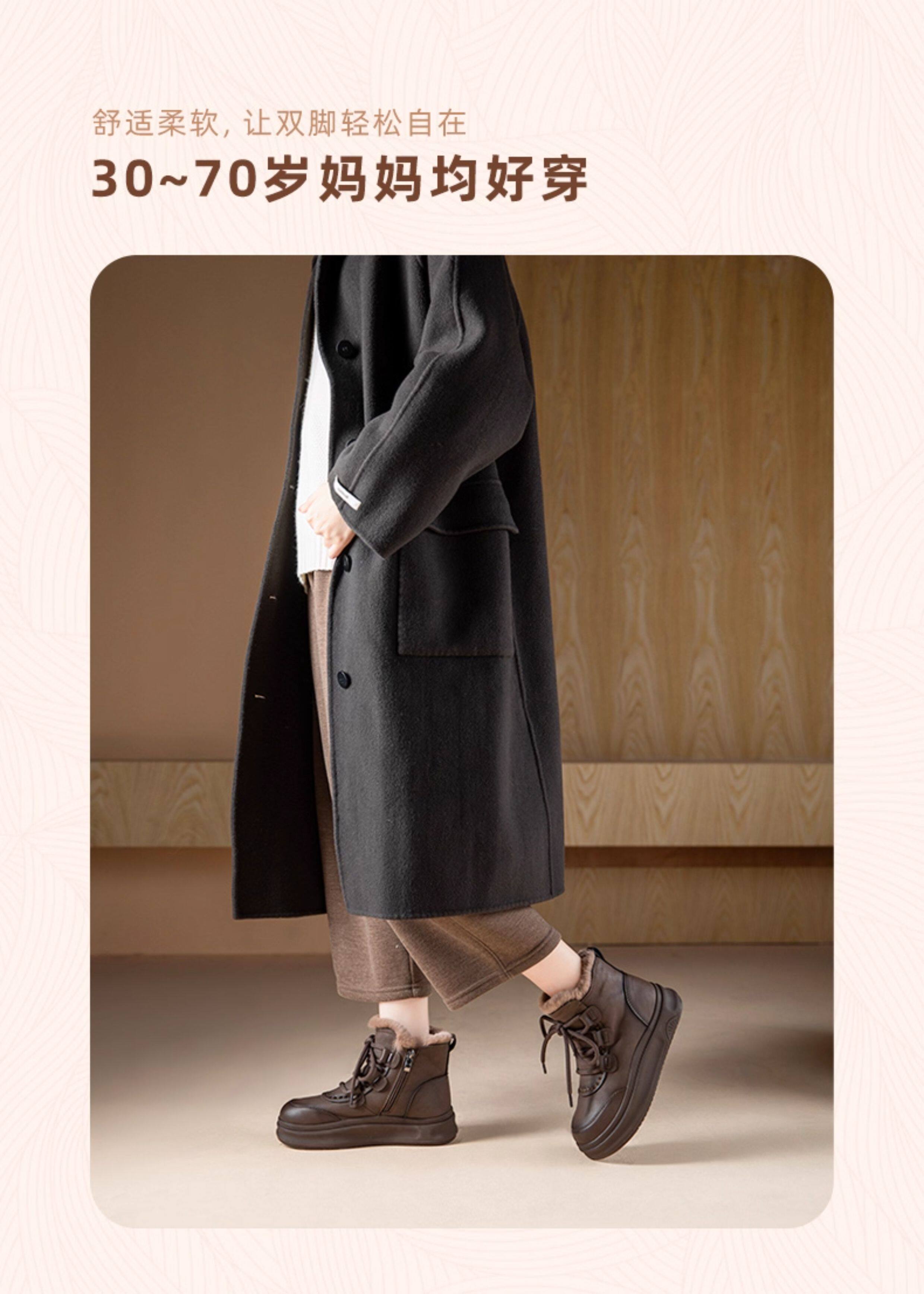 真皮媽媽鞋子棉鞋短靴加厚加絨保暖防水防滑雪地靴中老年女鞋冬季
