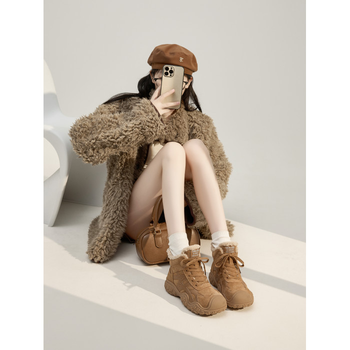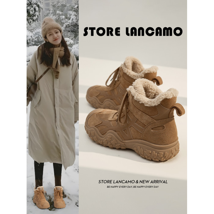 厚底雪地靴女2025冬季新款加絨加厚保暖時尚棉鞋戶外登山馬丁短靴