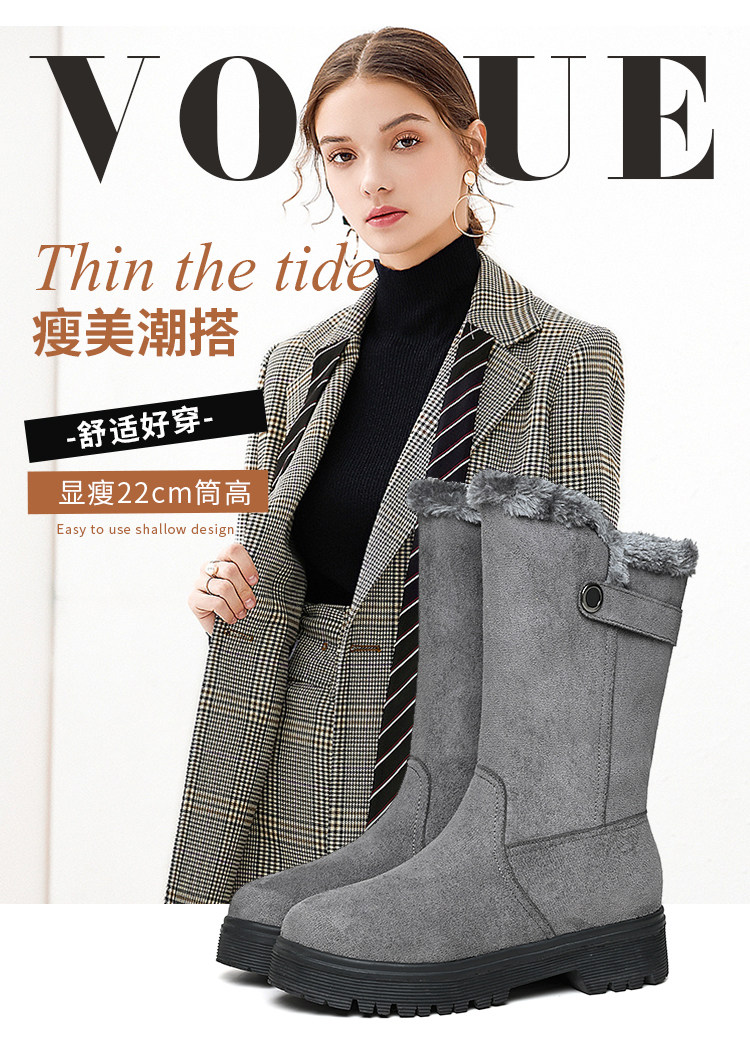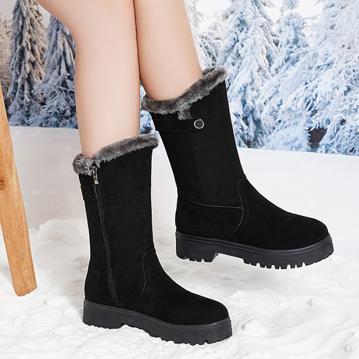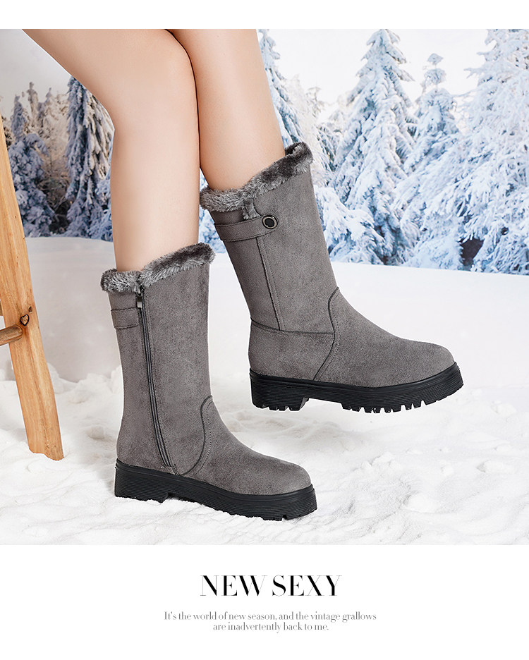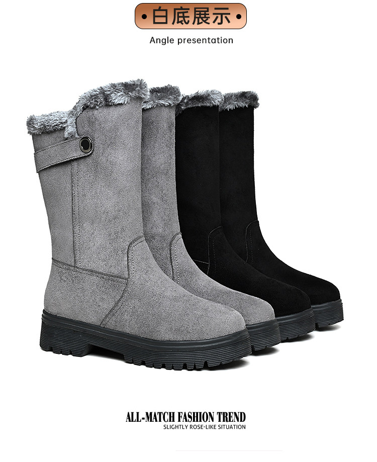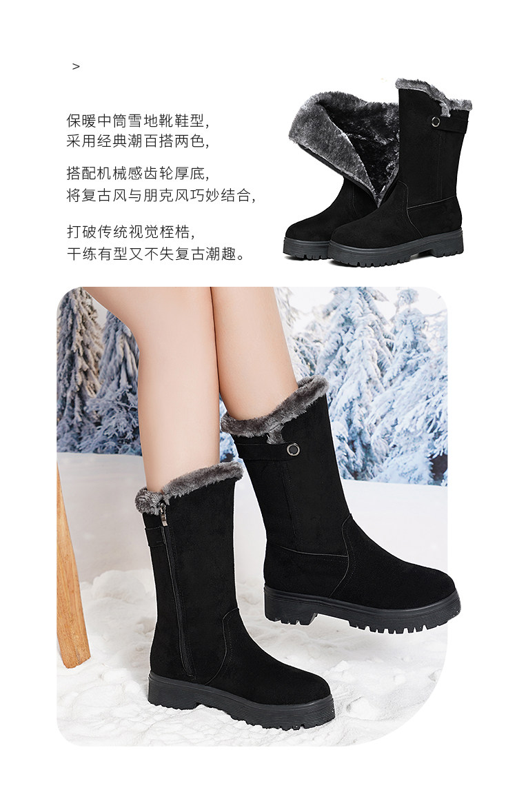 2022冬季新款圓頭保暖中筒棉鞋女冬加絨加厚時尚百搭短靴雪地靴女