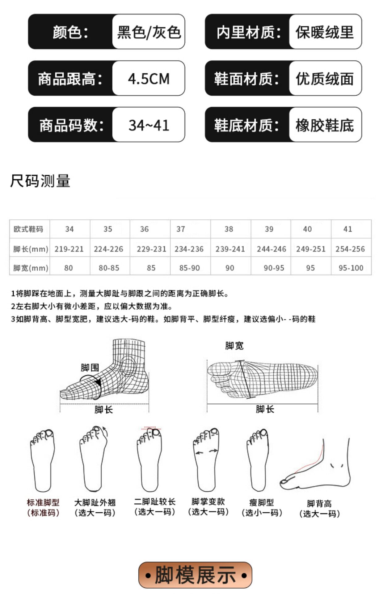 | 後跟高 | 中跟(3-5cm) |