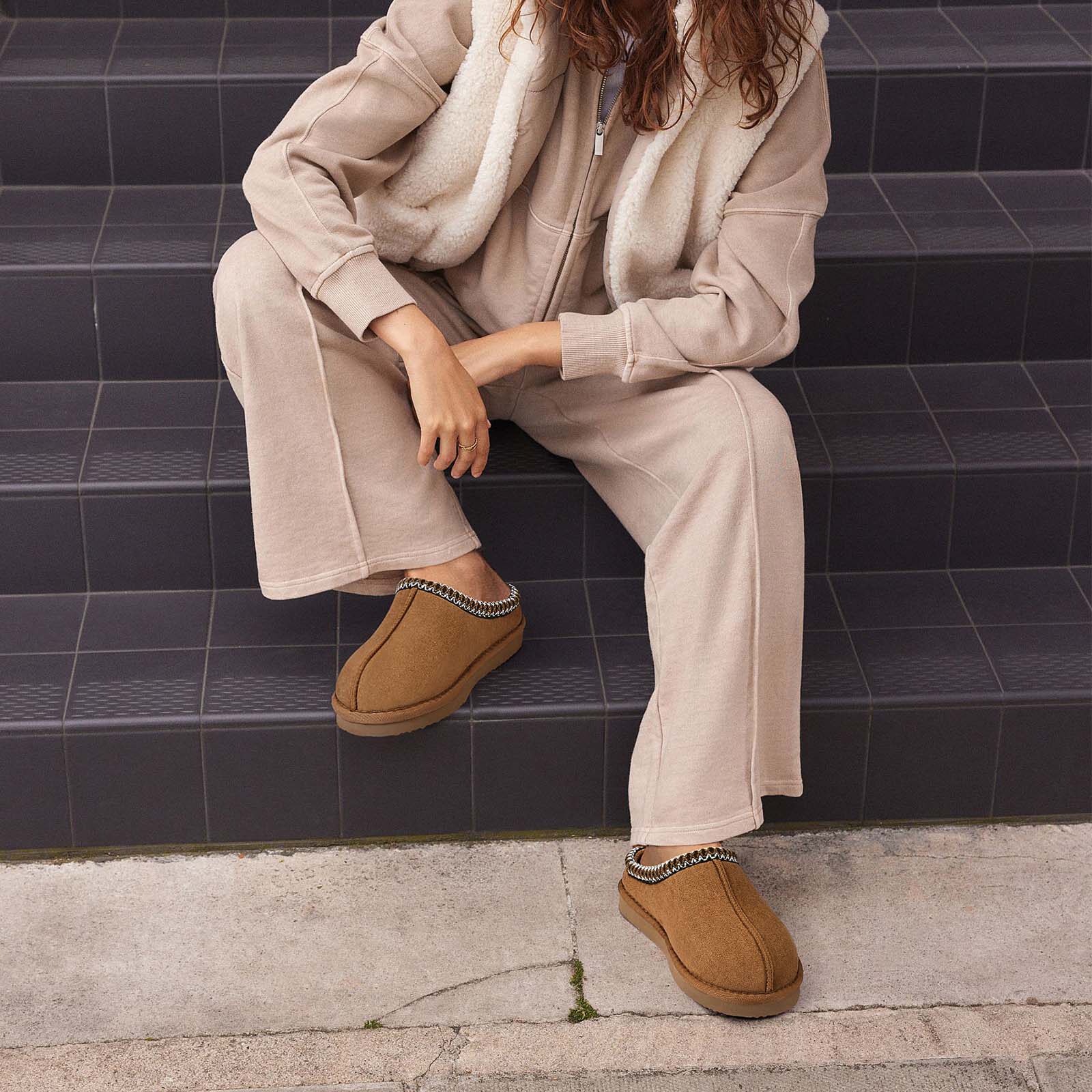 UG款包頭一腳蹬棉鞋男女舒適休閒雪地靴半拖繙毛皮潮流保暖樂福鞋