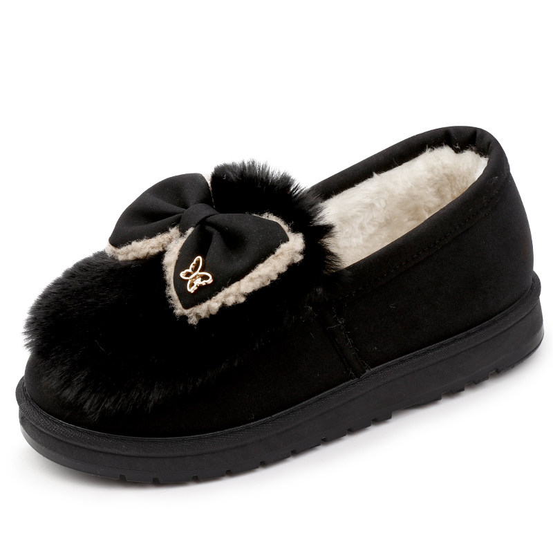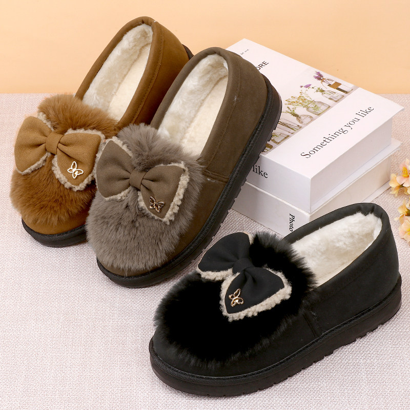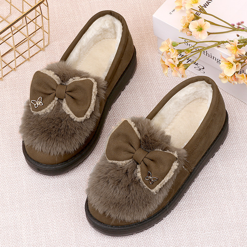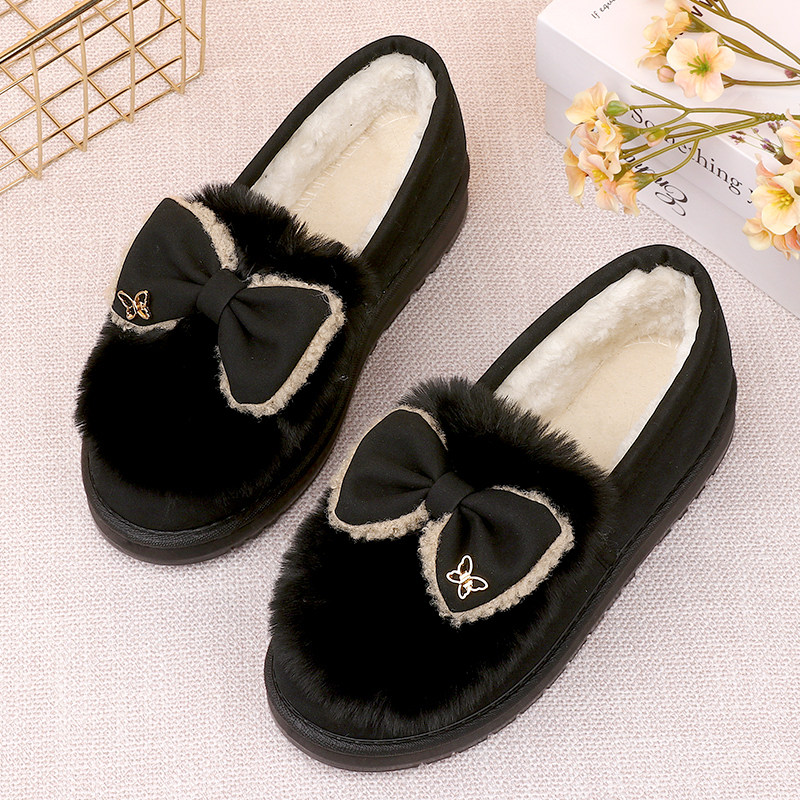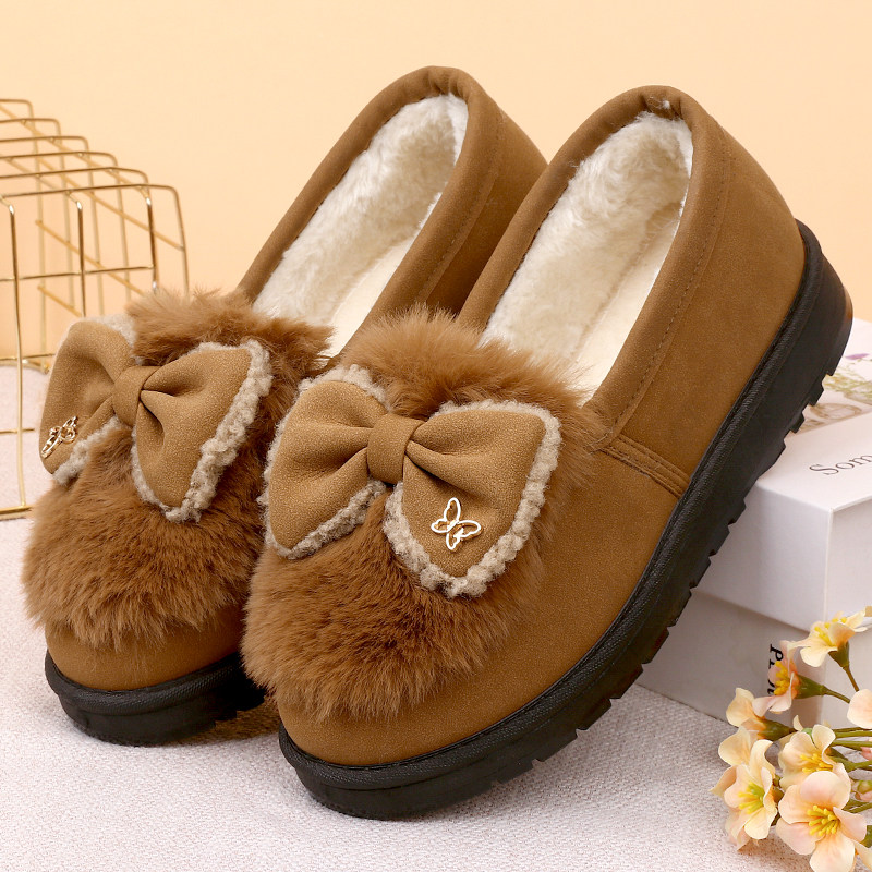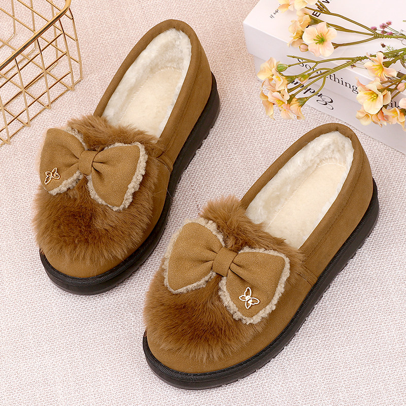 毛毛鞋冬天外穿老北京布鞋女棉鞋蝴蝶結防寒保暖豆豆家居媽媽棉靴