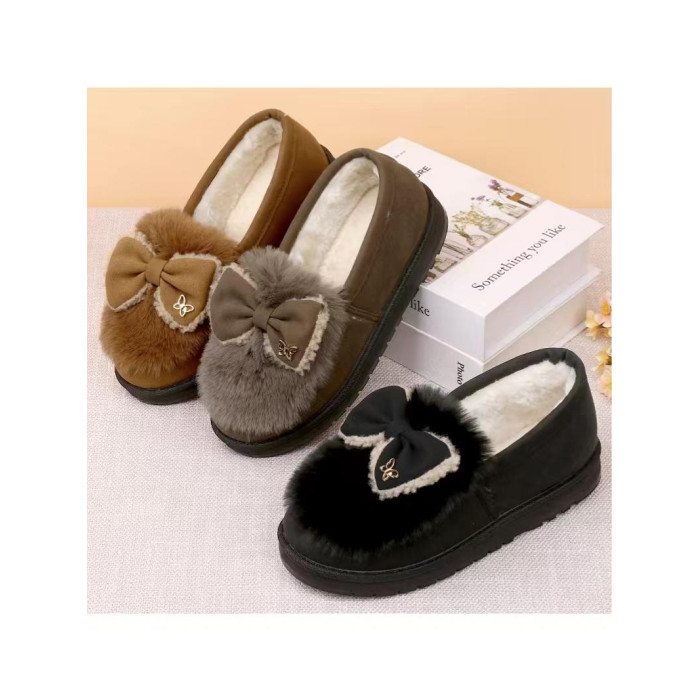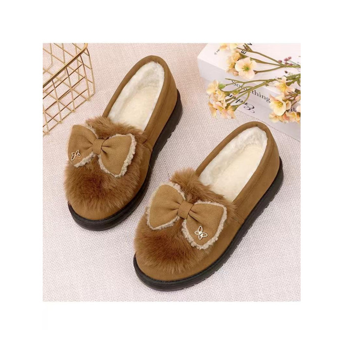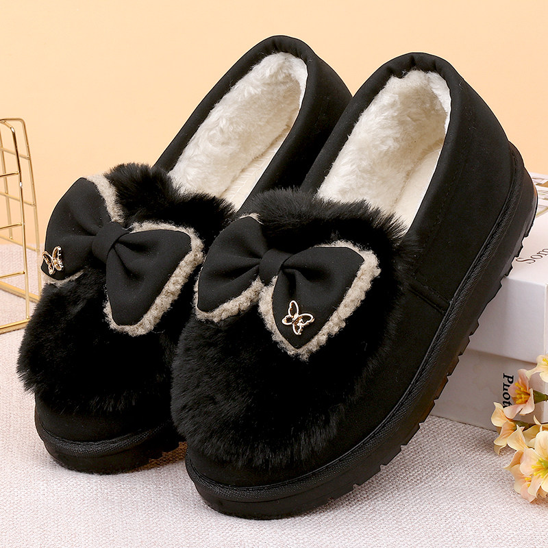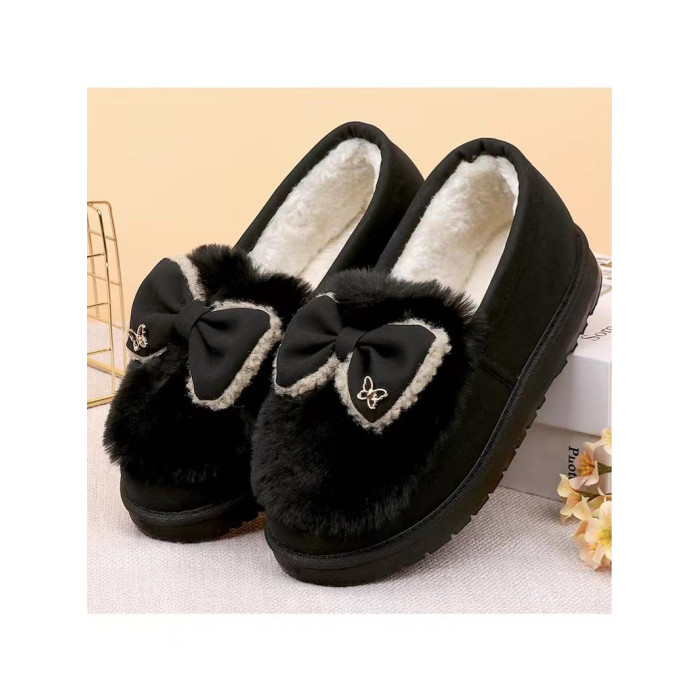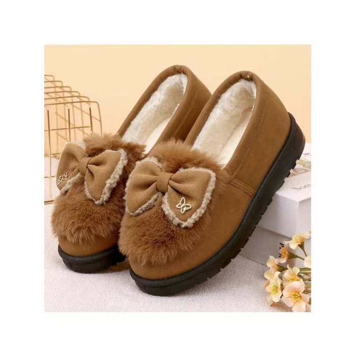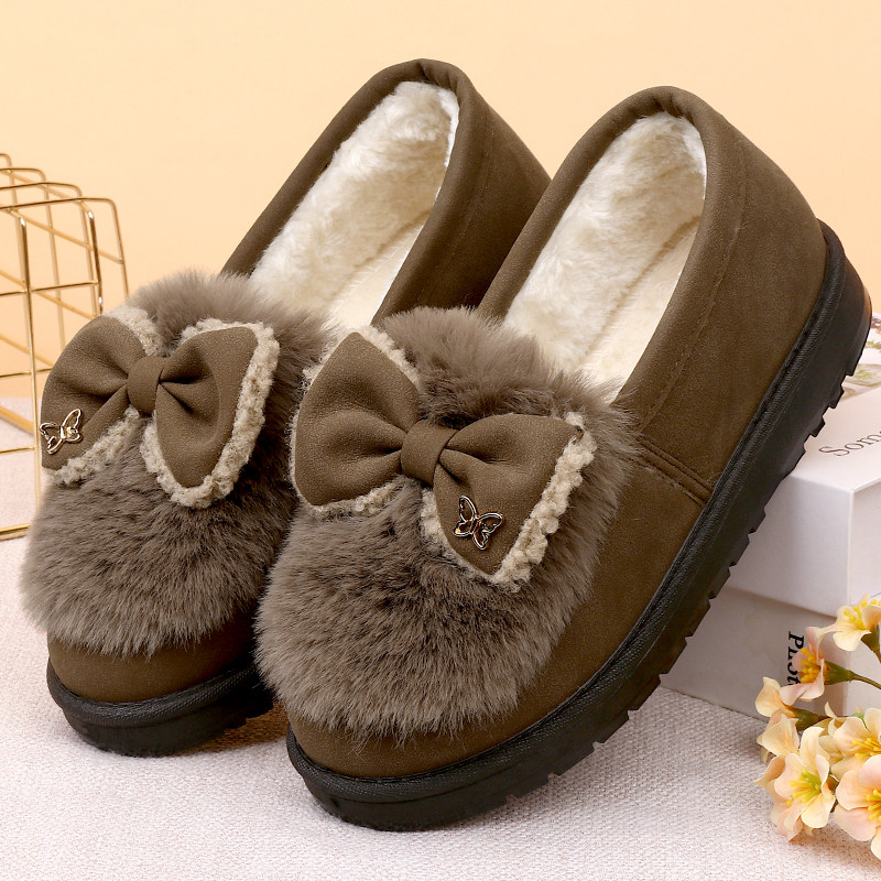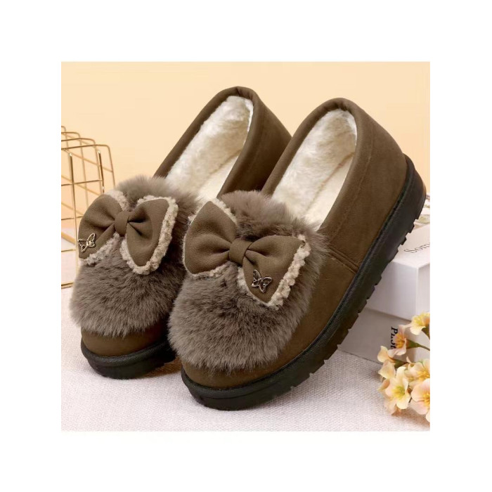 毛毛鞋冬天外穿老北京布鞋女棉鞋蝴蝶結防寒保暖豆豆家居媽媽棉靴