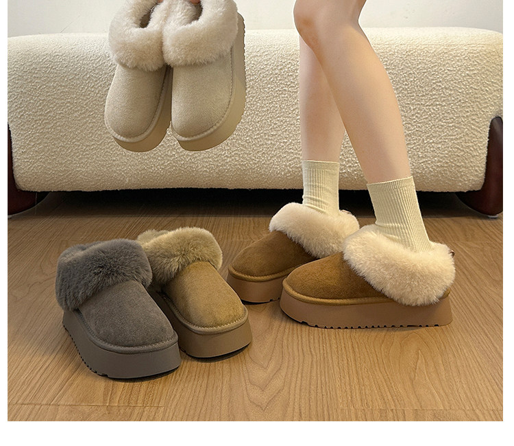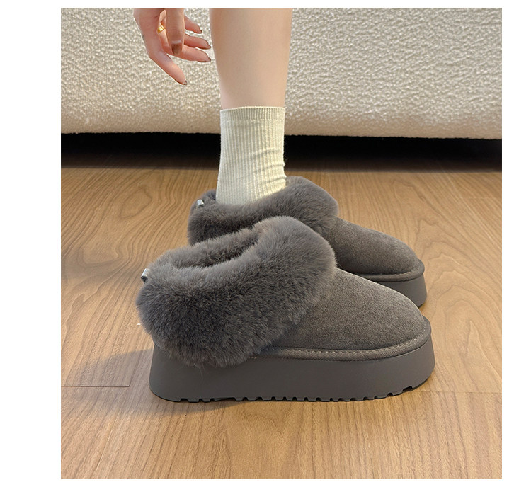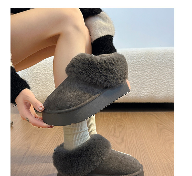 厚底雪地靴女2026新款冬季灰色東北半拖一腳蹬毛毛加絨保暖大棉鞋
