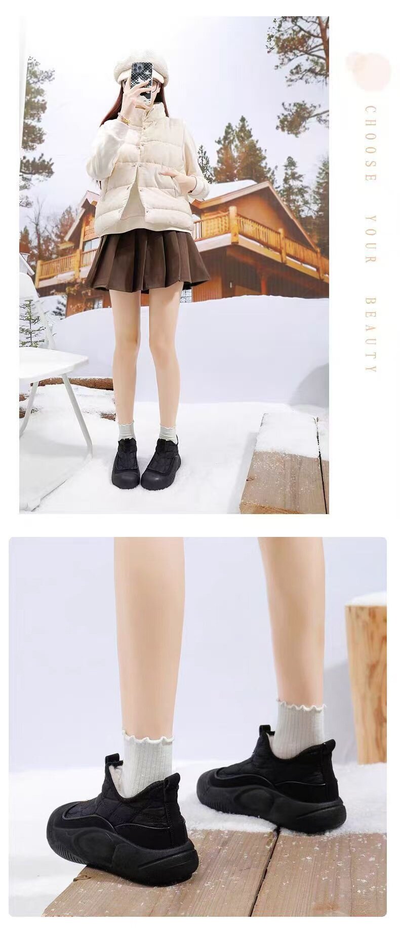 卡帝臣女鞋冬季新款高幫棉鞋軟底防滑媽媽鞋加絨加厚輕便休閒時尚