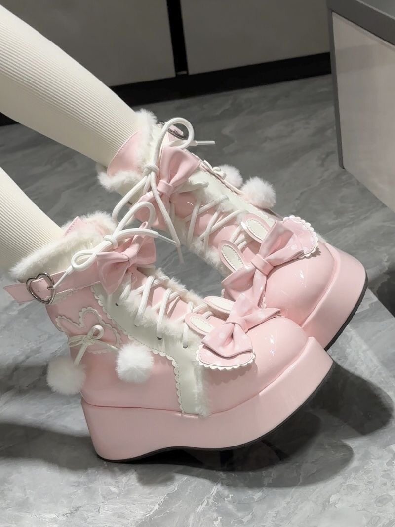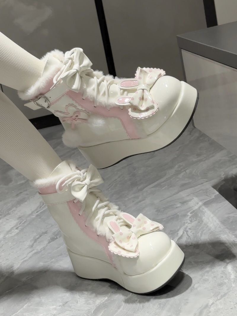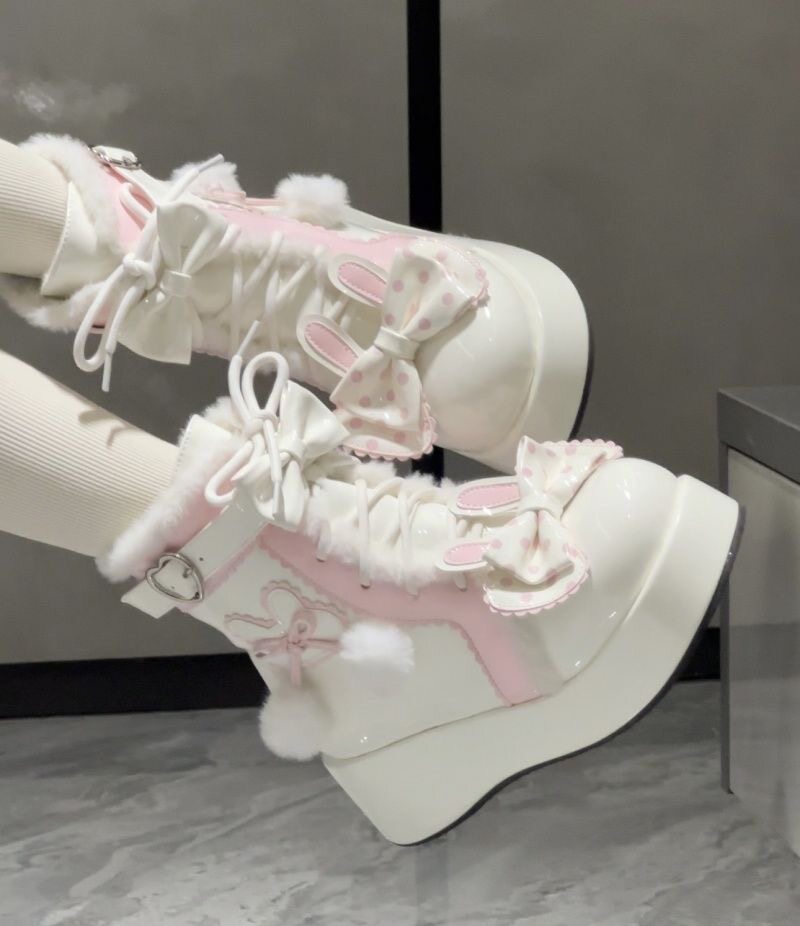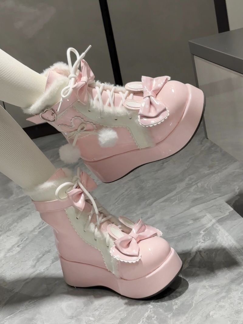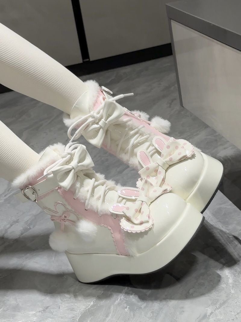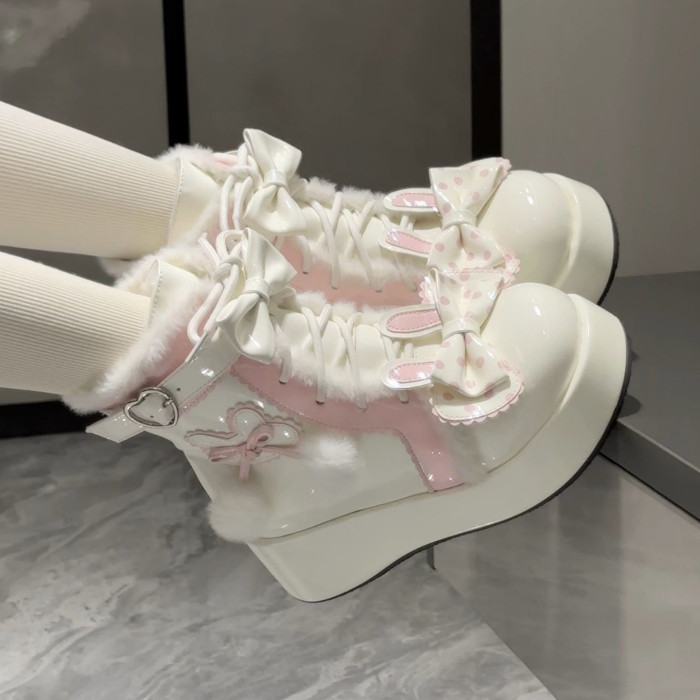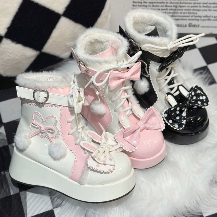 Lolita鞋子洛麗塔冬季雪地靴厚底增高松糕毛球兔子可愛甜美棉鞋