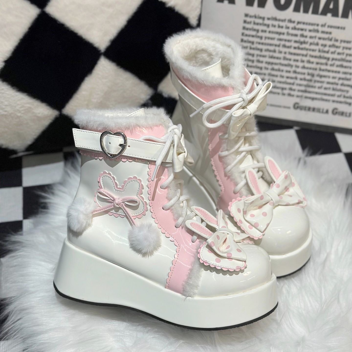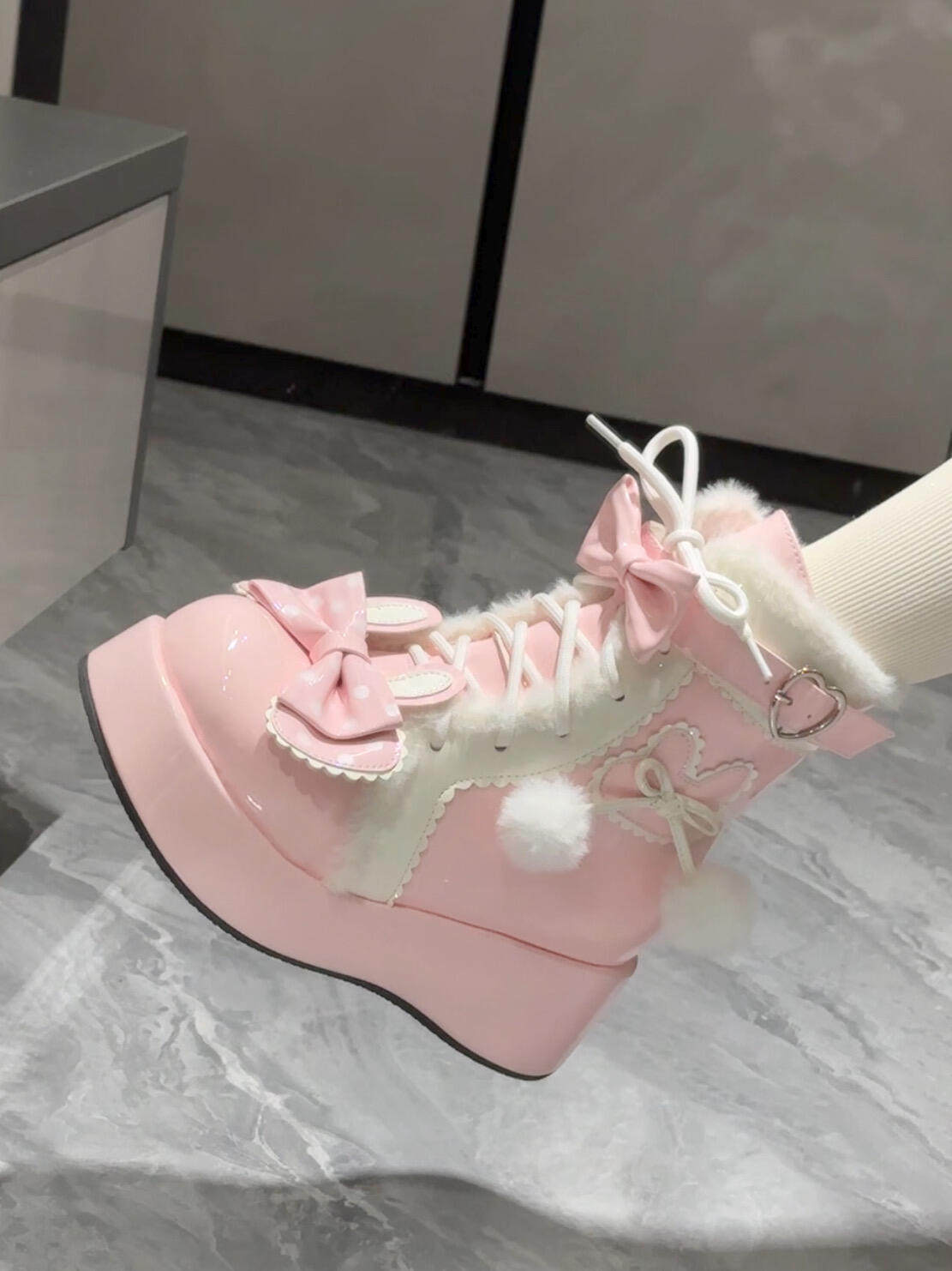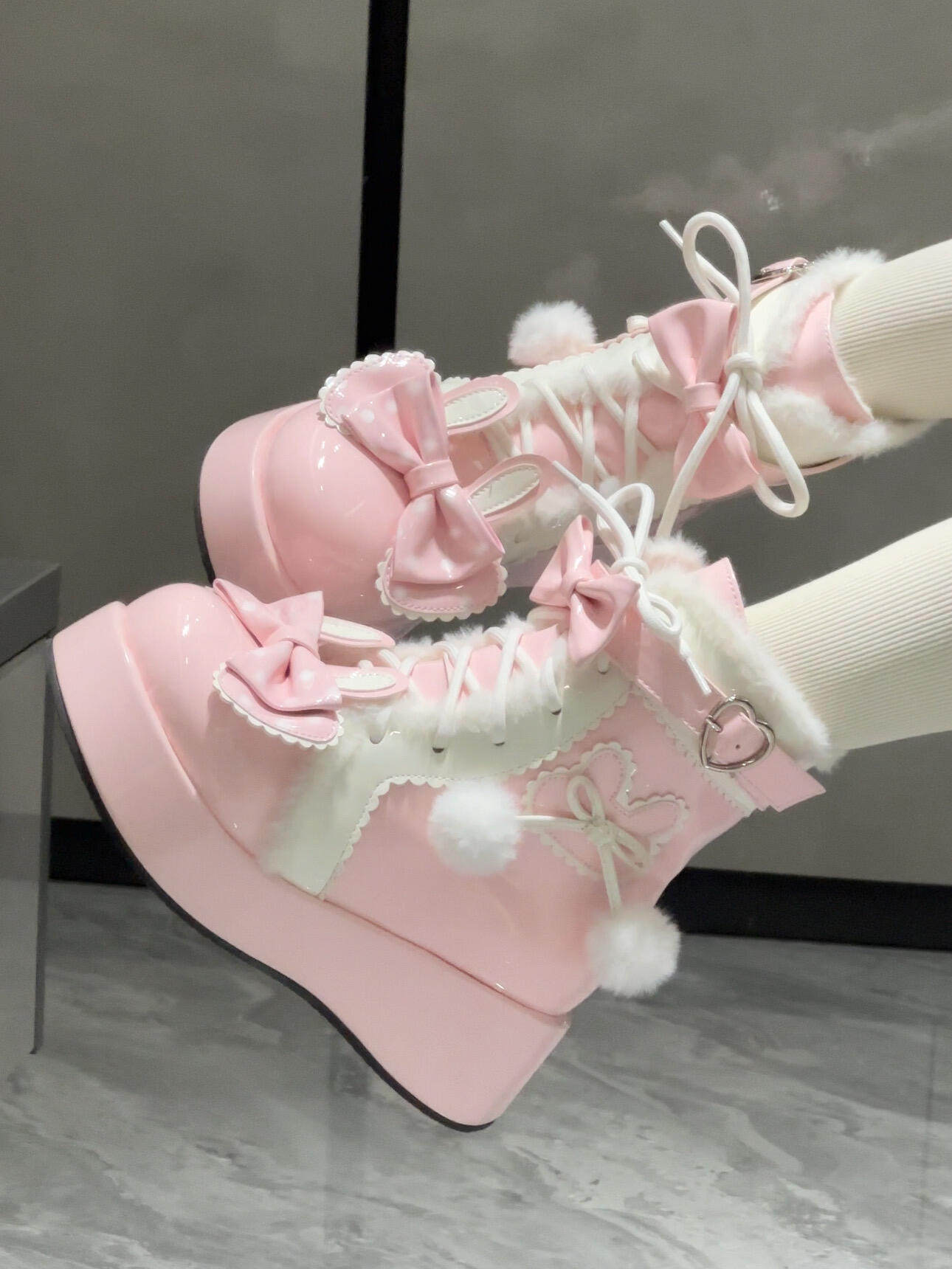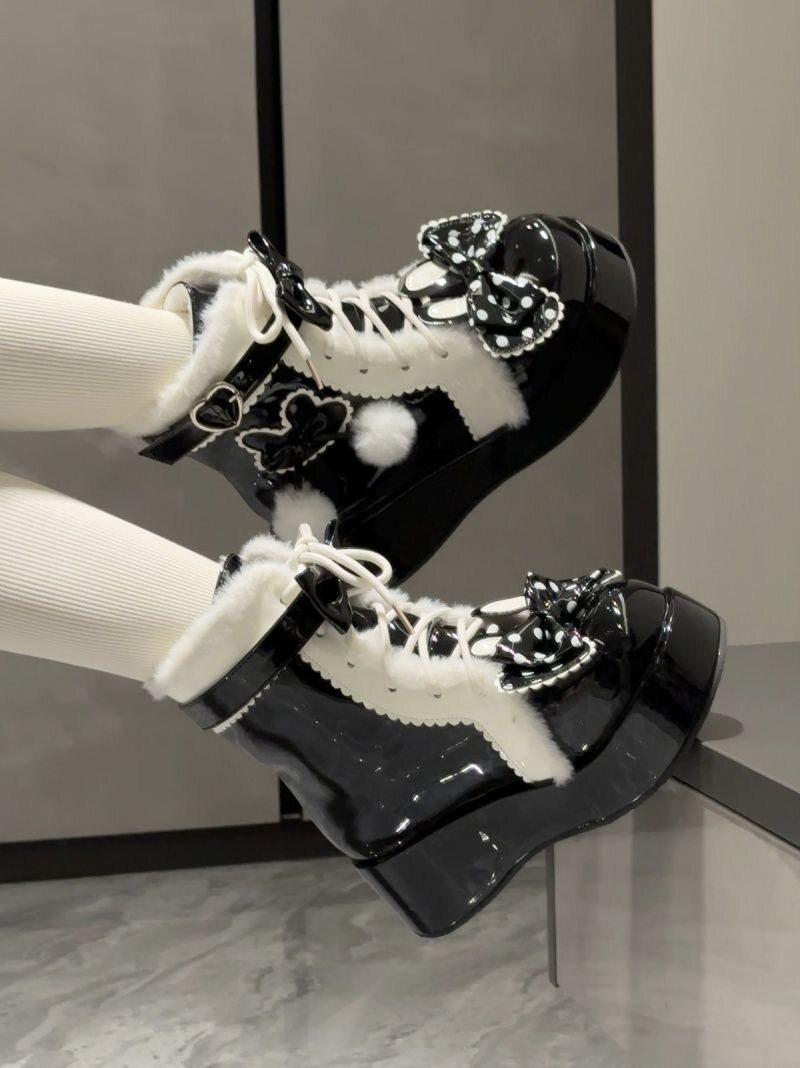 Lolita鞋子洛麗塔冬季雪地靴厚底增高松糕毛球兔子可愛甜美棉鞋