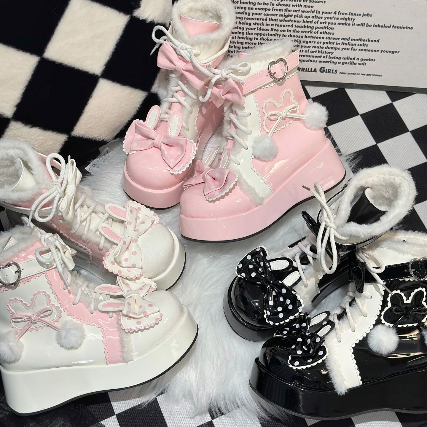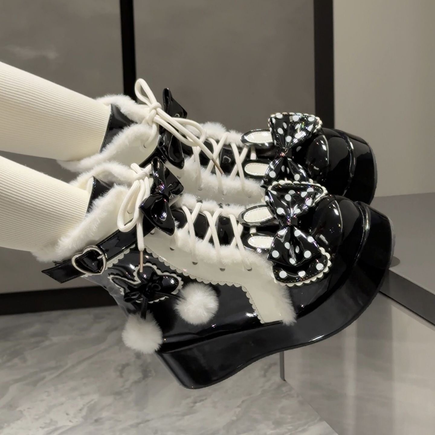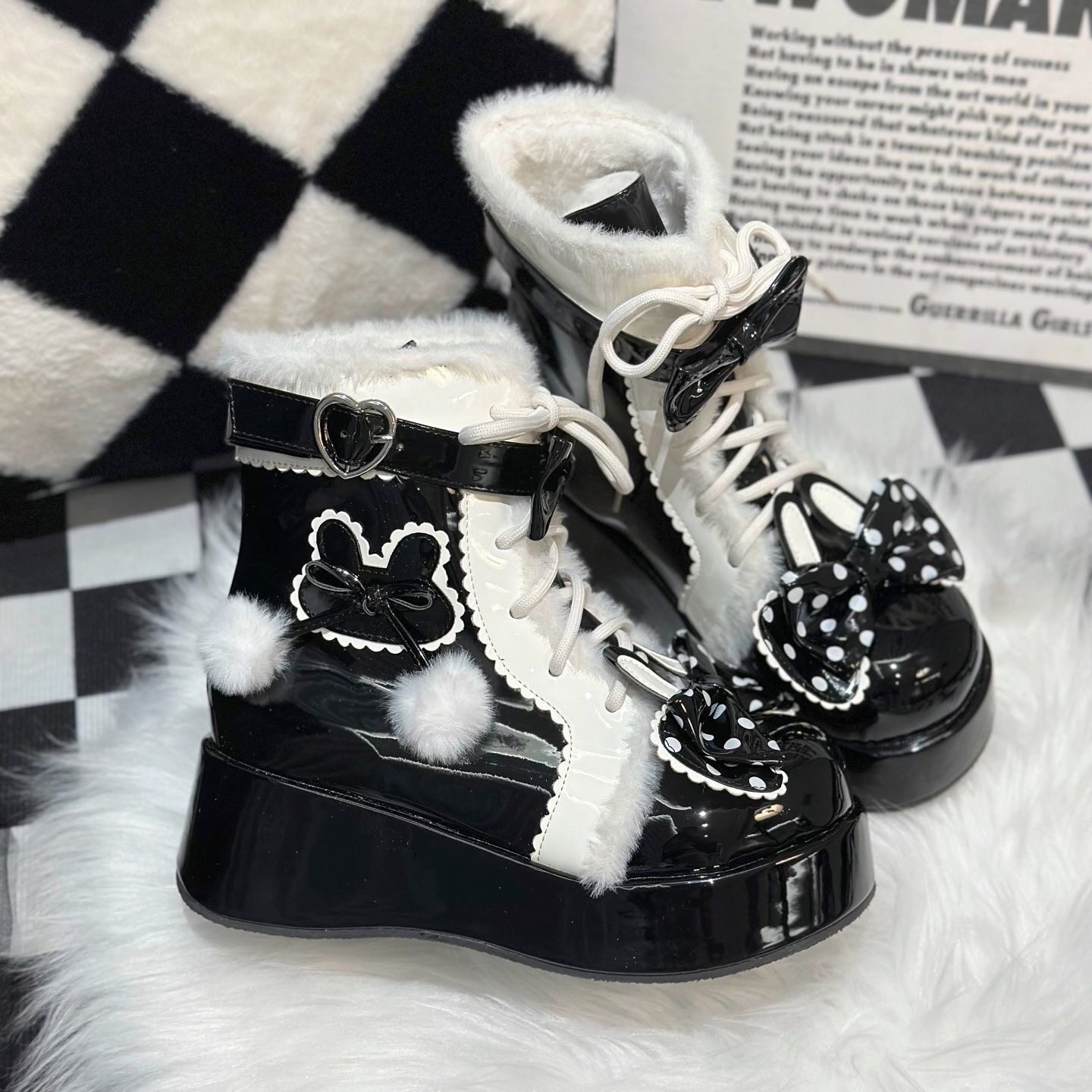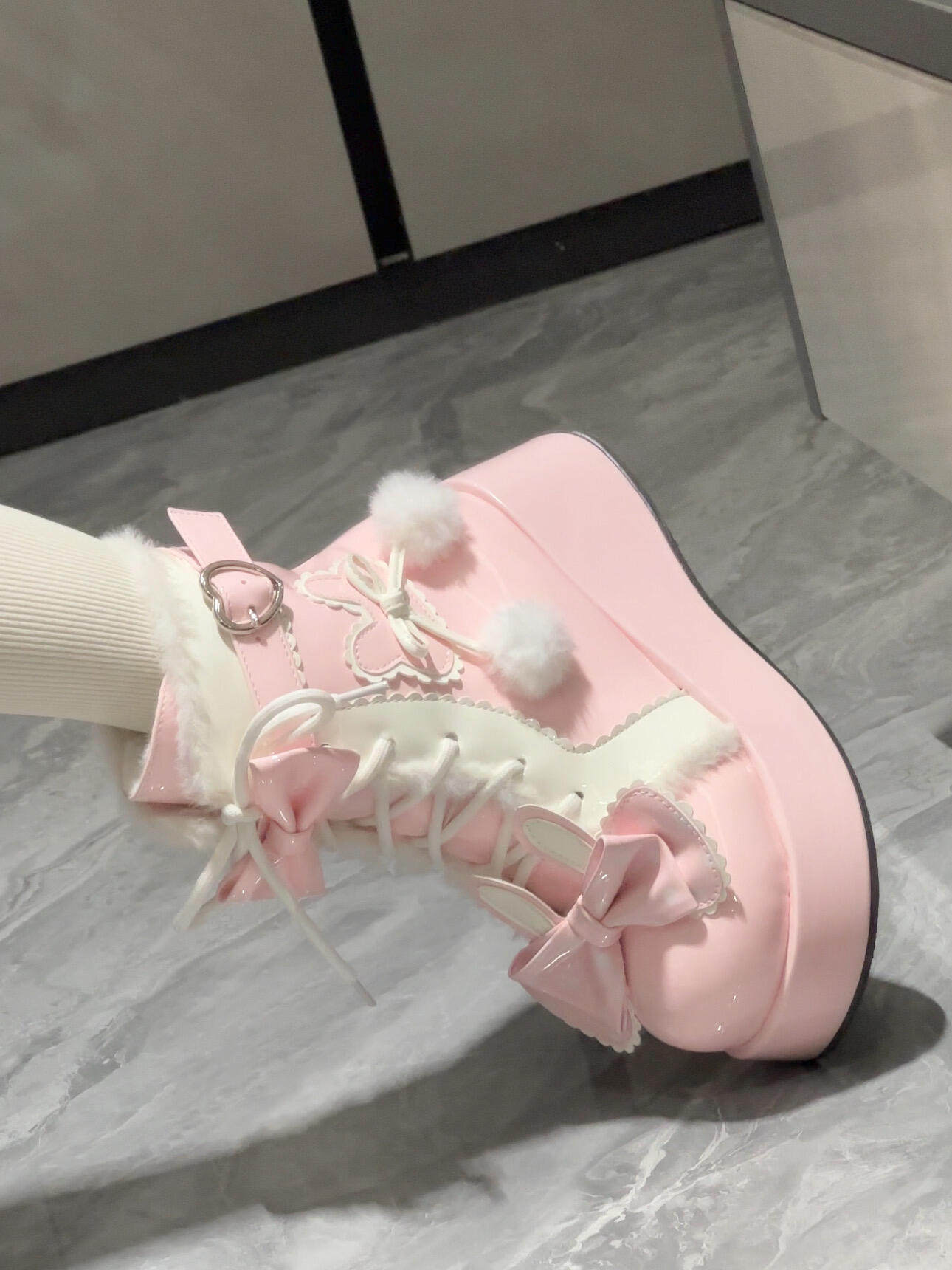 Lolita鞋子洛麗塔冬季雪地靴厚底增高松糕毛球兔子可愛甜美棉鞋