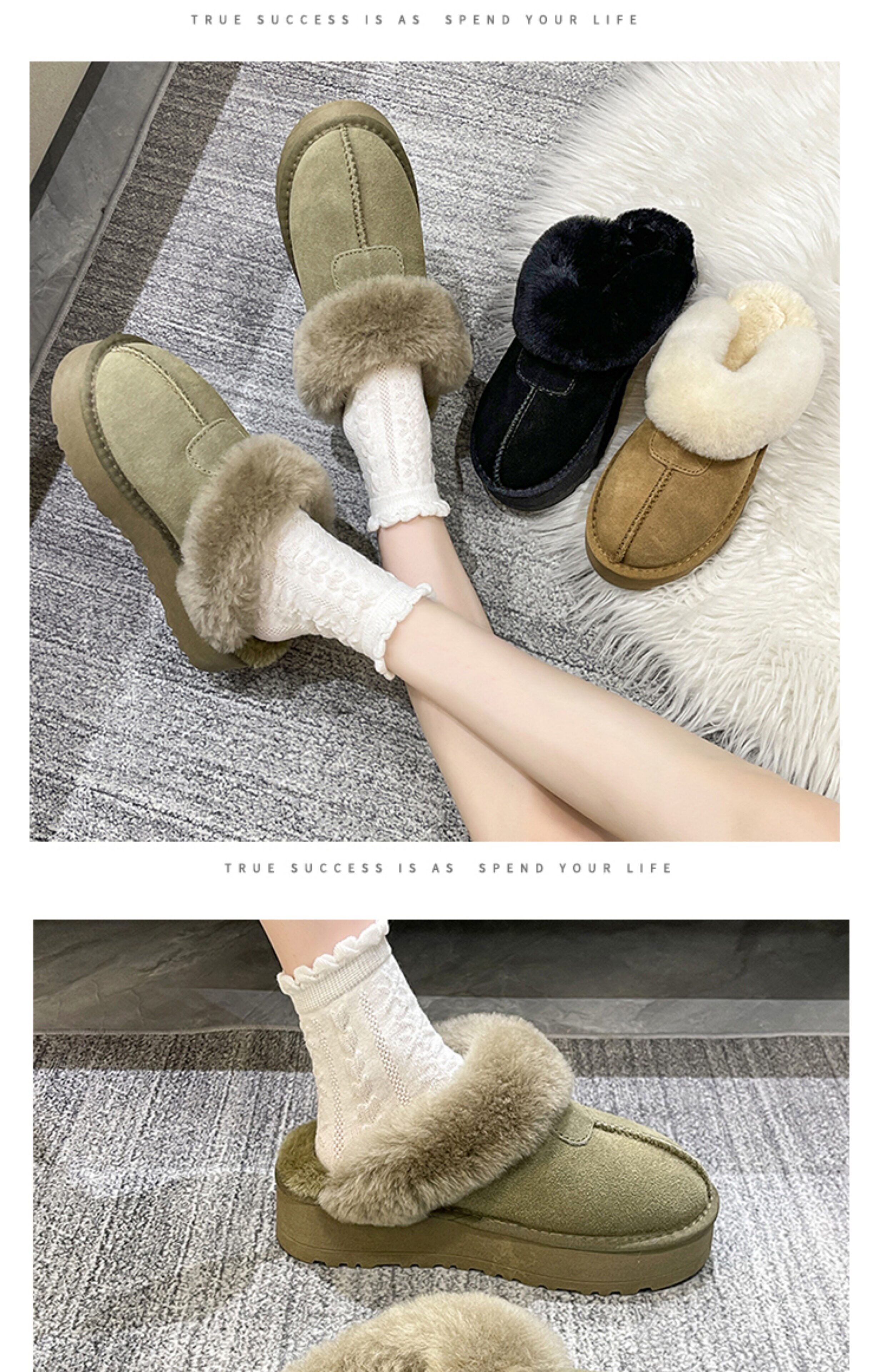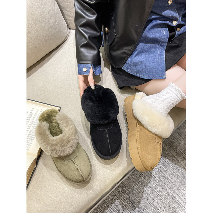 2025新款雪地靴女冬季皮毛一體外穿加絨厚底羊毛口保暖包頭半拖鞋