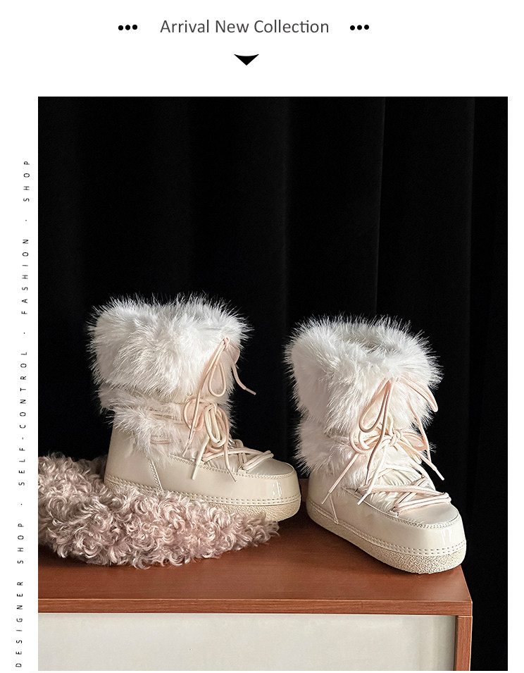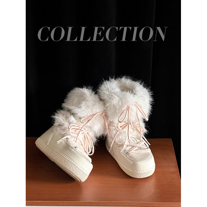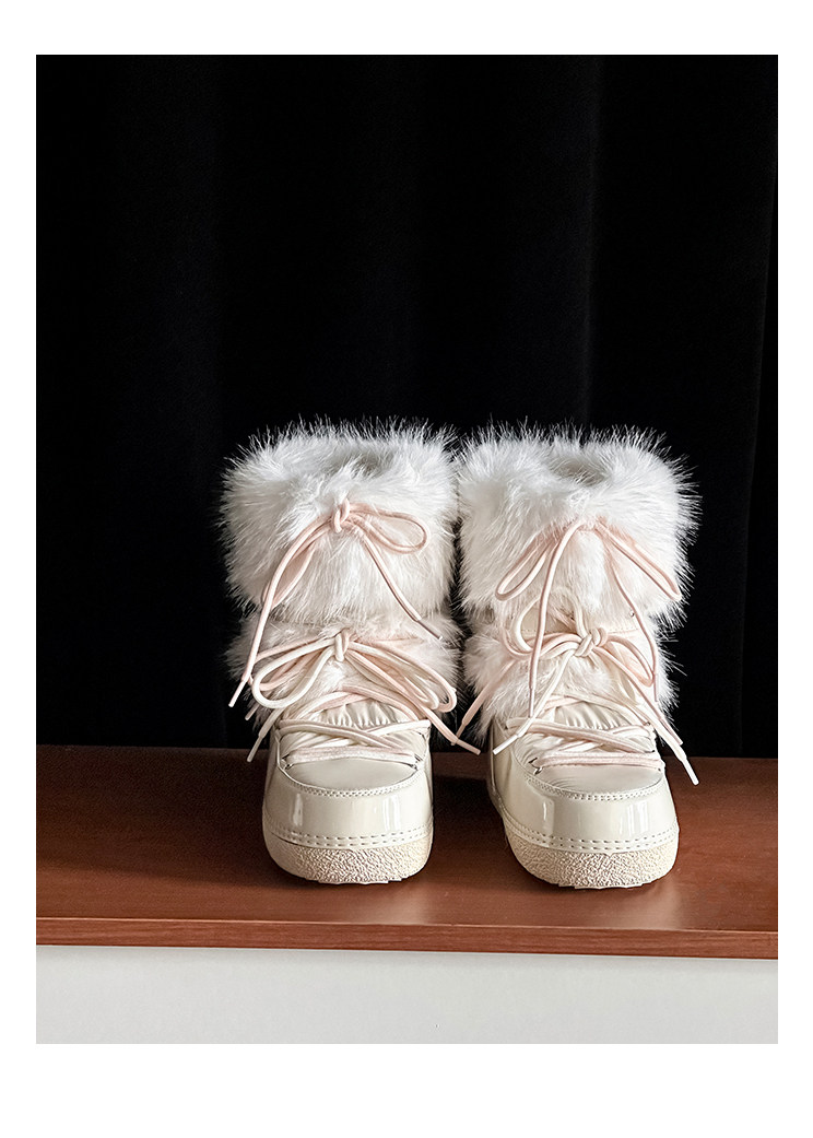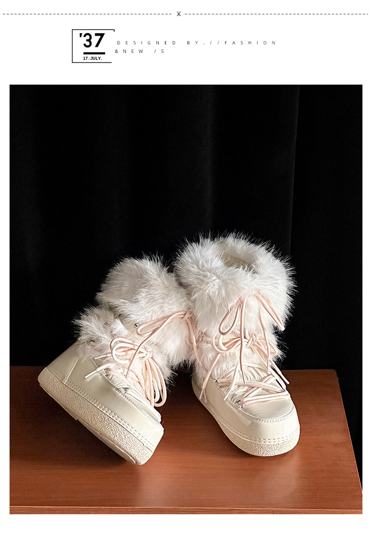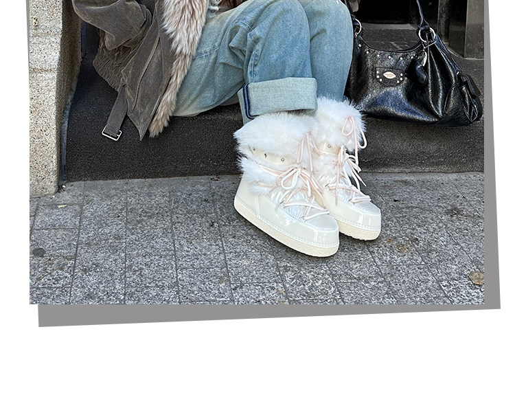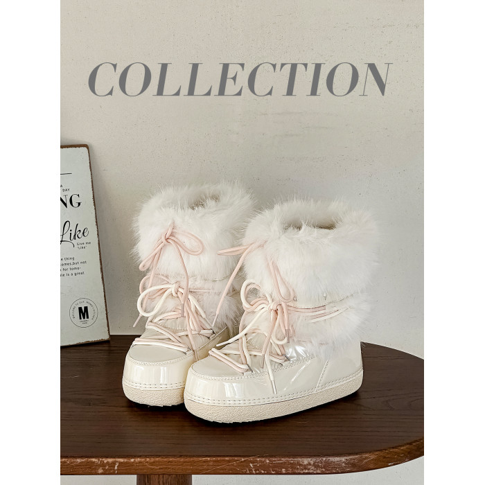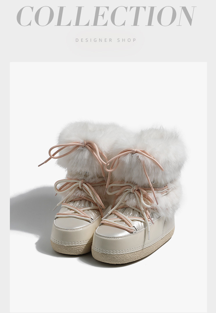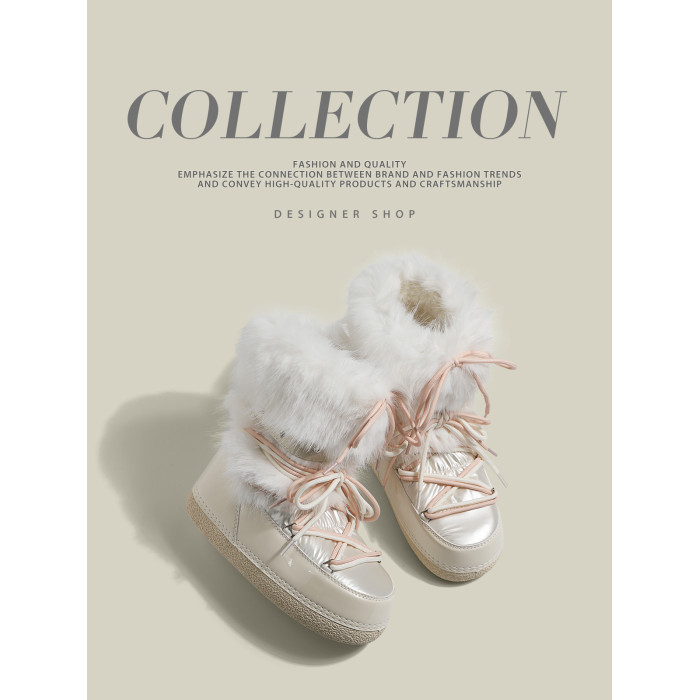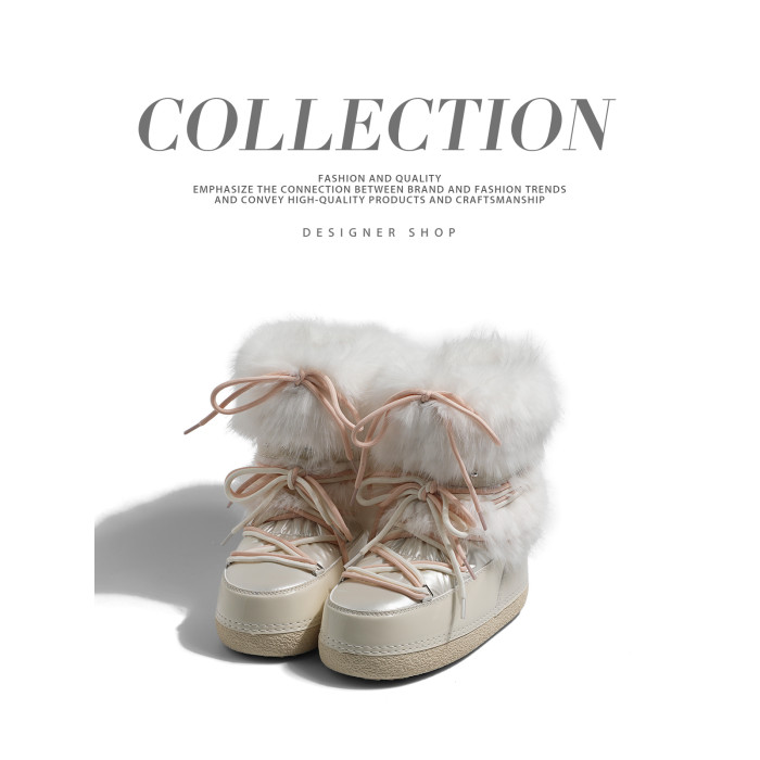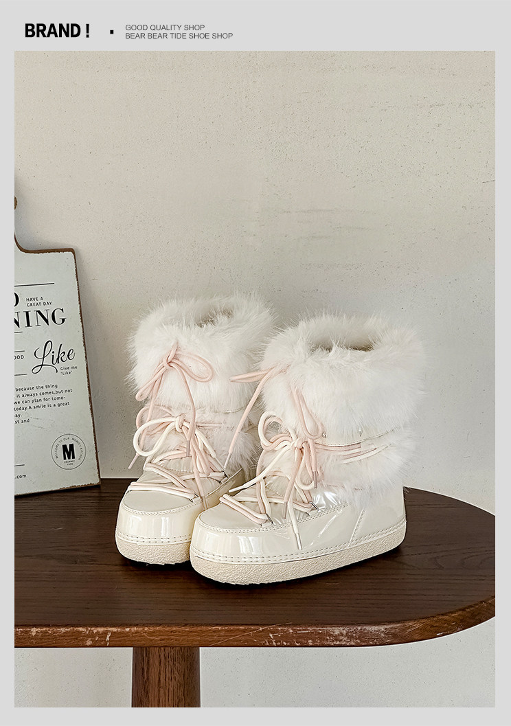 防滑保暖白色毛毛雪地靴女2025加絨月亮靴外穿麵包短靴加厚棉鞋冬