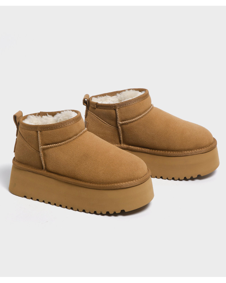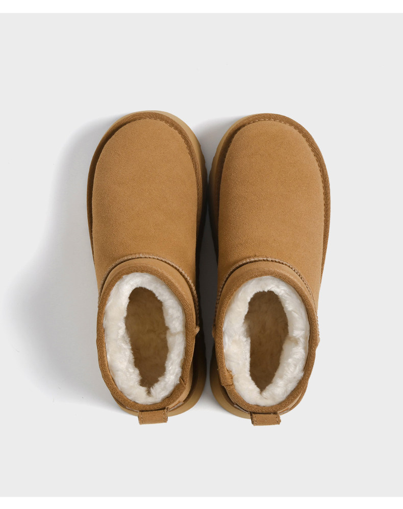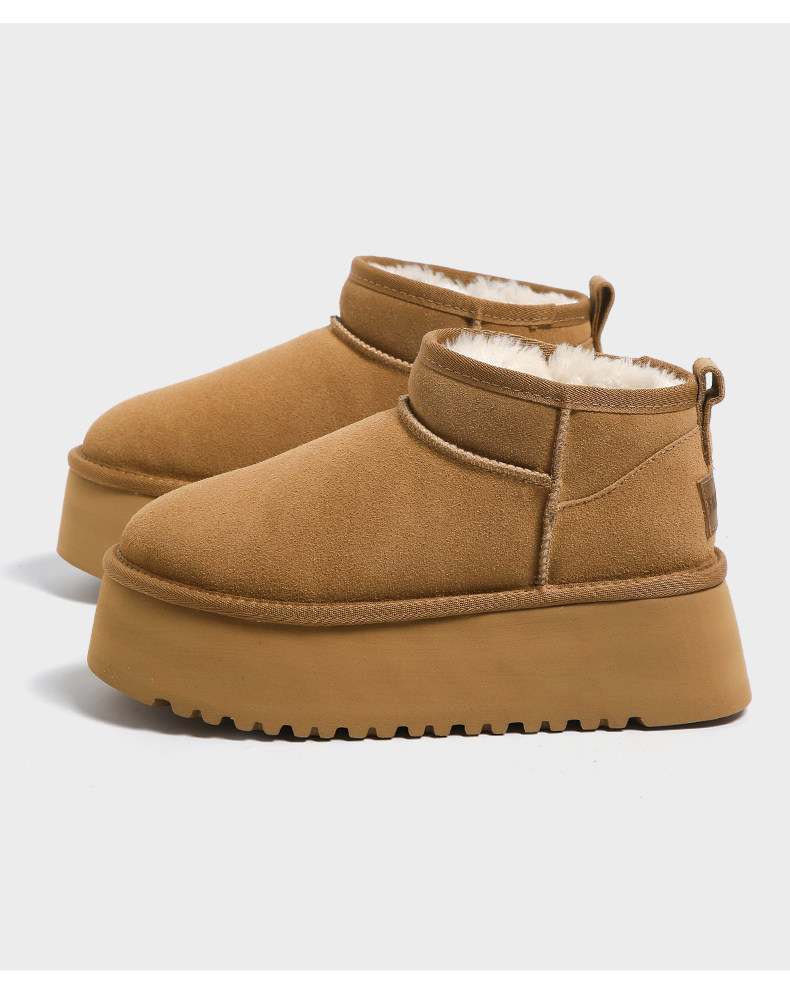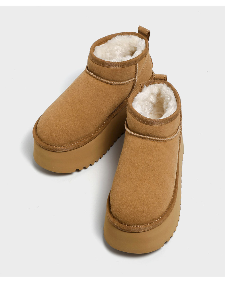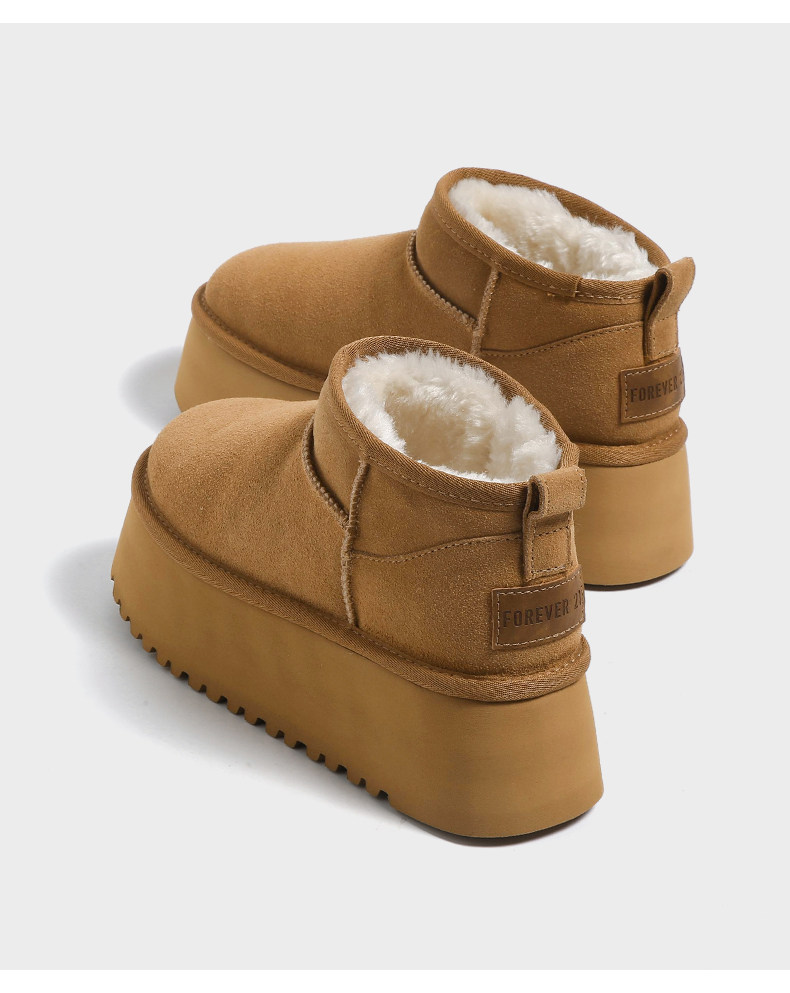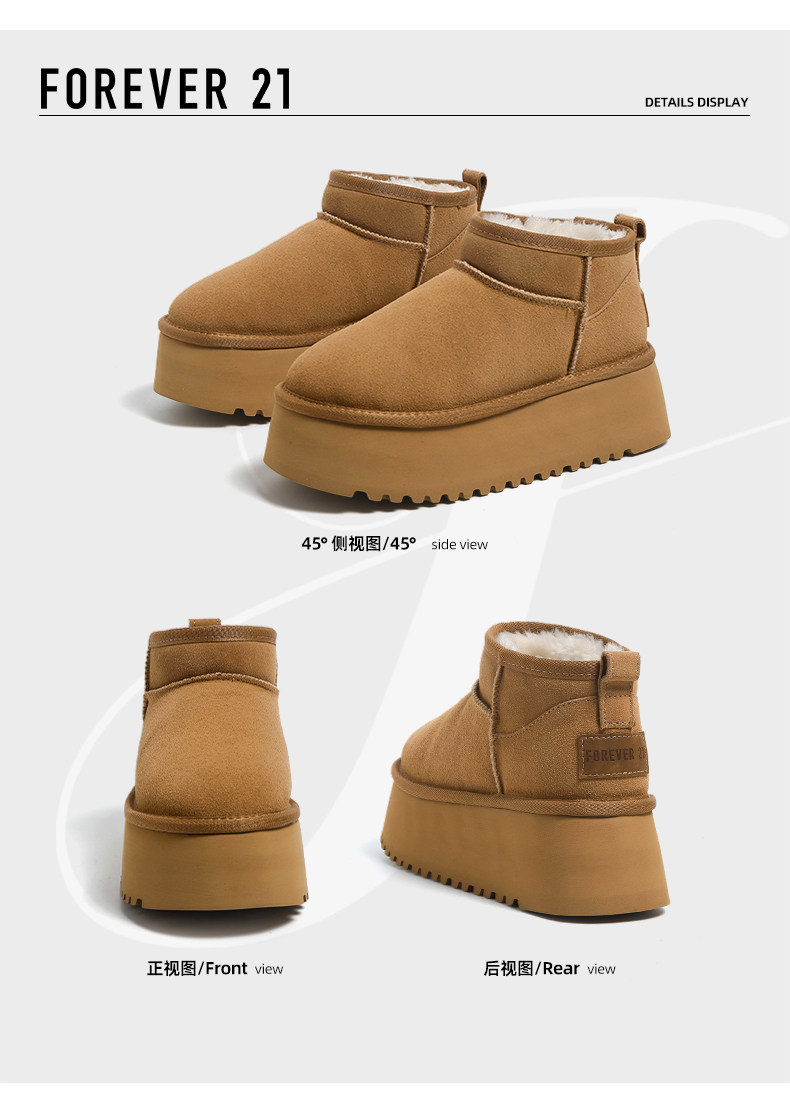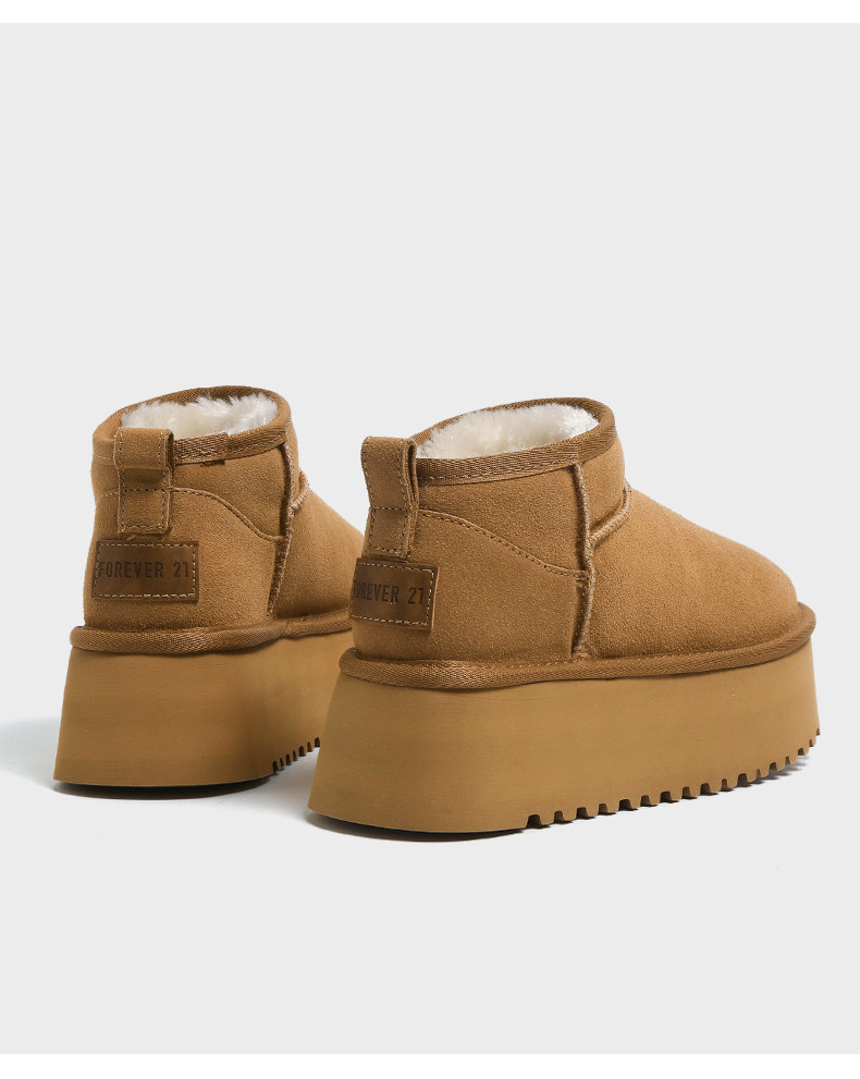 F21牛皮雪地靴女2026新款冬季超厚底加絨保暖真皮東北防水棉鞋子