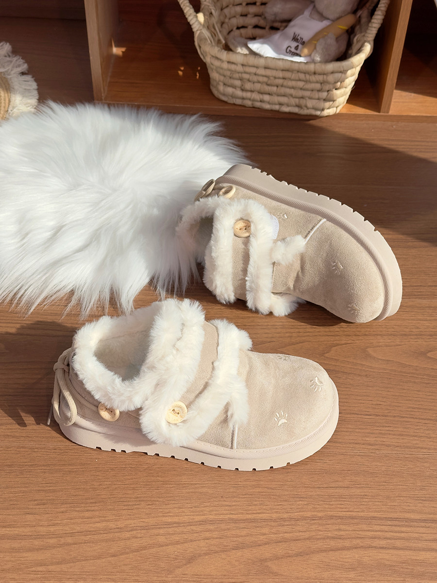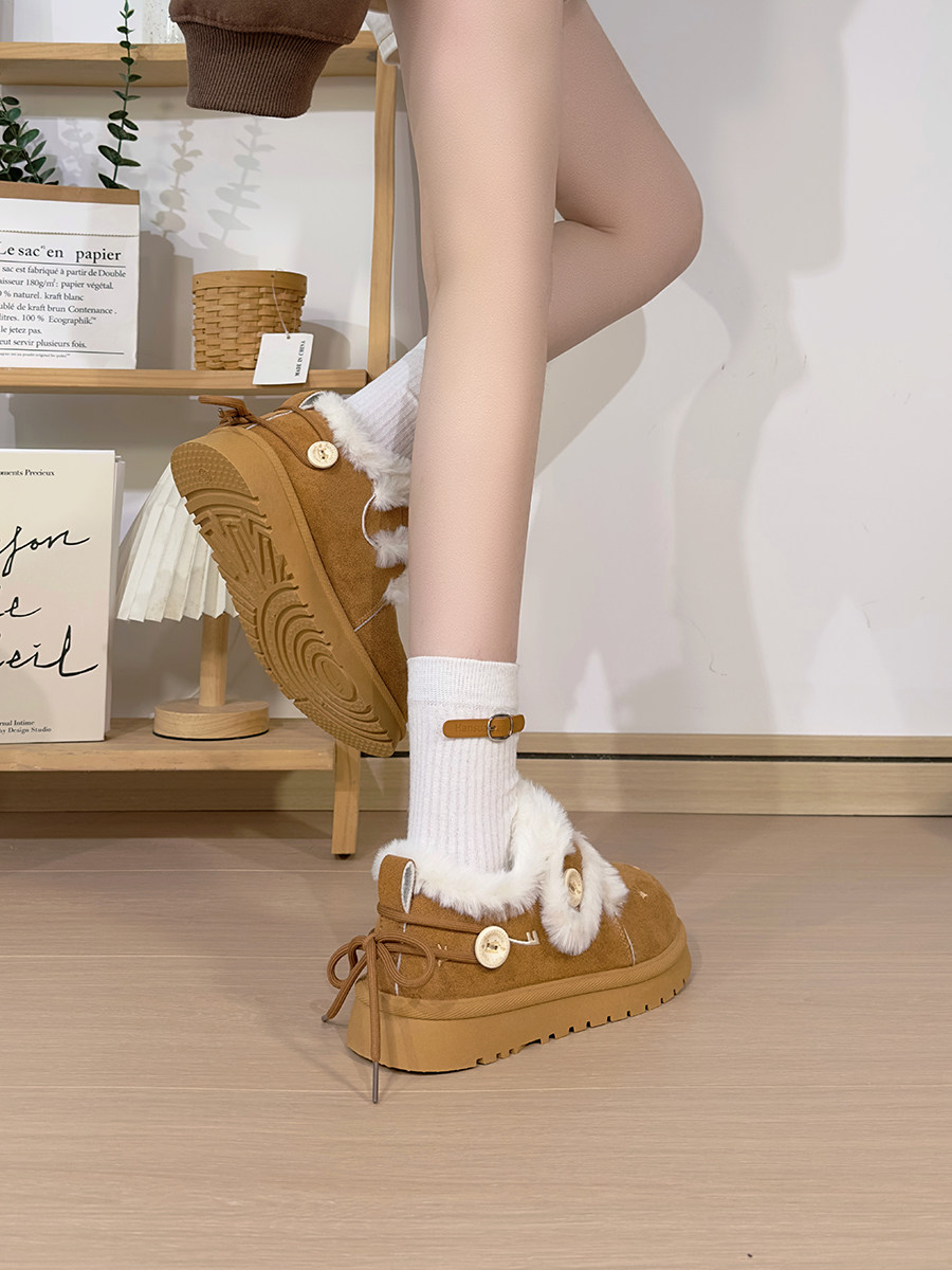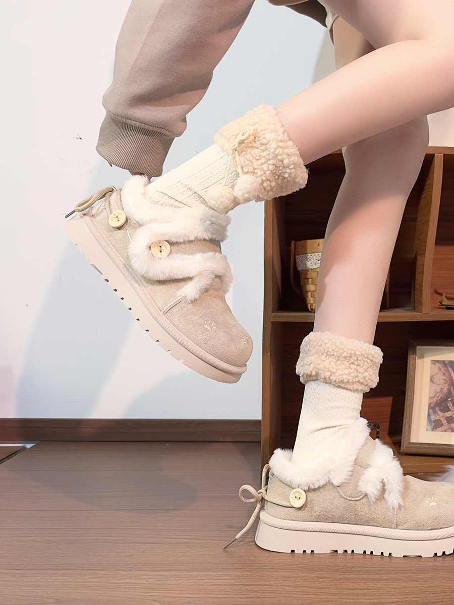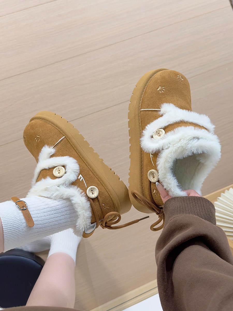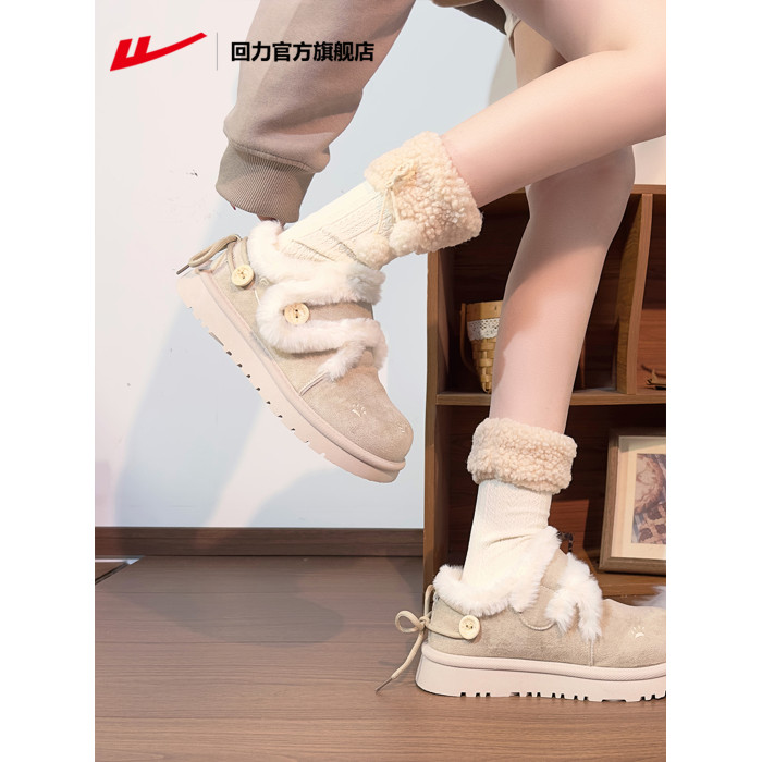 廻力毛絨雪地靴女款2026新款冬季加絨保暖厚底短靴加厚棉鞋休閒鞋