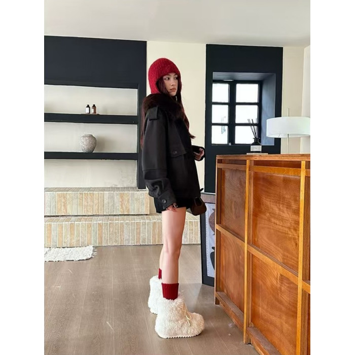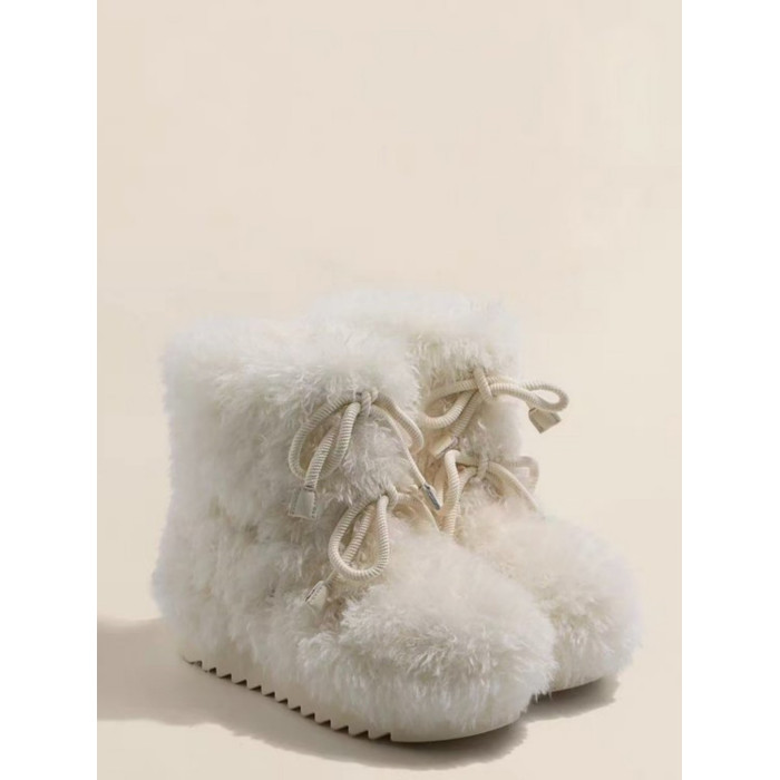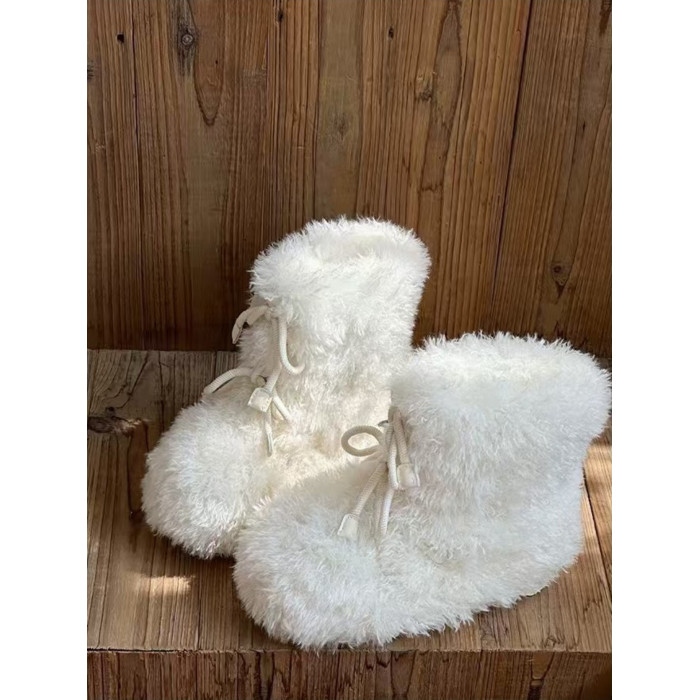 超可愛防滑厚底毛毛雪地靴女冬2026新款白色加絨短靴加厚保暖棉鞋