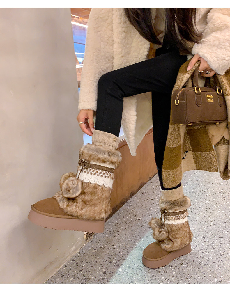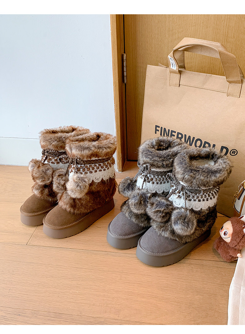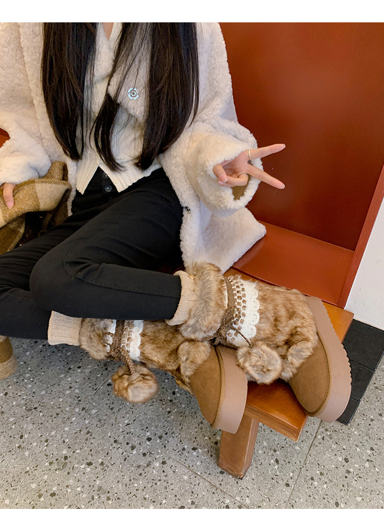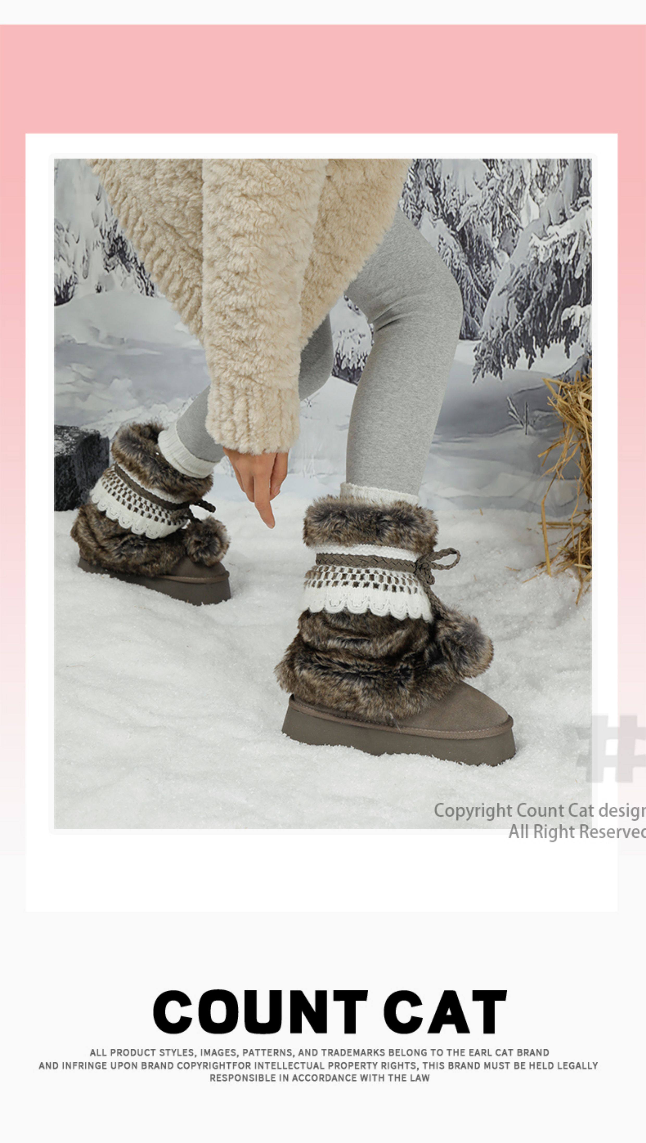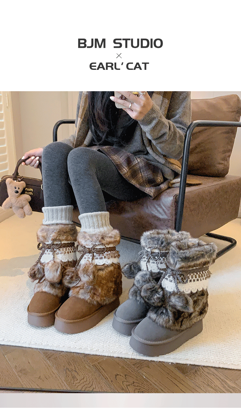 伯爵貓厚底增高雪地靴女2026冬季加絨保暖中筒廢土風可愛毛毛棉鞋