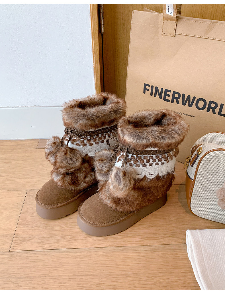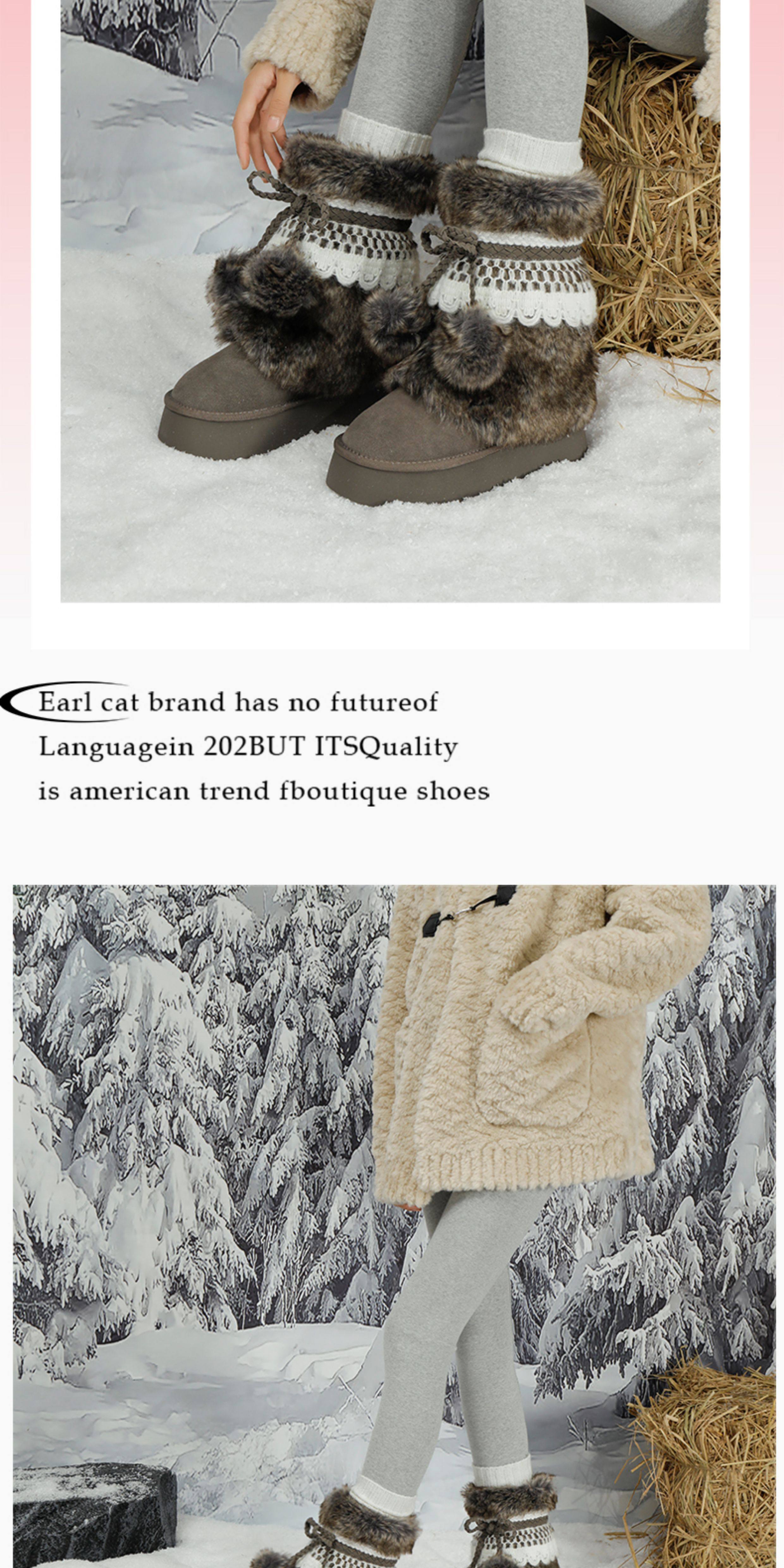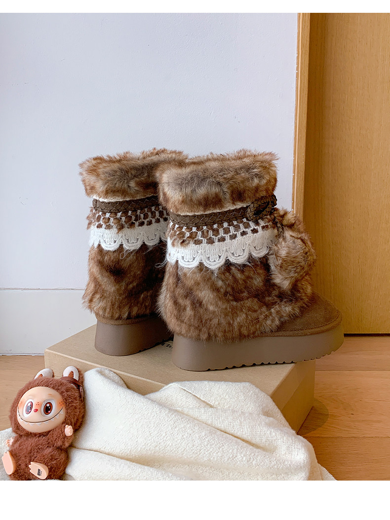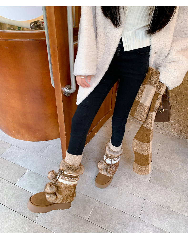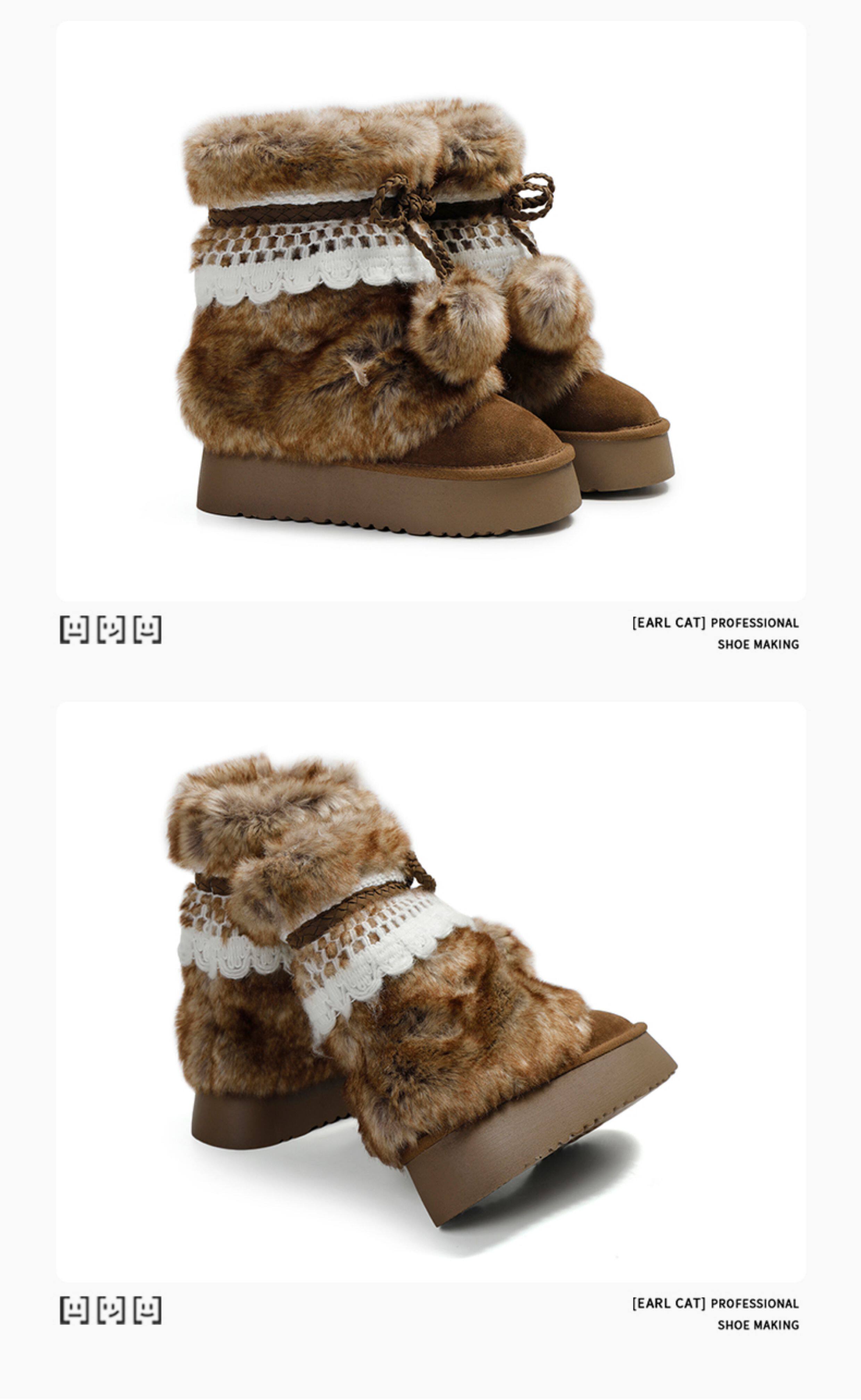 伯爵貓厚底增高雪地靴女2026冬季加絨保暖中筒廢土風可愛毛毛棉鞋