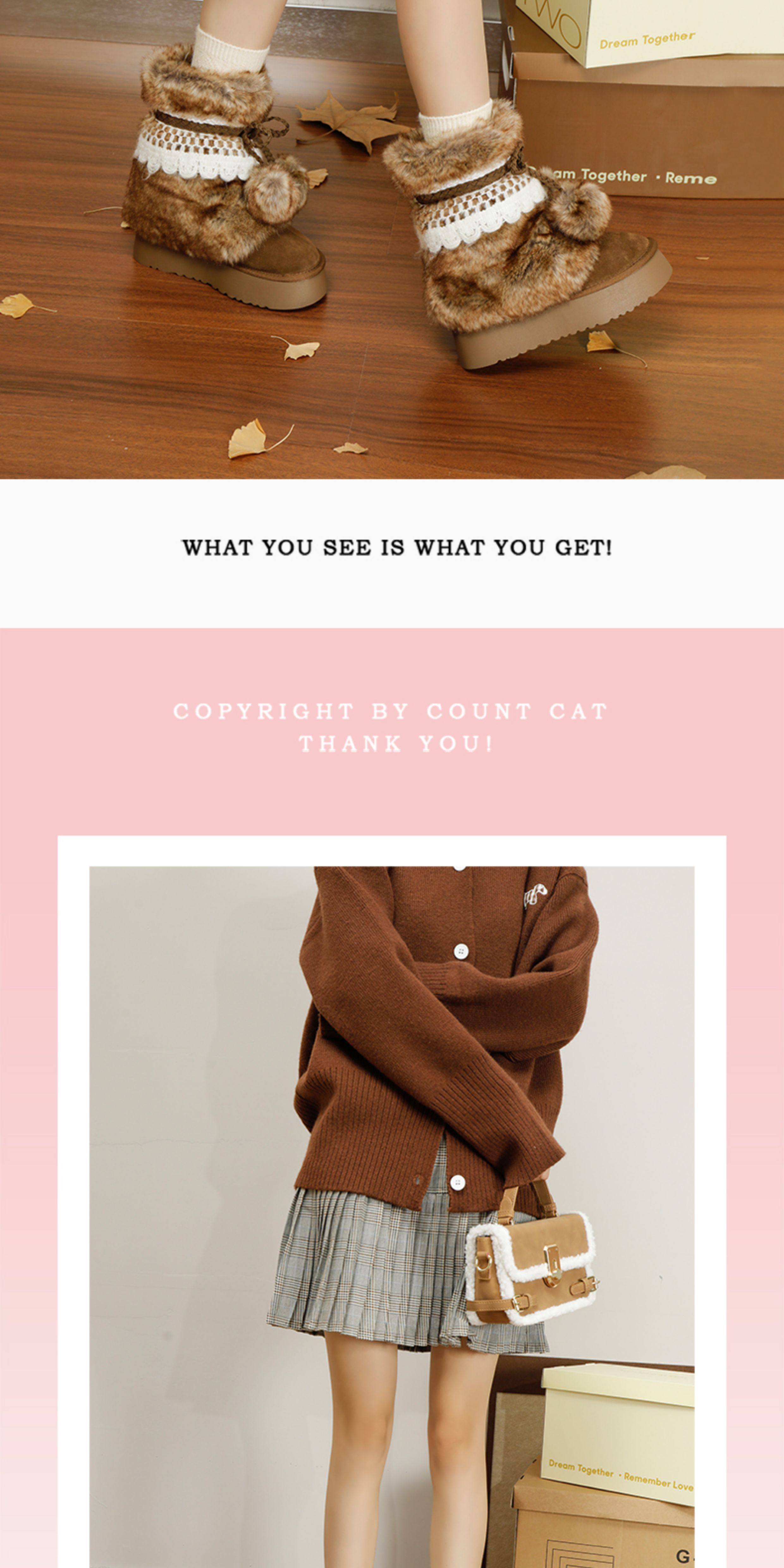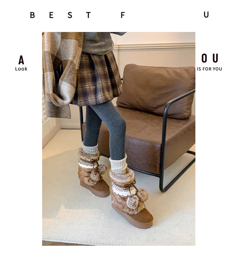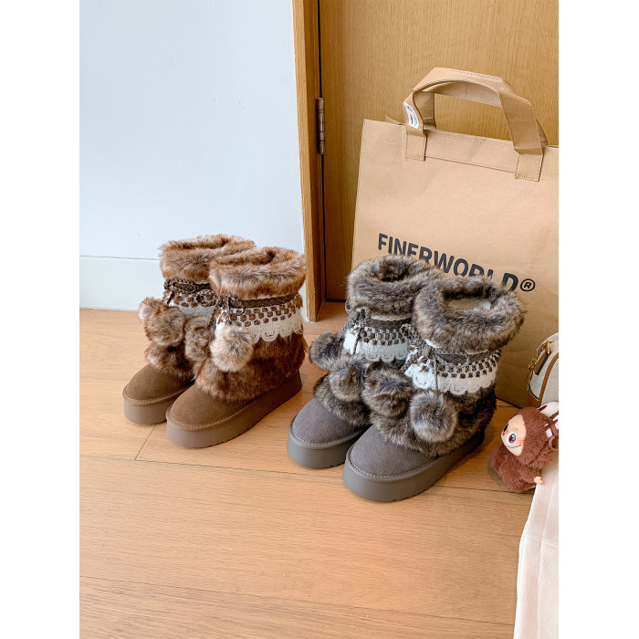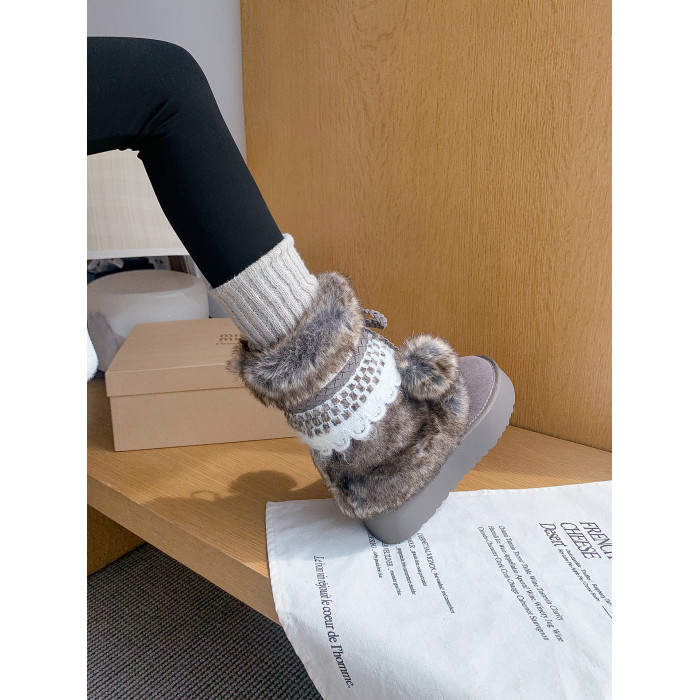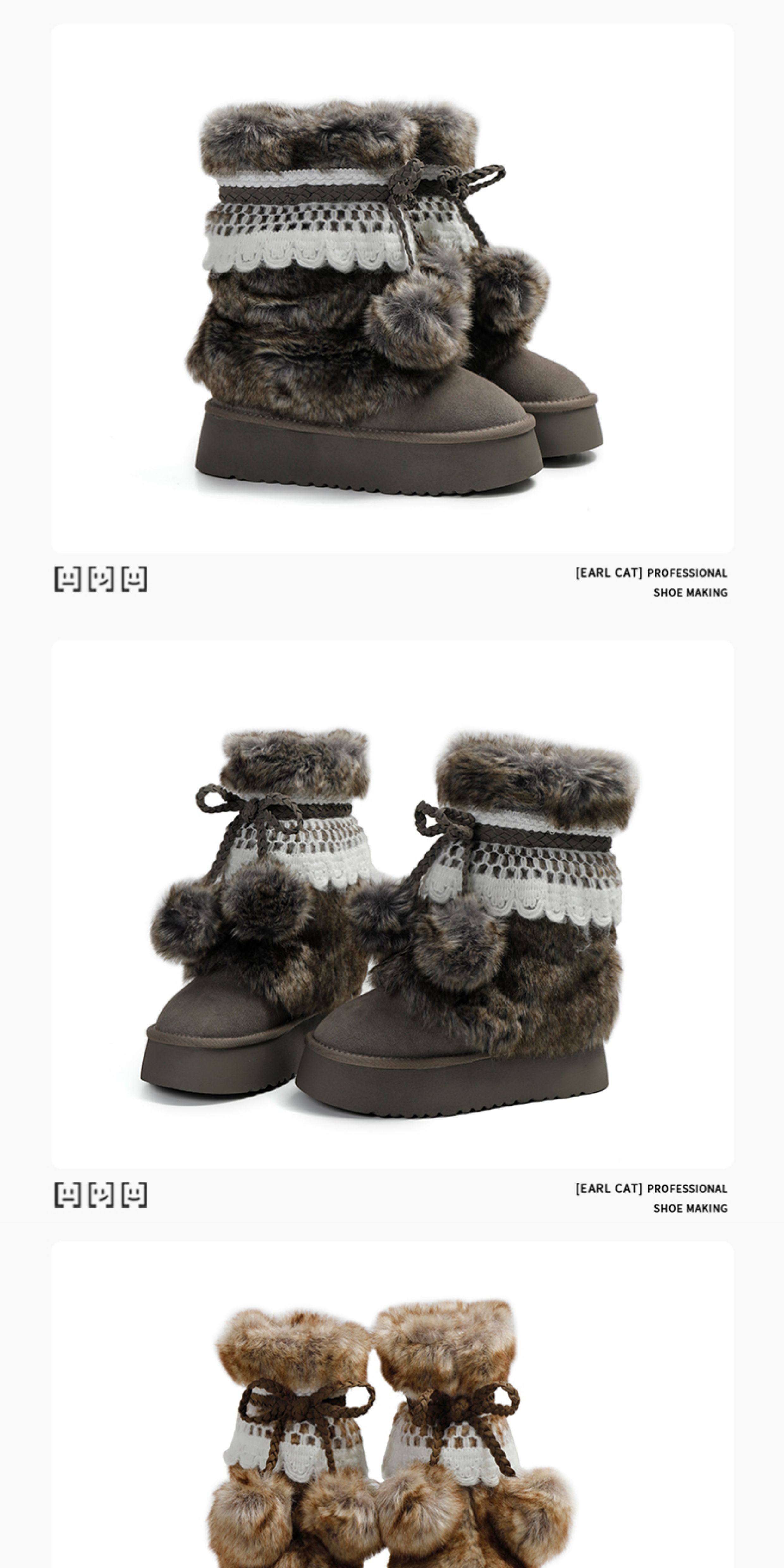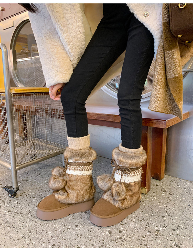 伯爵貓厚底增高雪地靴女2026冬季加絨保暖中筒廢土風可愛毛毛棉鞋