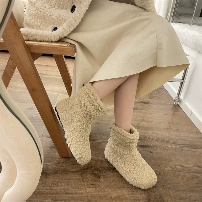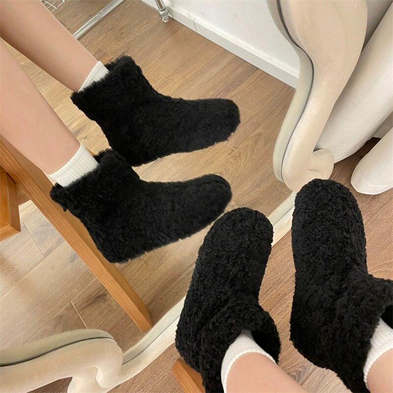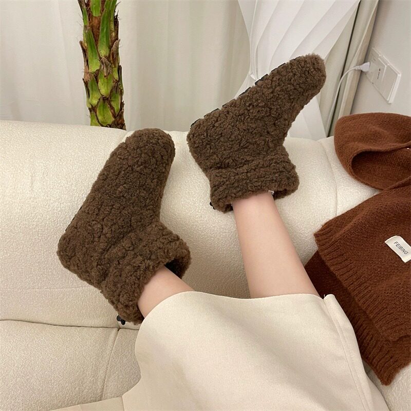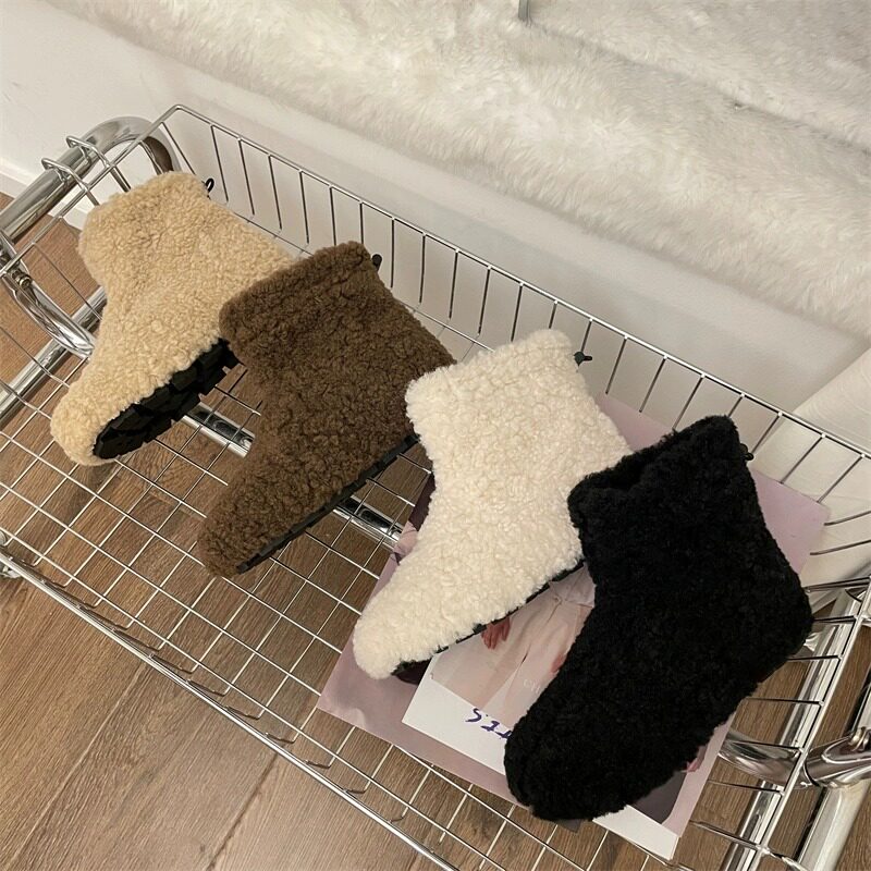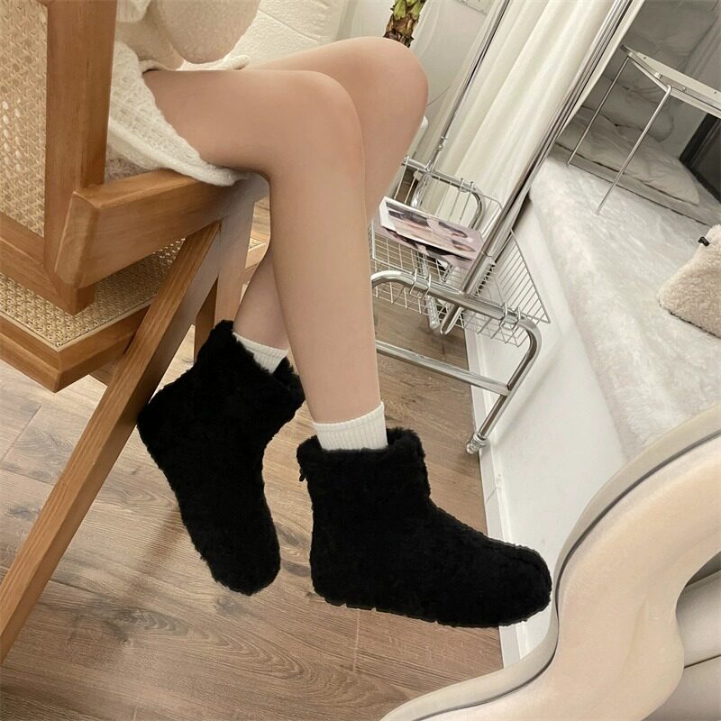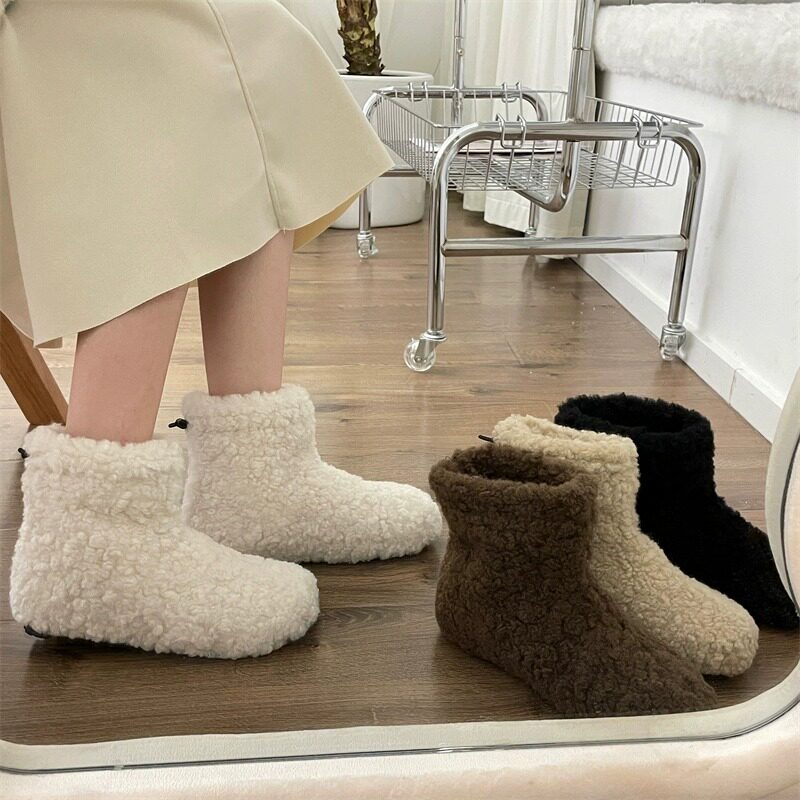 韓國加絨加厚雪地靴女2026年冬保暖羊羔毛棉靴防滑平底短筒毛毛靴
