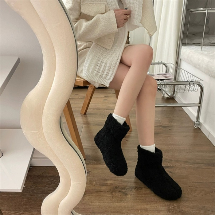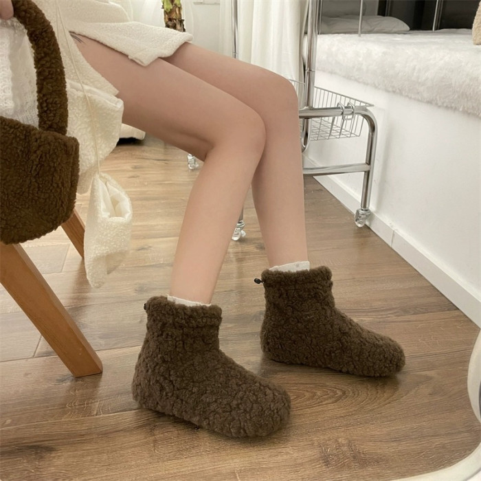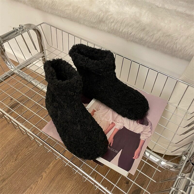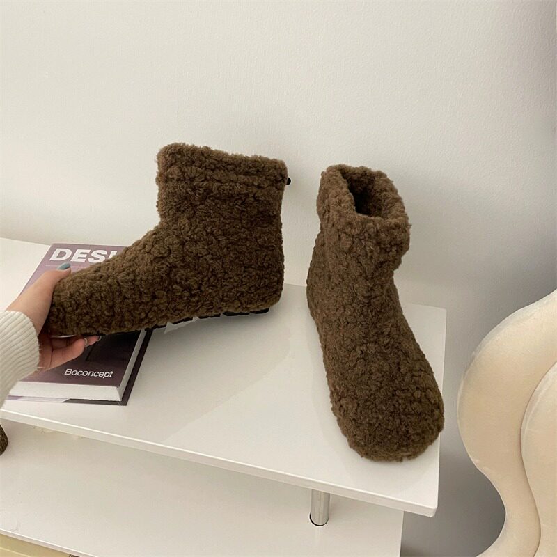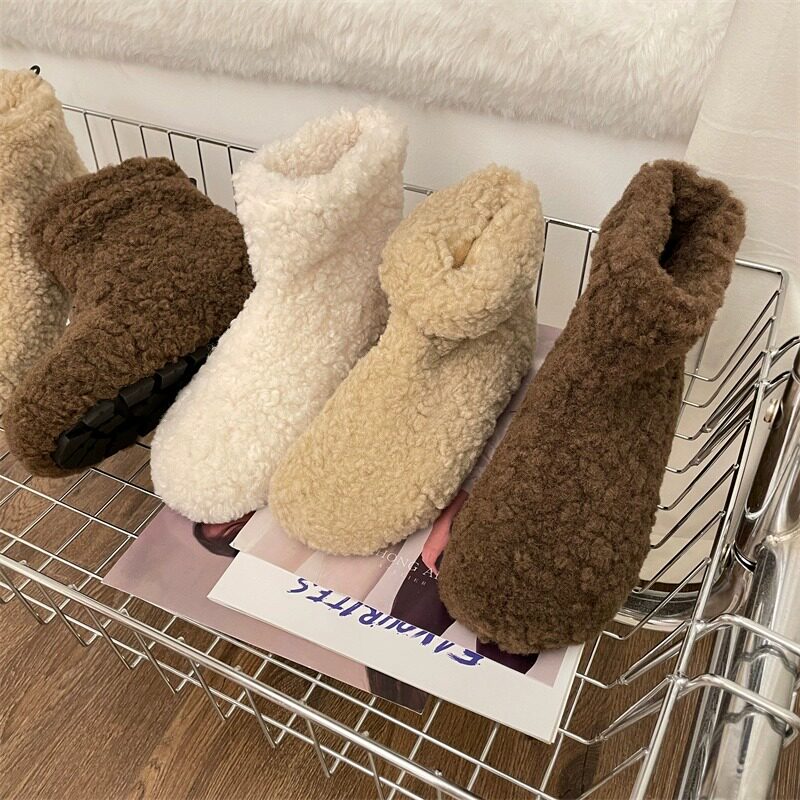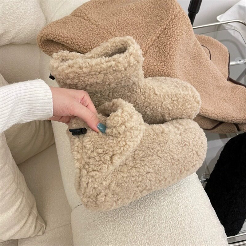 韓國加絨加厚雪地靴女2026年冬保暖羊羔毛棉靴防滑平底短筒毛毛靴