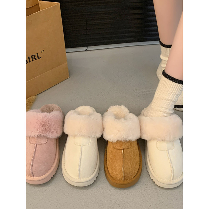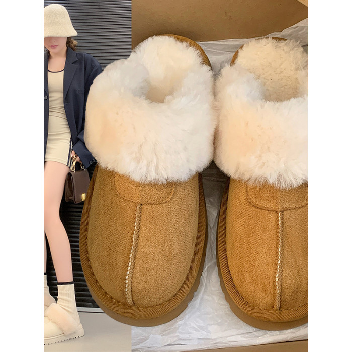 2025千頌伊同款皮毛一體女包頭拖  毛拖鞋平底加厚毛毛拖保暖外穿