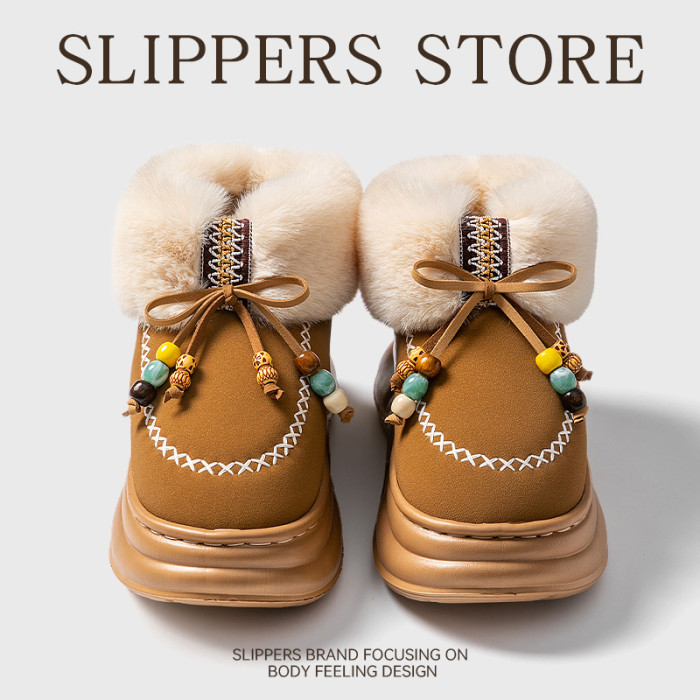 高幫雪地靴女2026秋冬季新款小衆時尚復古百搭舒適蝴蝶結雪地棉鞋