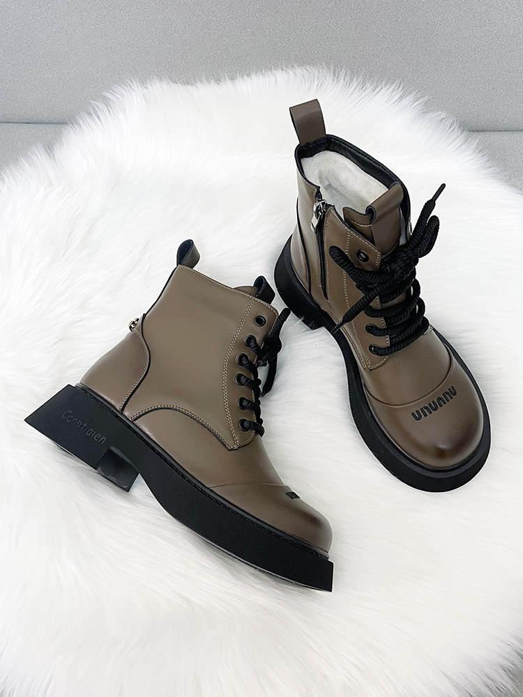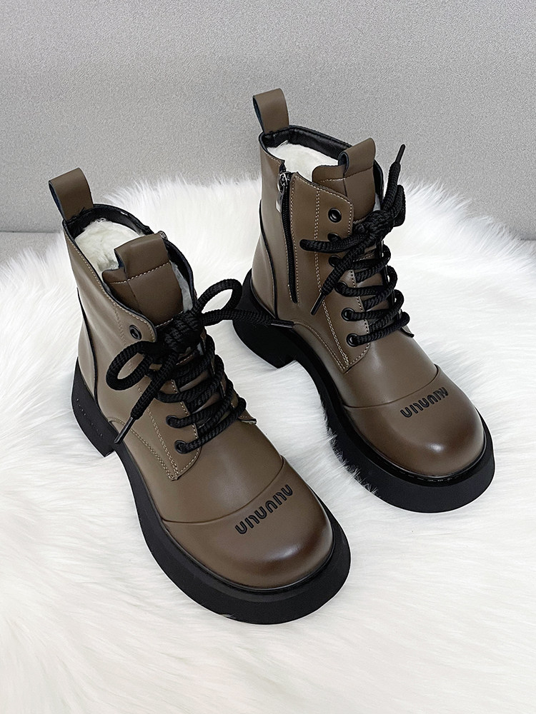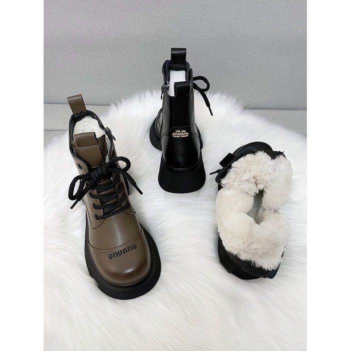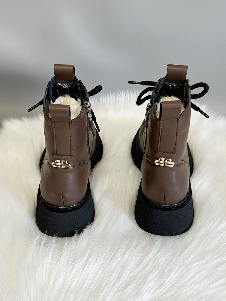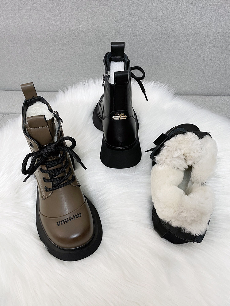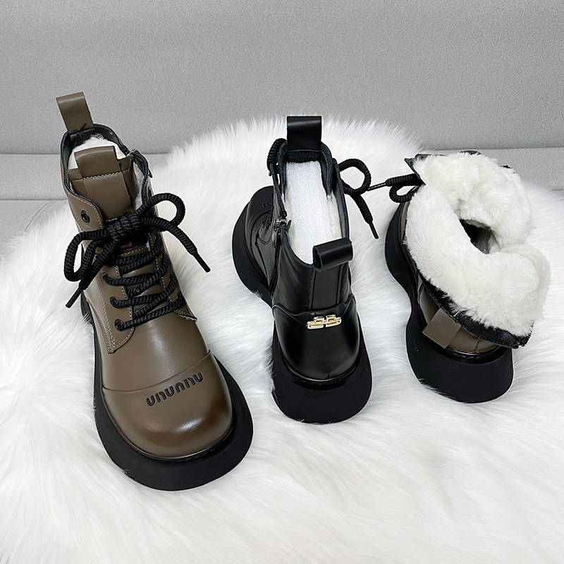 真皮時尚雪地靴女厚底冬季新款純羊毛短靴加厚皮毛一體防滑棉靴潮