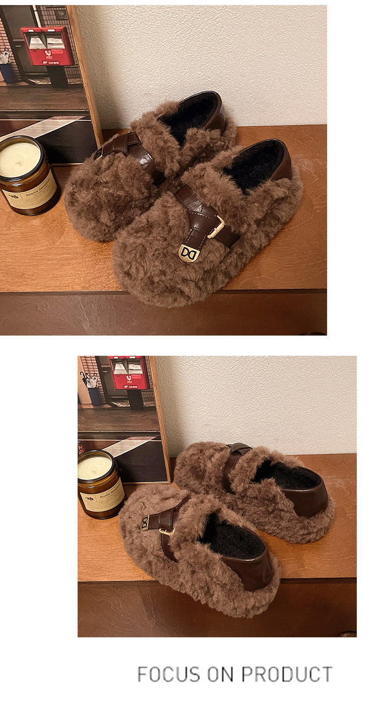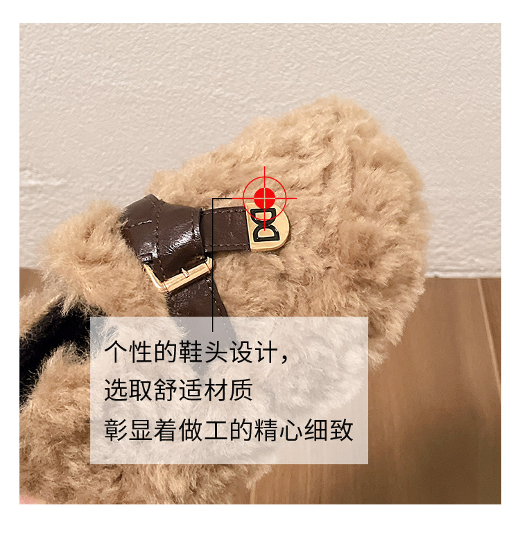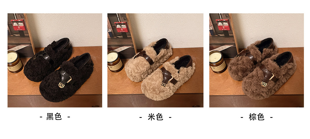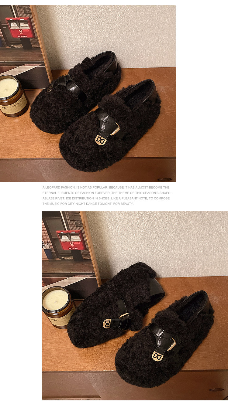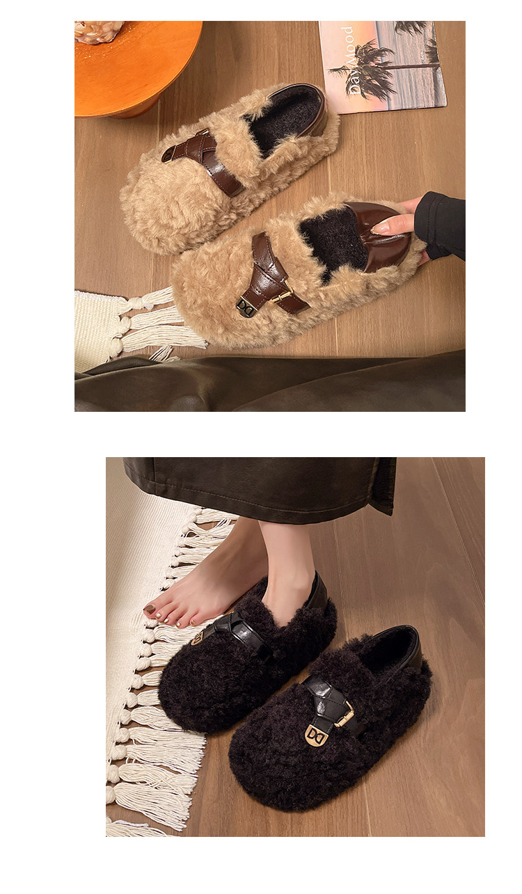 黑色厚底毛毛鞋女增高羊羔絨拖鞋保暖2025冬季新款豆豆鞋女士棉鞋