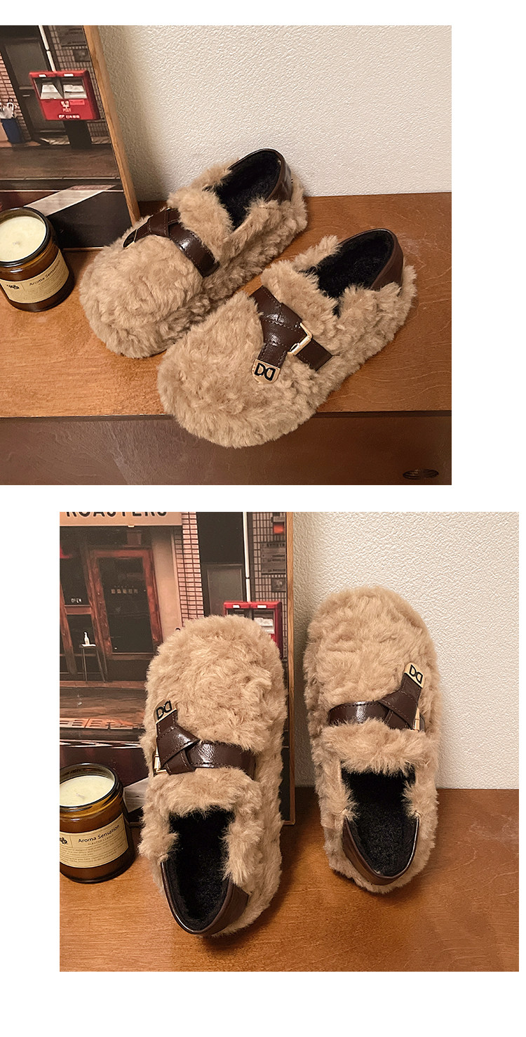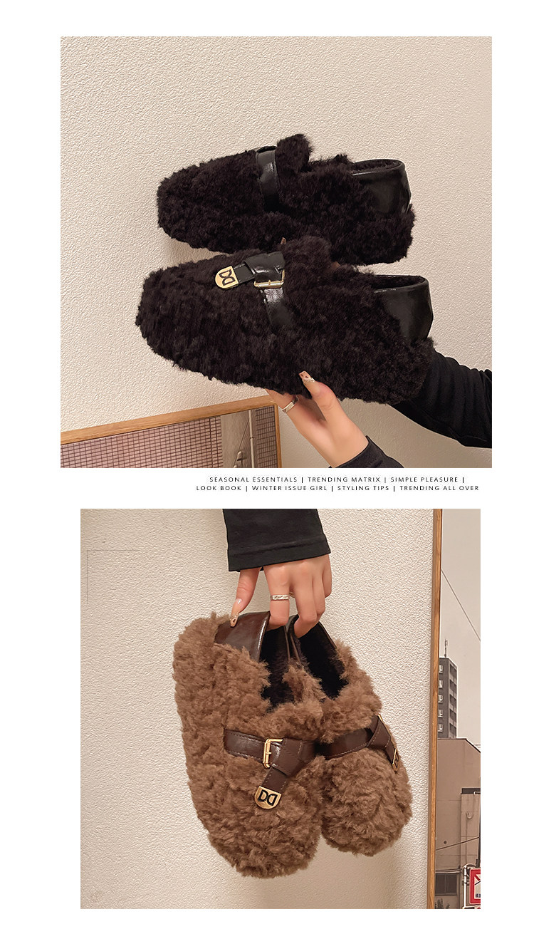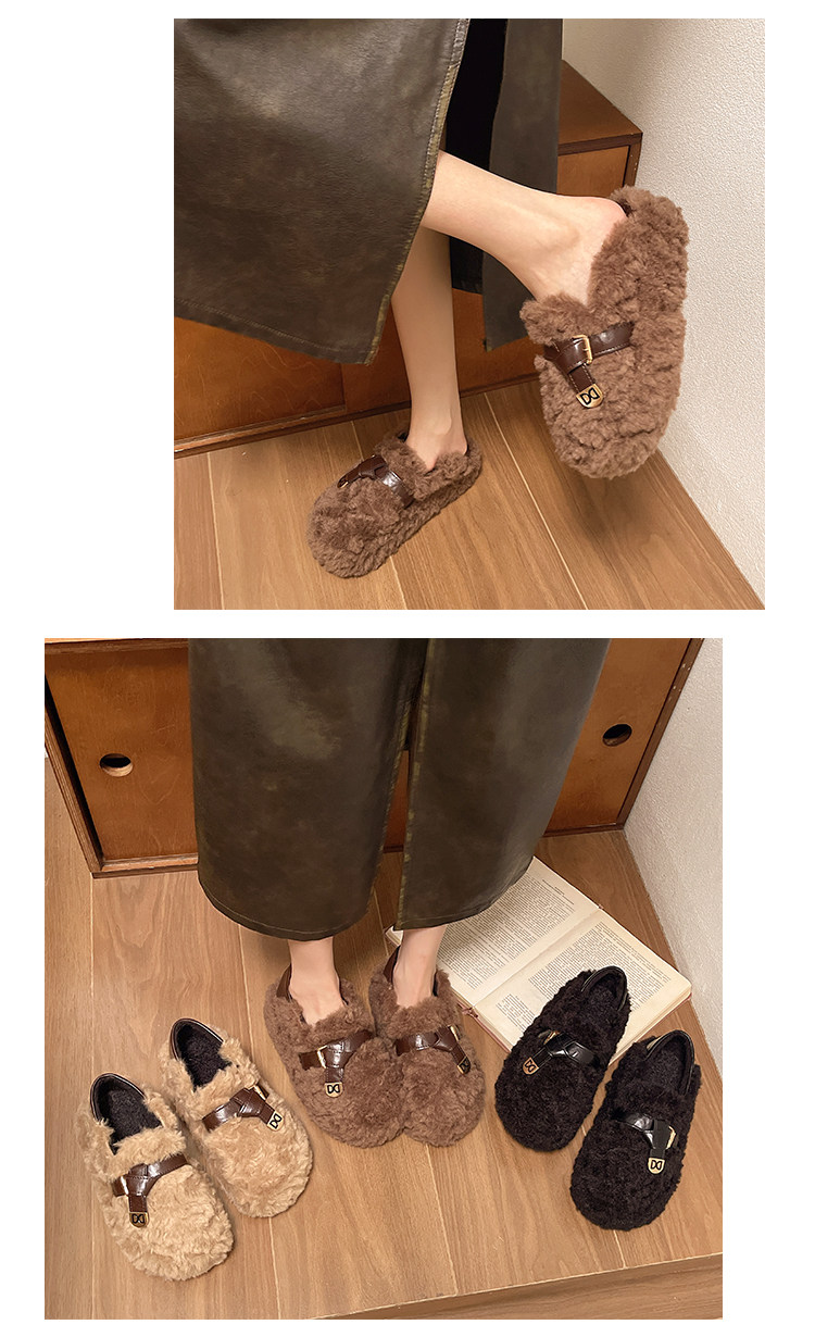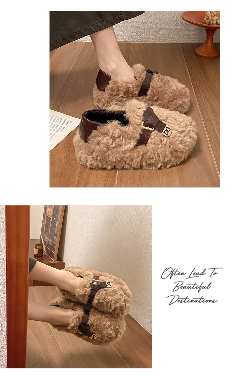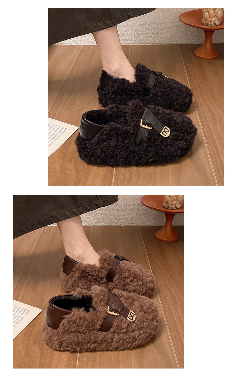 黑色厚底毛毛鞋女增高羊羔絨拖鞋保暖2025冬季新款豆豆鞋女士棉鞋