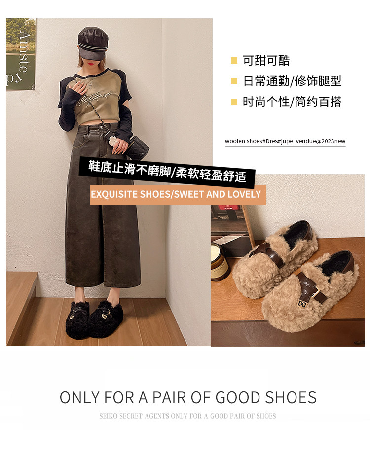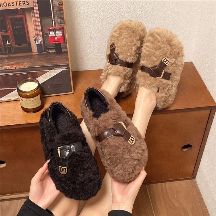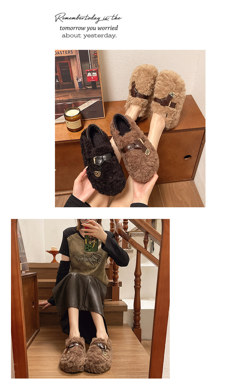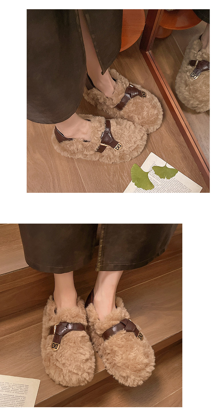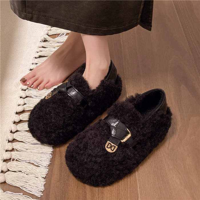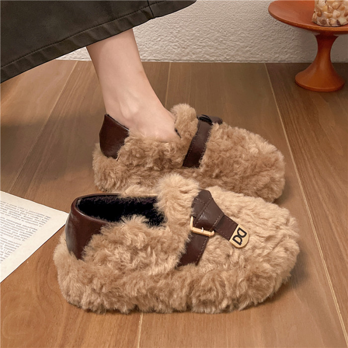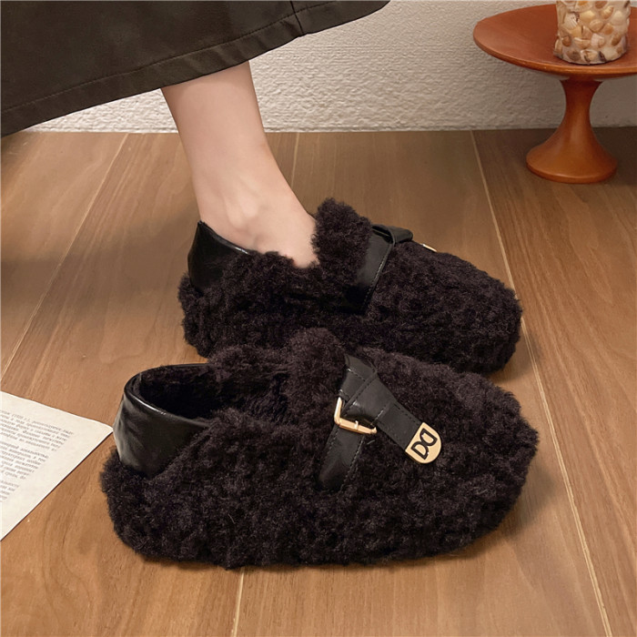 黑色厚底毛毛鞋女增高羊羔絨拖鞋保暖2025冬季新款豆豆鞋女士棉鞋