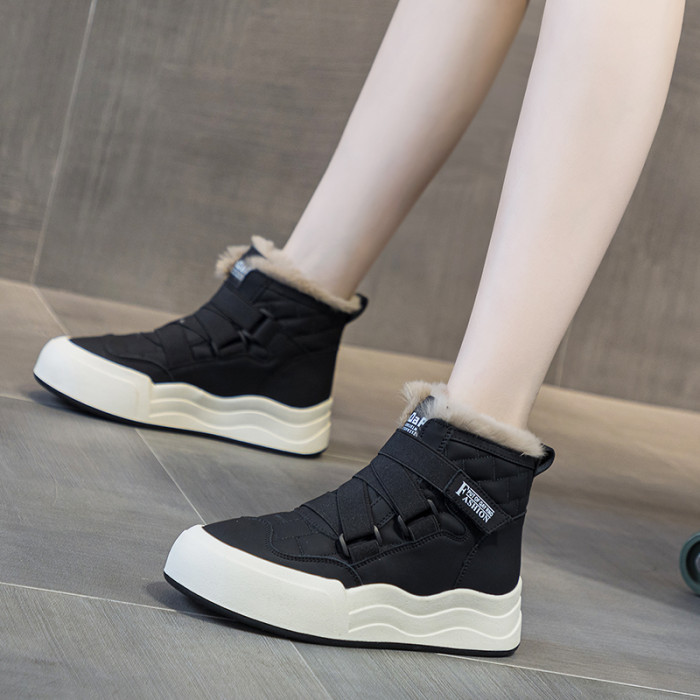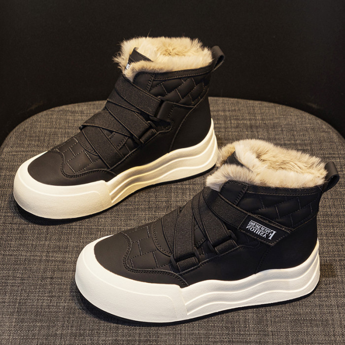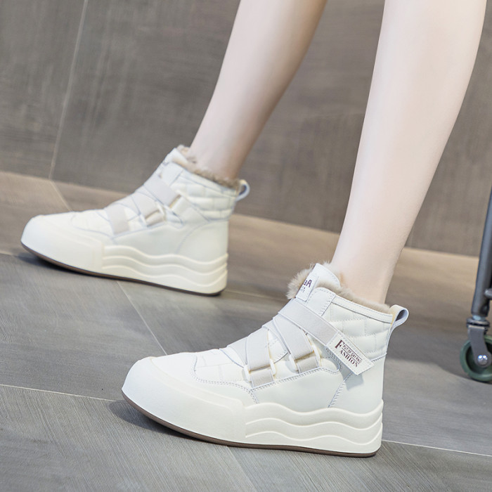 加絨棉鞋女冬2025新款真皮高幫小白鞋厚底休閒運動加厚保暖雪地靴