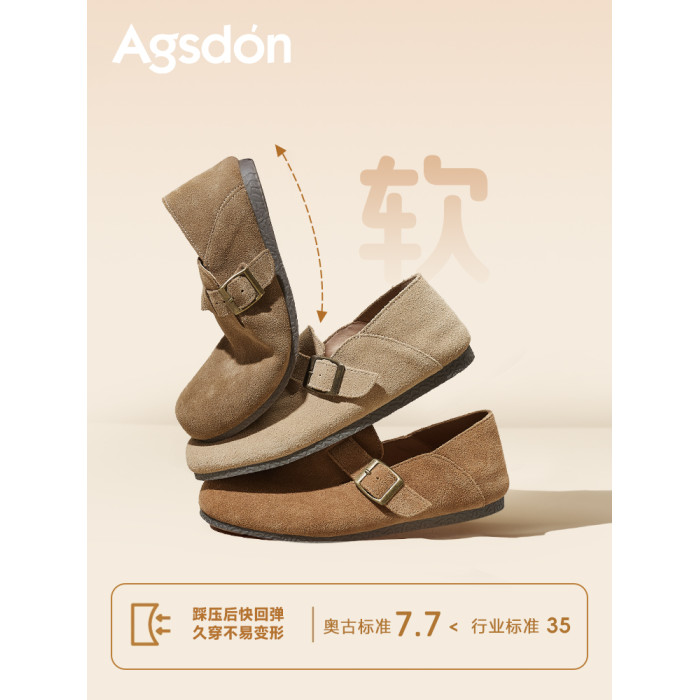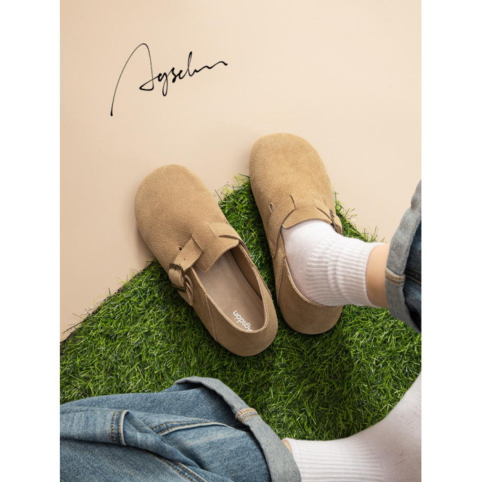 勃肯鞋女2025秋冬季新款真皮全包平底一腳蹬孕婦軟底休閒博肯單鞋