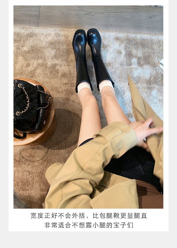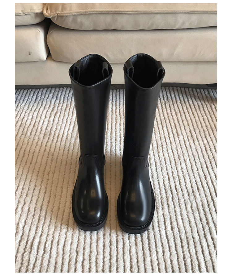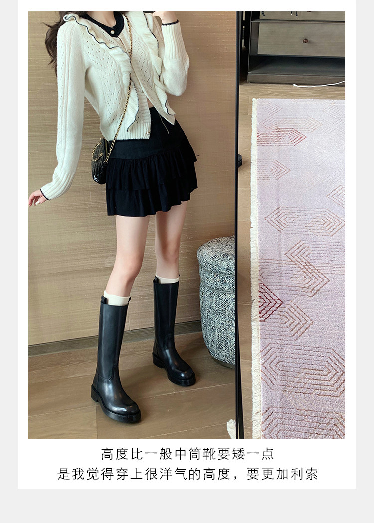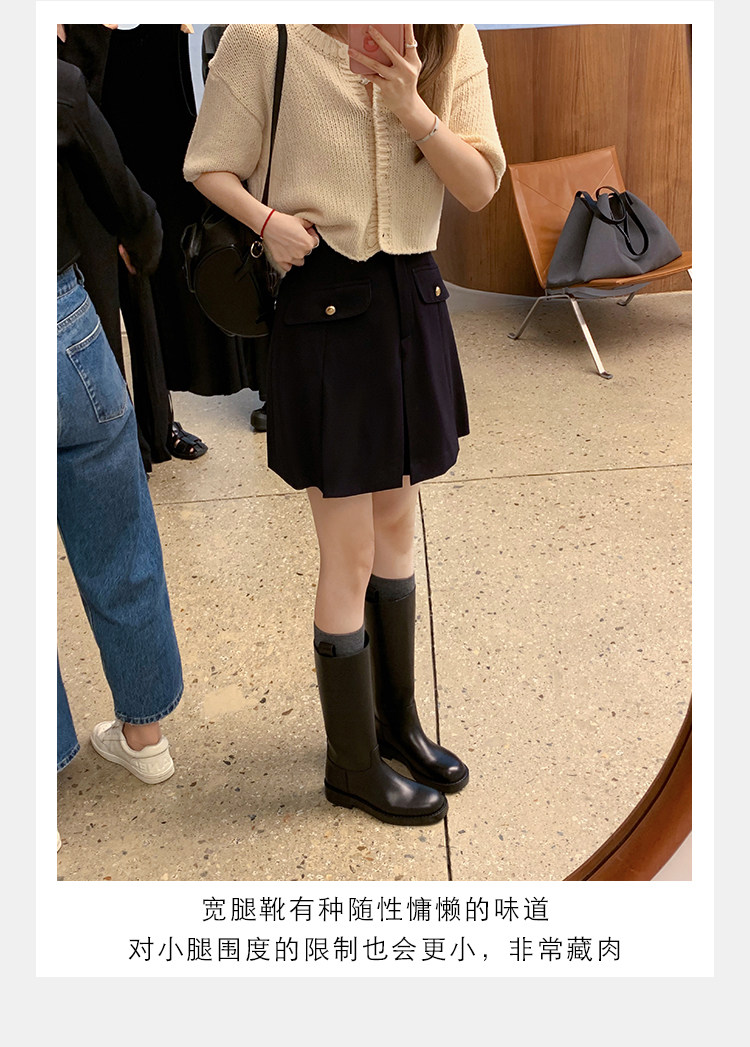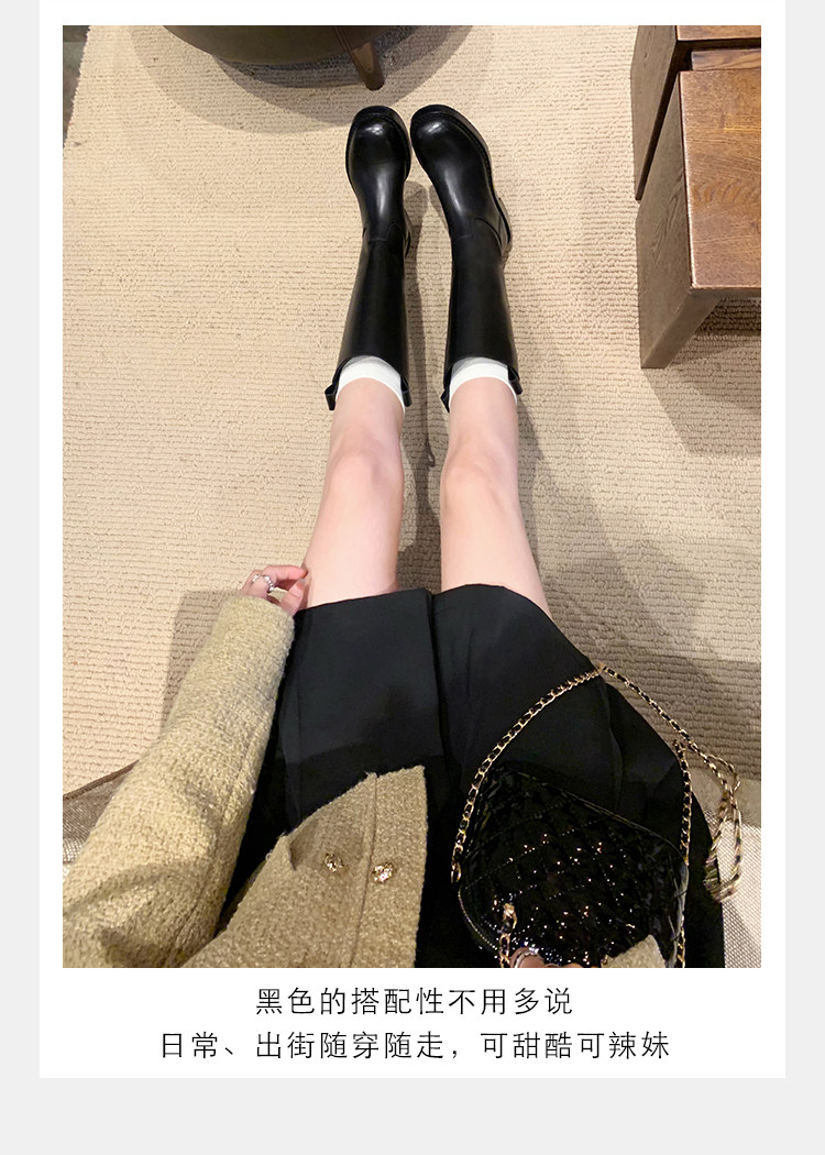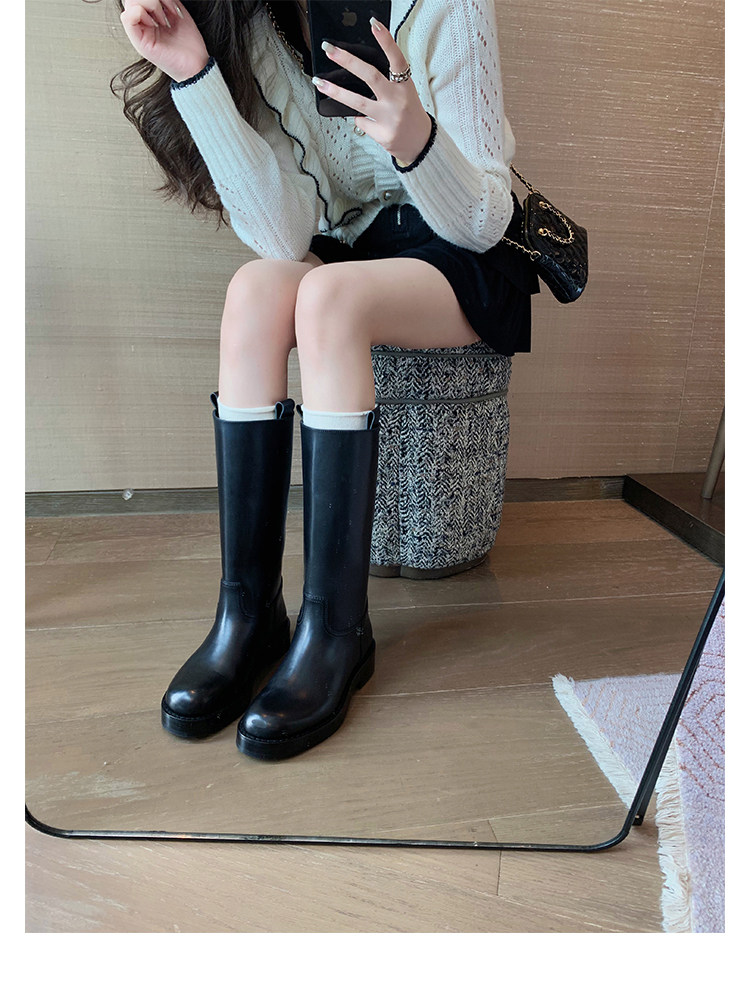 2026新款英倫風中筒靴子粗跟寬筒騎士靴高筒不過膝長筒靴女西部靴
