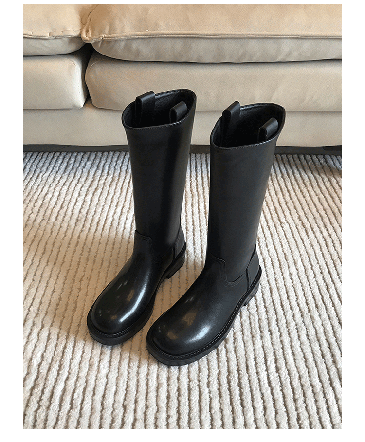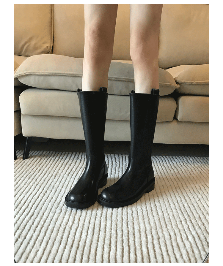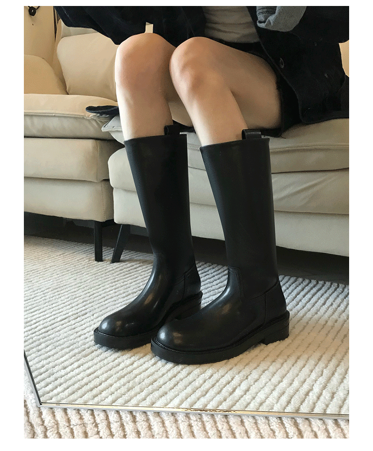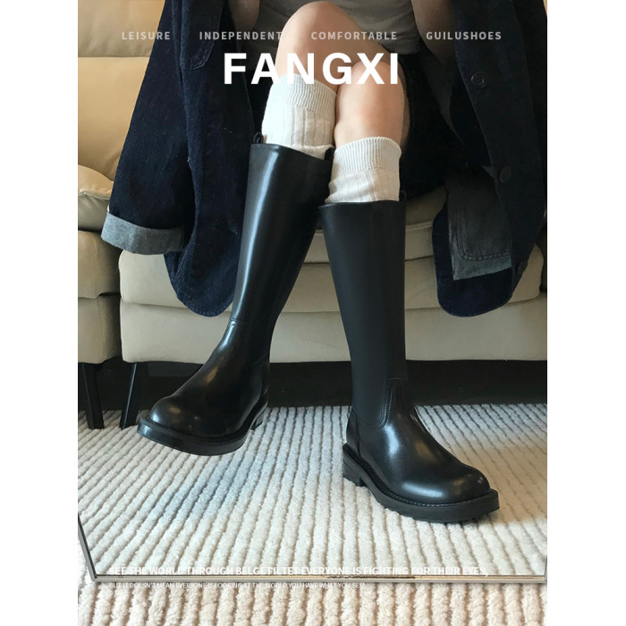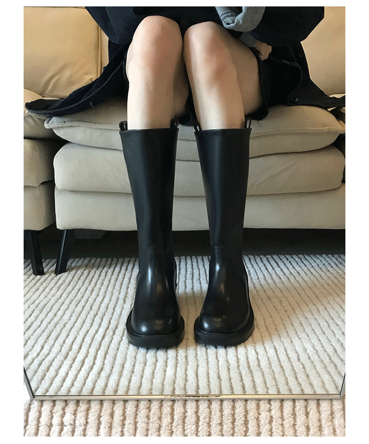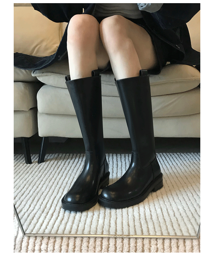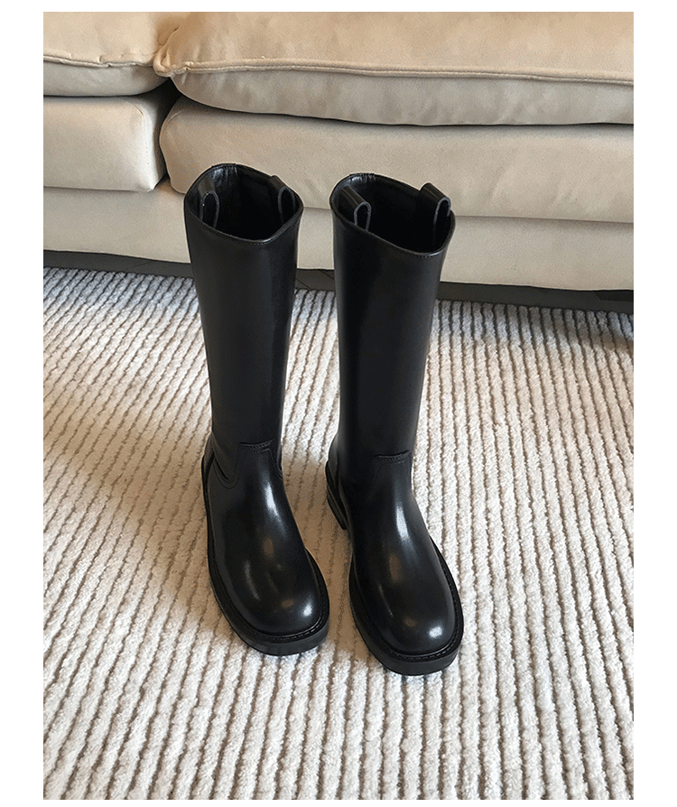 2026新款英倫風中筒靴子粗跟寬筒騎士靴高筒不過膝長筒靴女西部靴