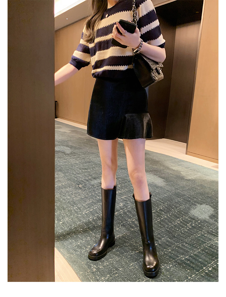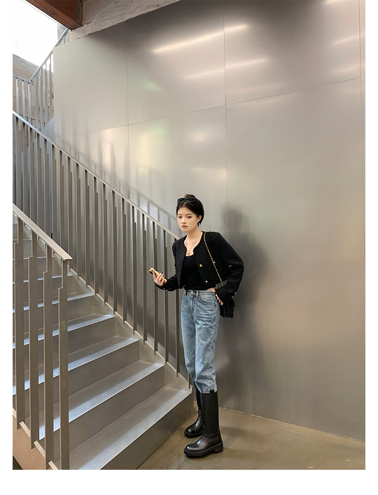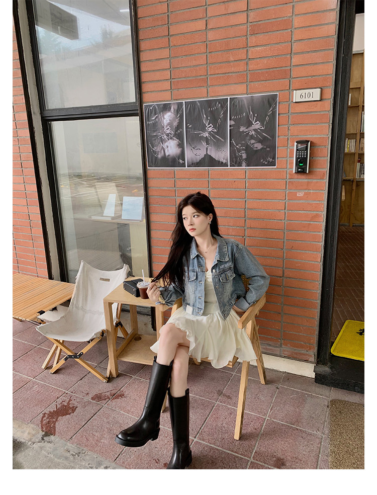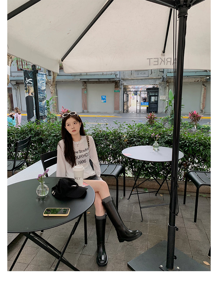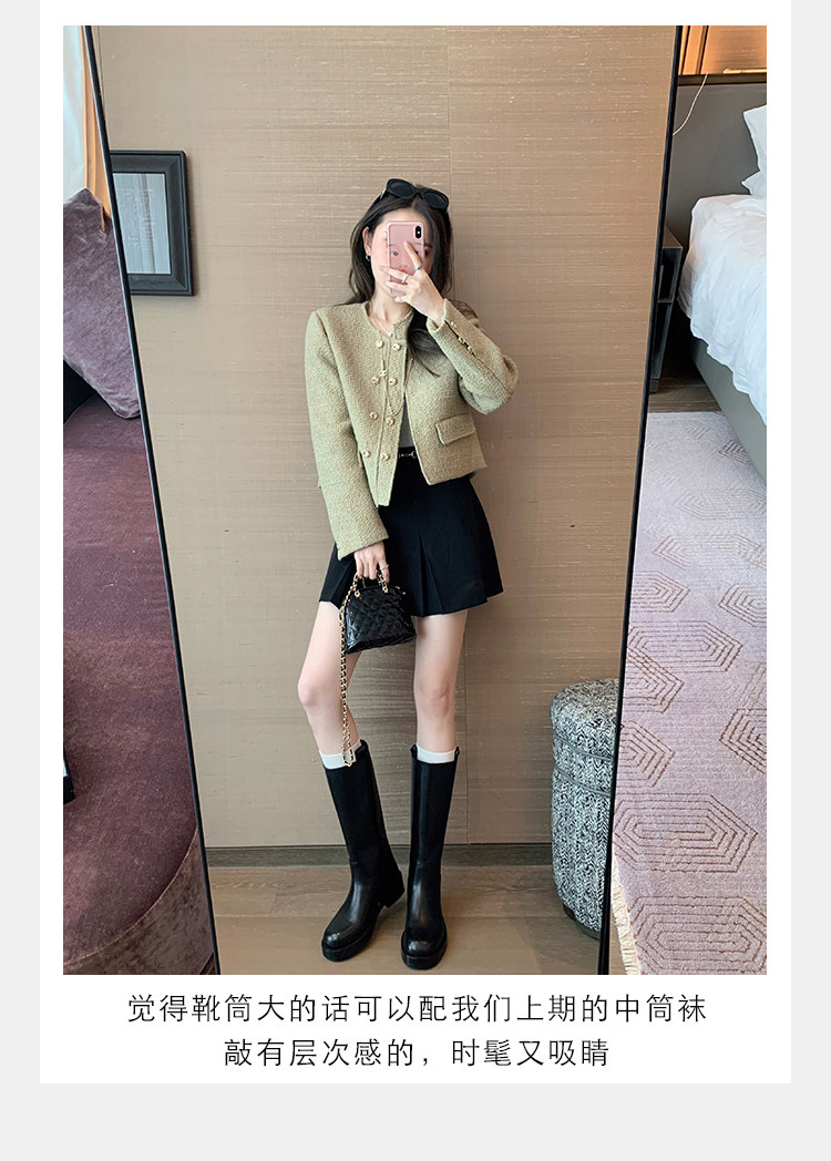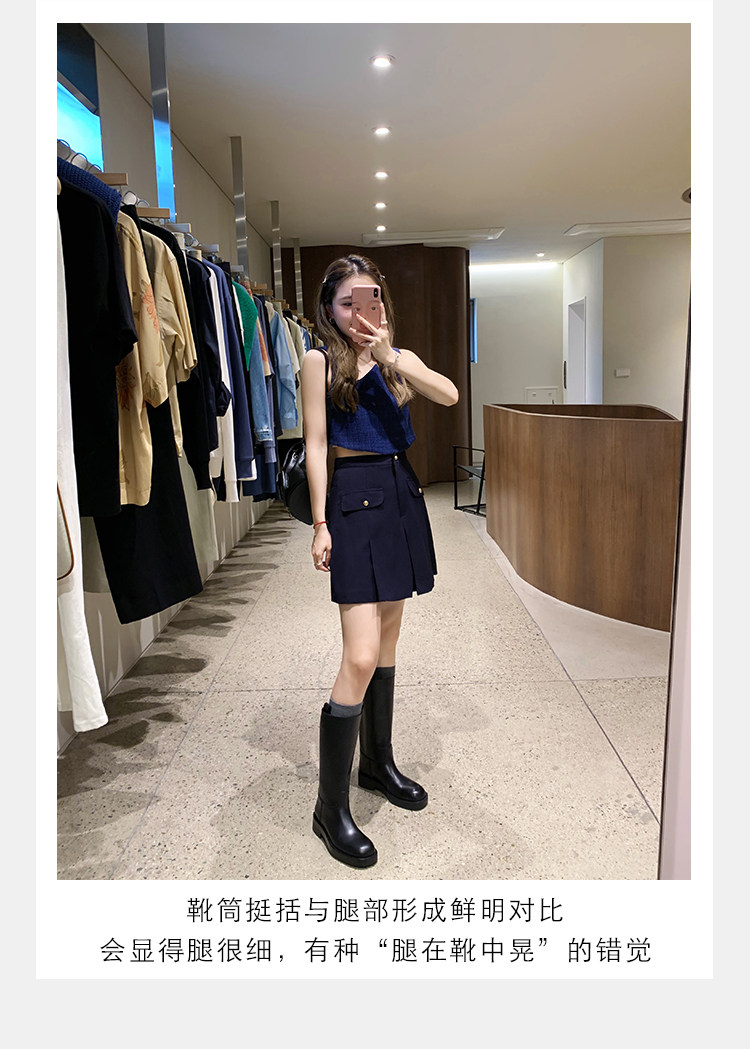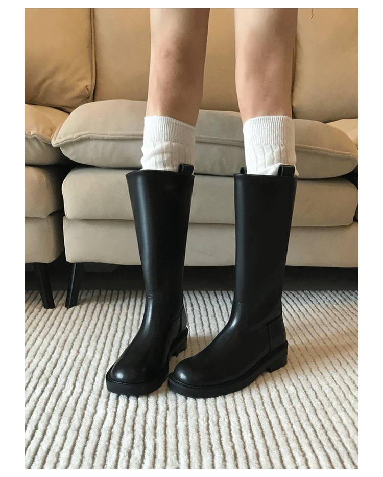 2026新款英倫風中筒靴子粗跟寬筒騎士靴高筒不過膝長筒靴女西部靴