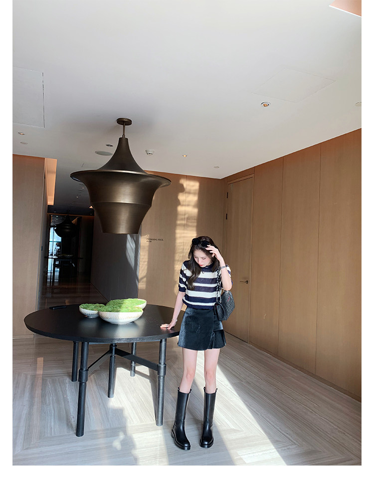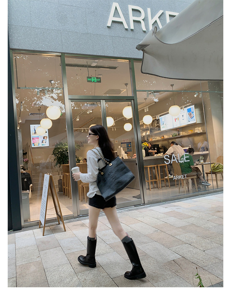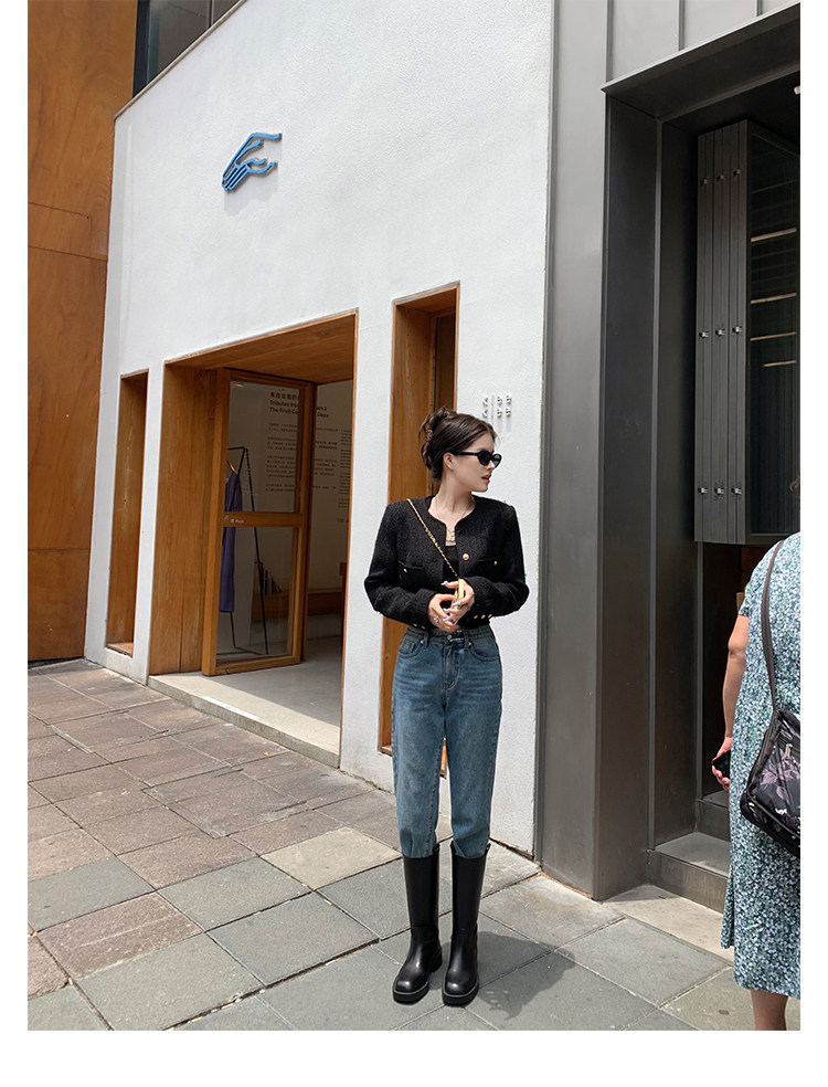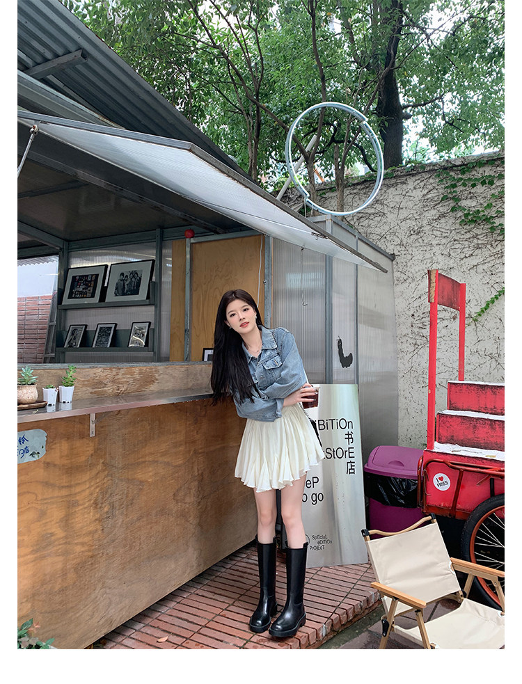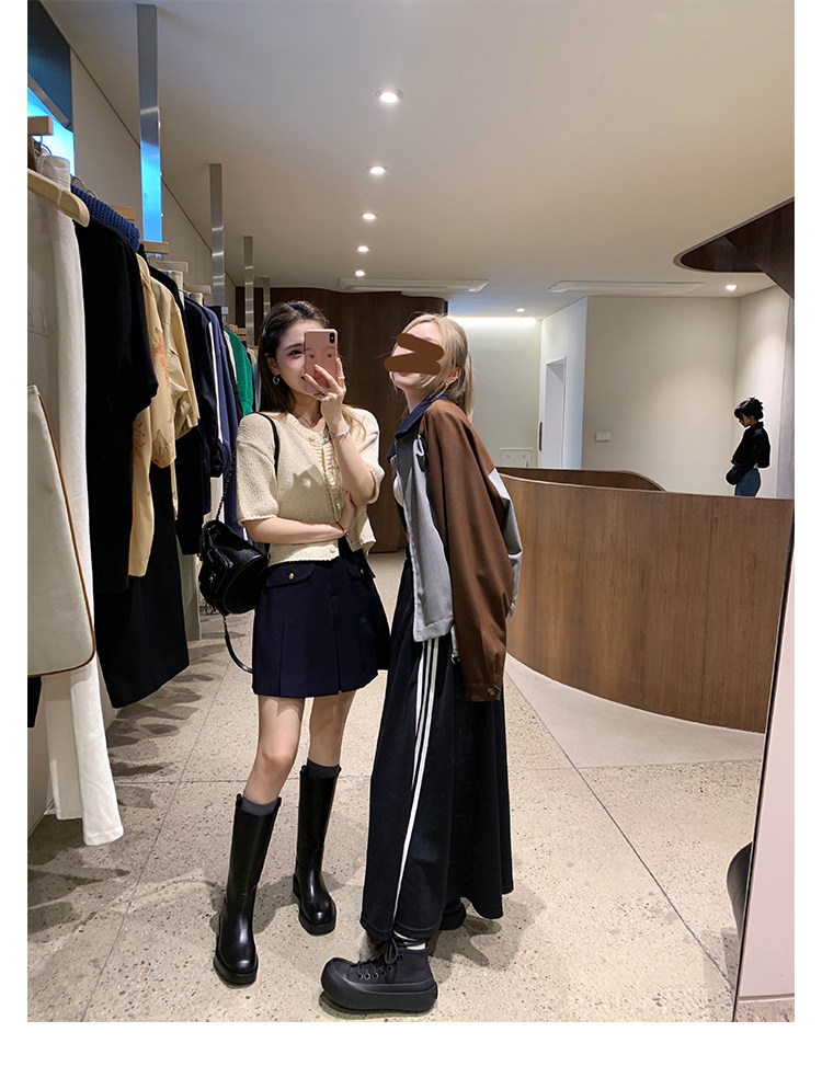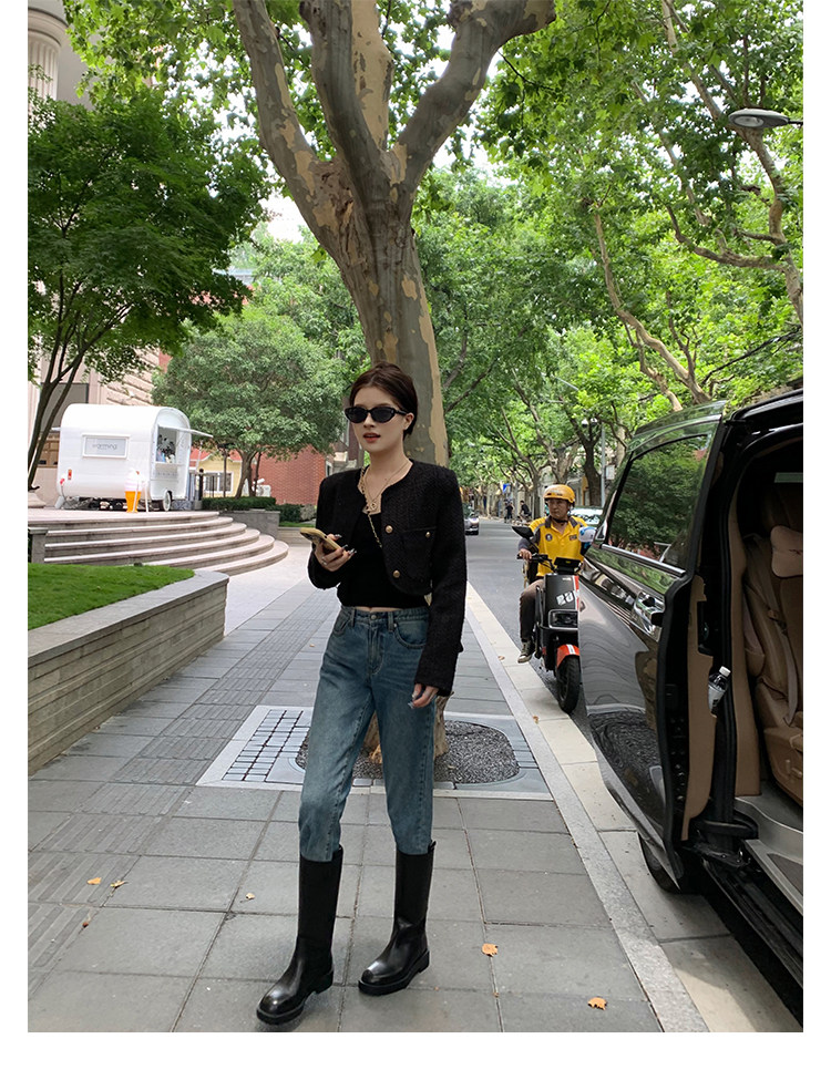 2026新款英倫風中筒靴子粗跟寬筒騎士靴高筒不過膝長筒靴女西部靴