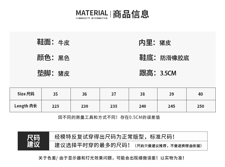 | 鞋墊材質 | 頭層豬皮 |