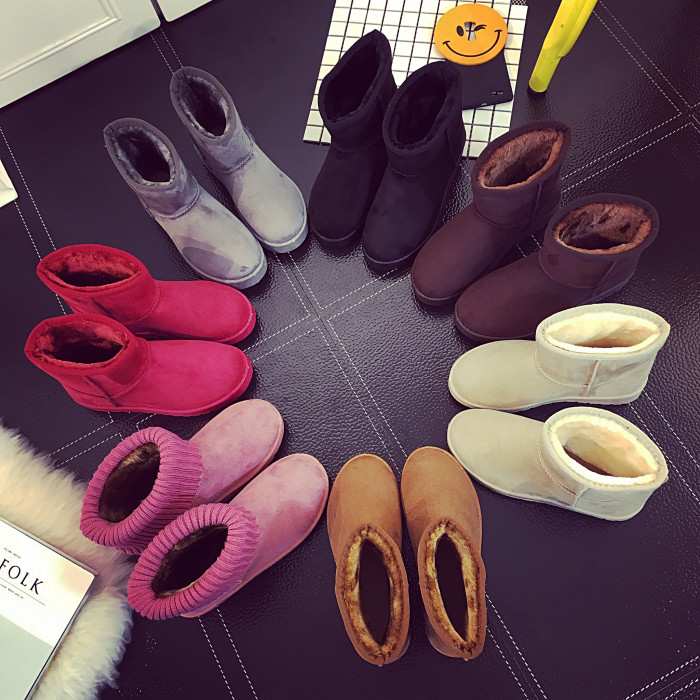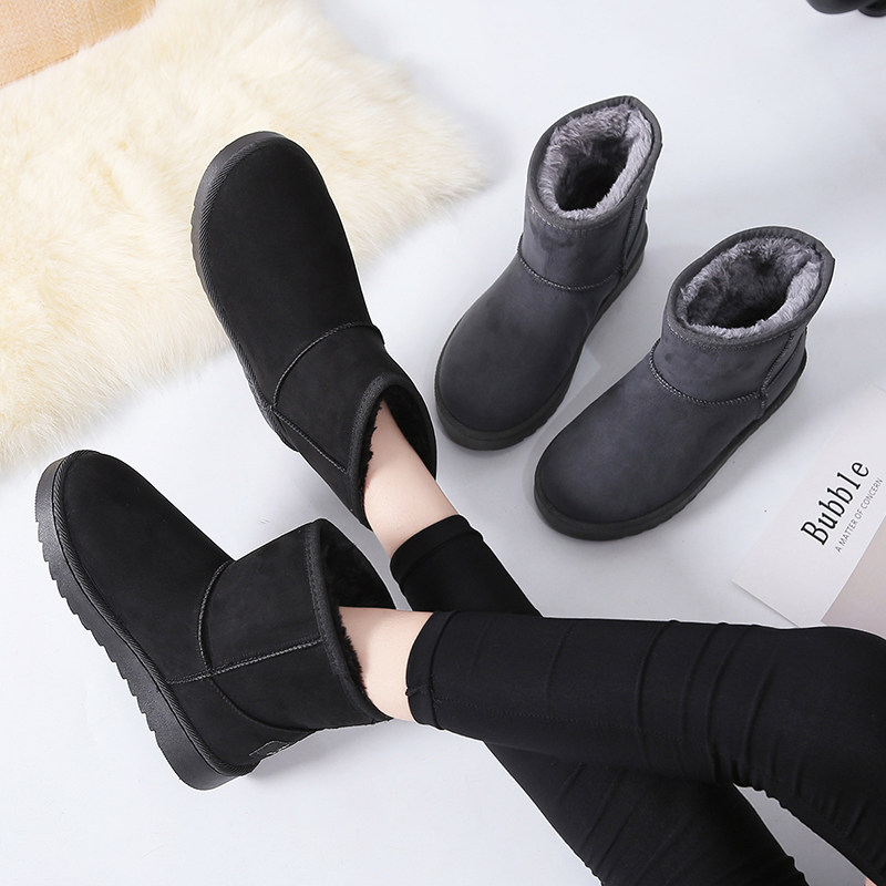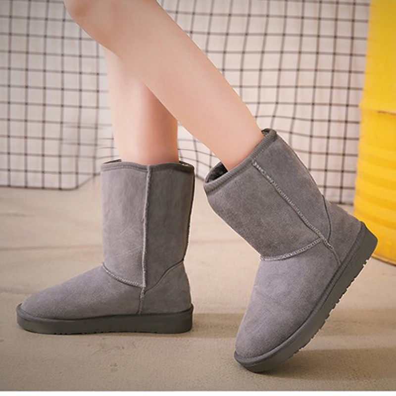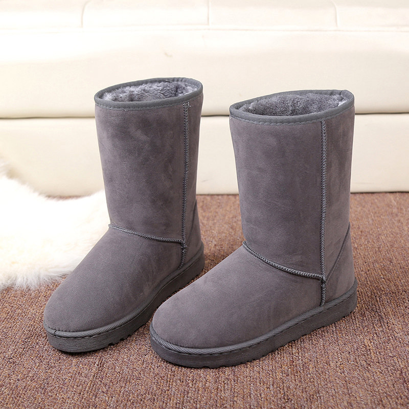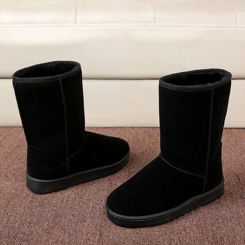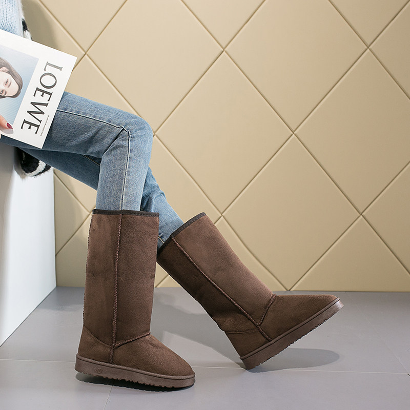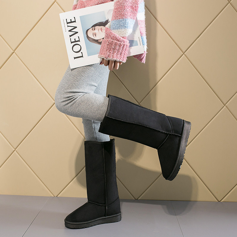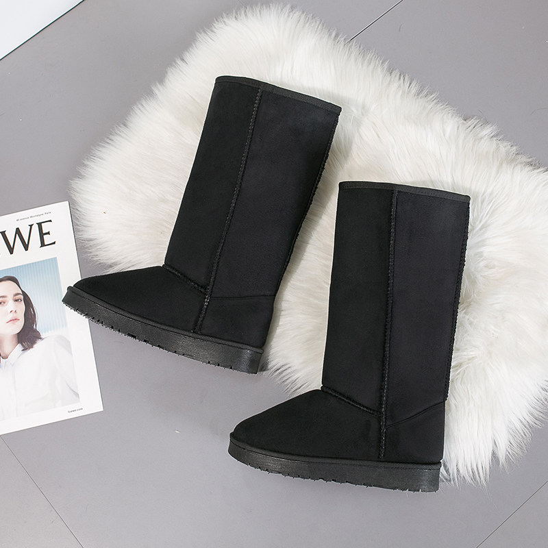 秋冬季磨砂中高筒長筒加絨長靴平跟平底雪地女靴子經典大碼41棉鞋