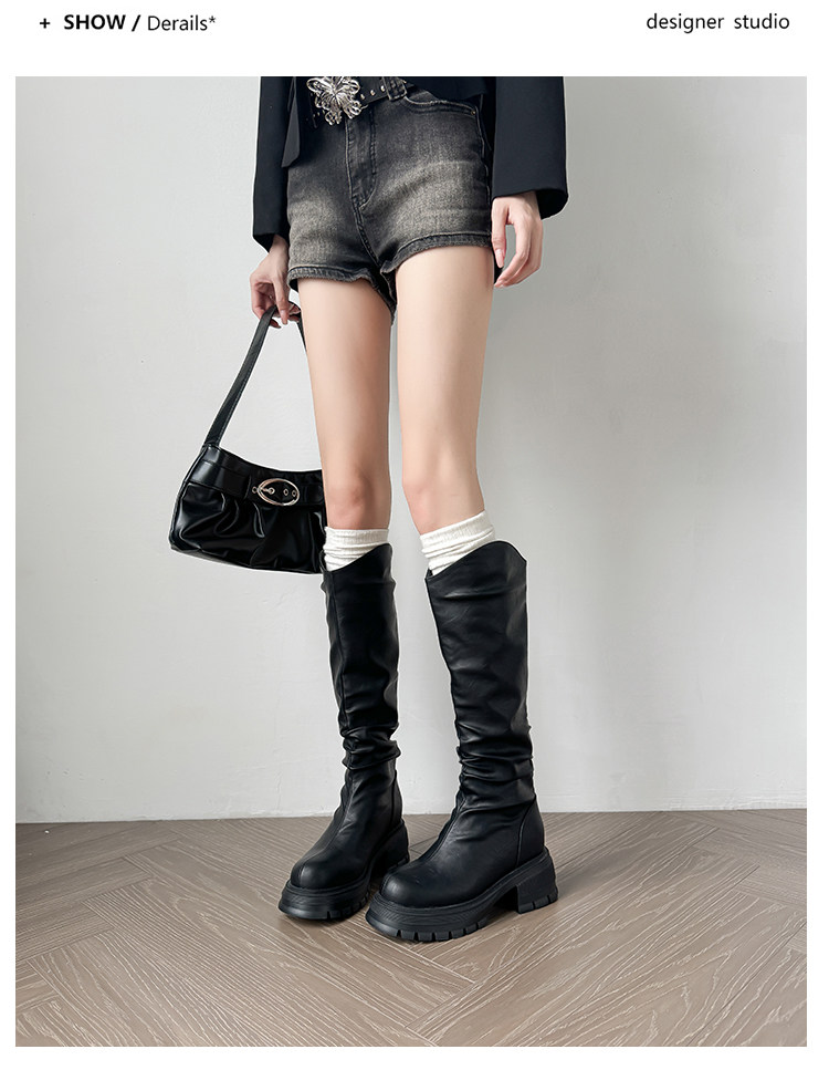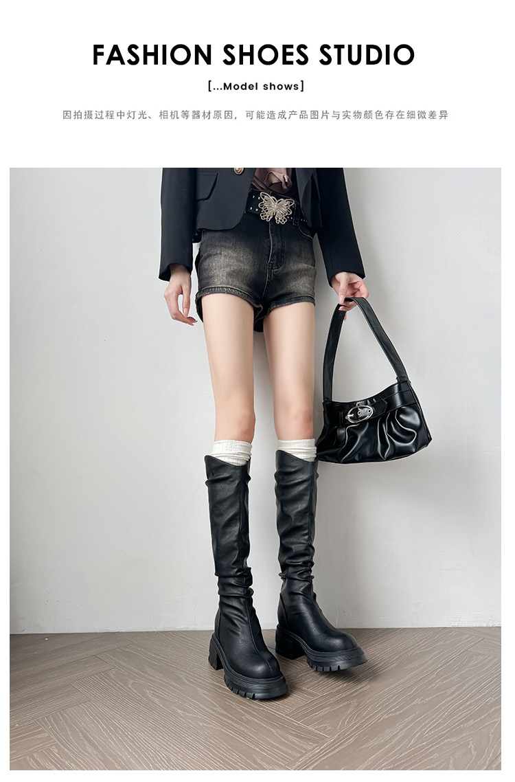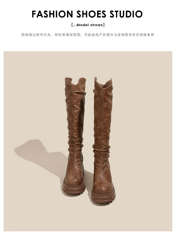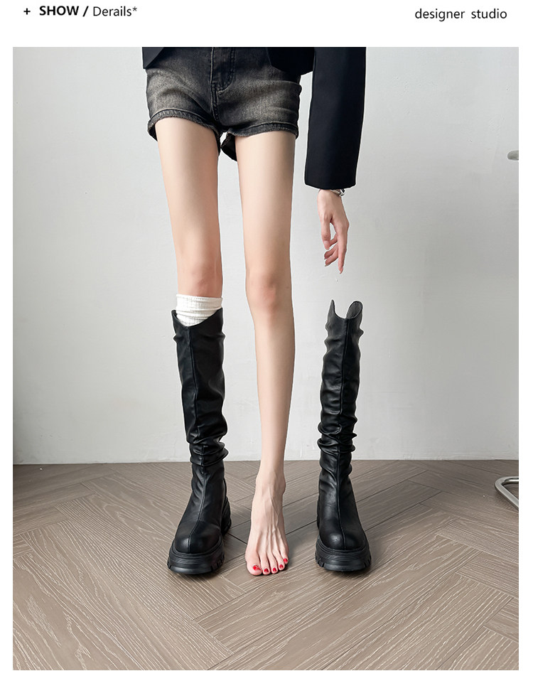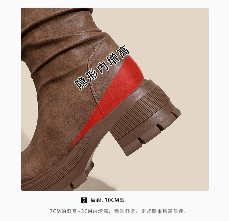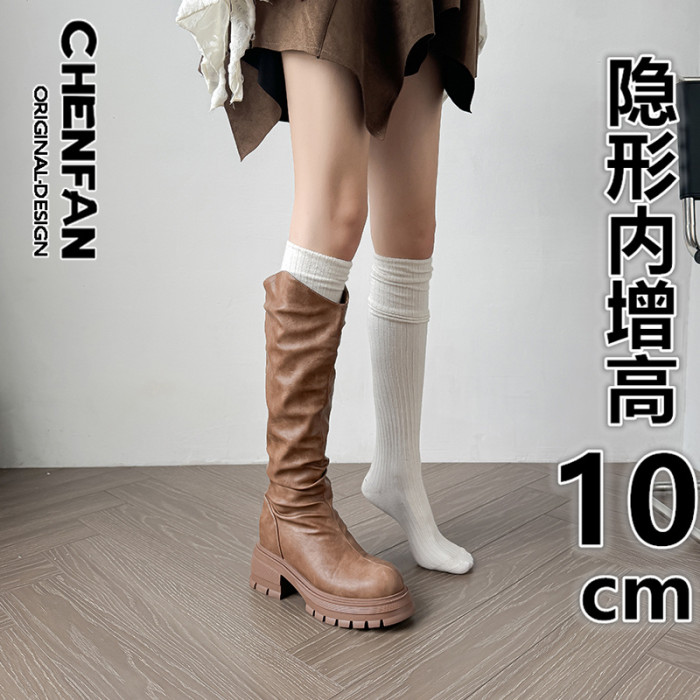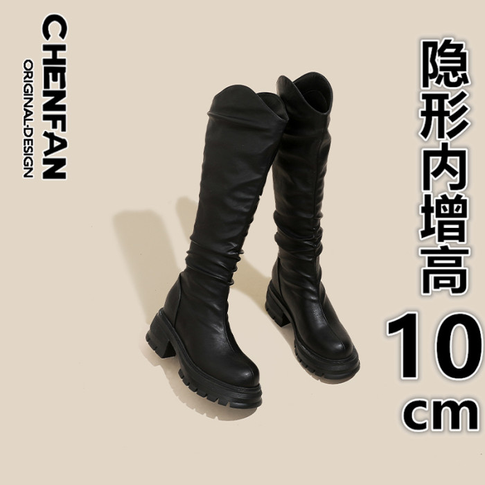 內增高10cm圓頭瘦瘦不過膝長靴長筒靴2025新款厚底堆堆靴騎士靴女