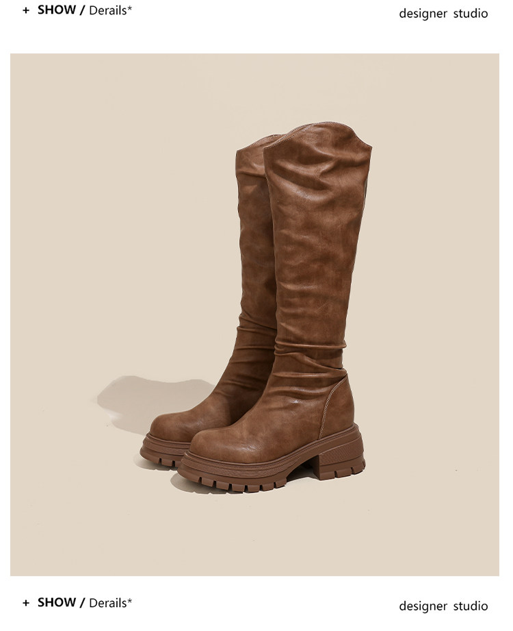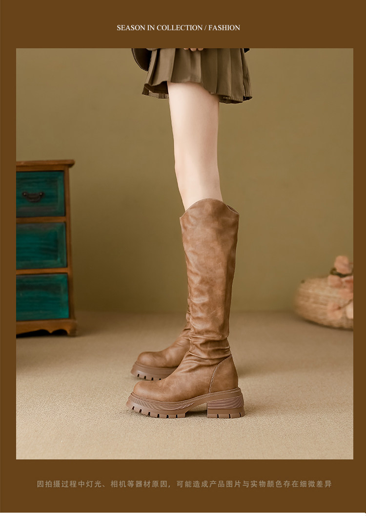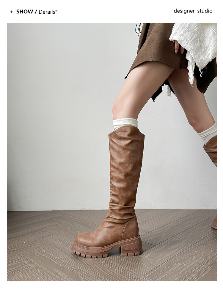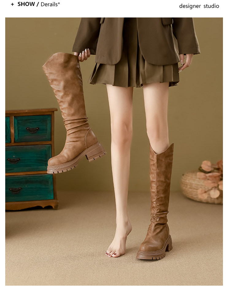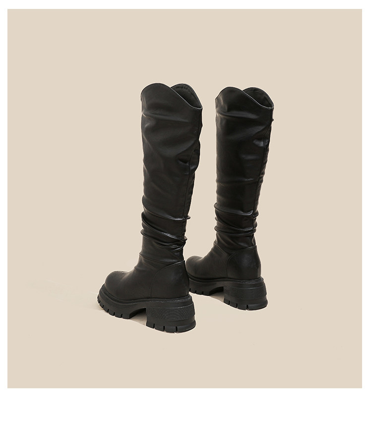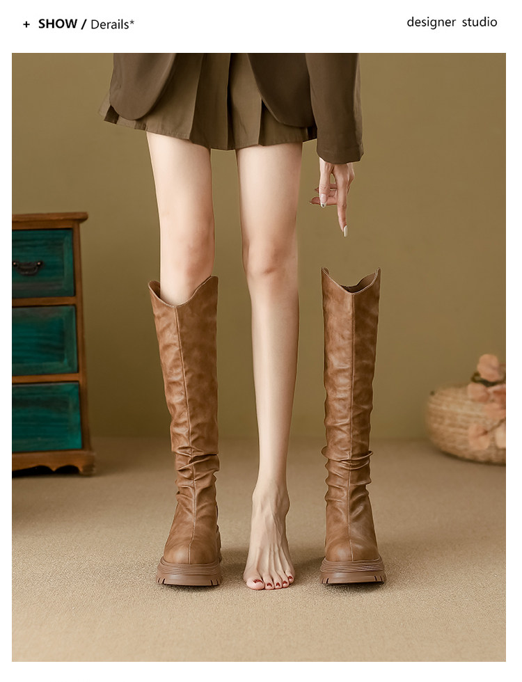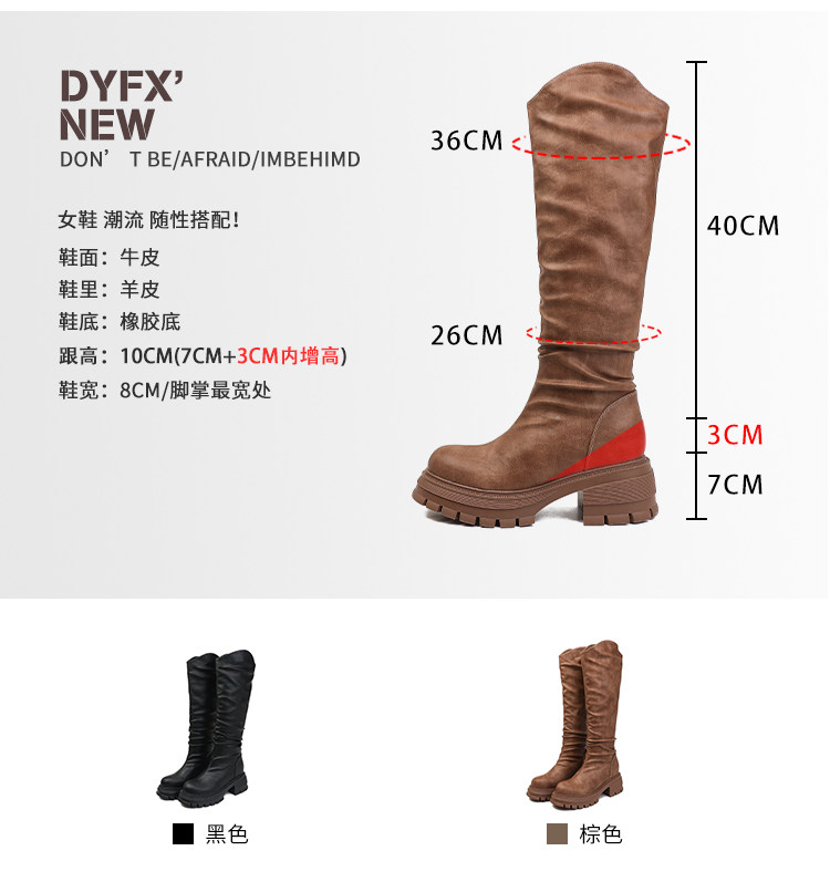 內增高10cm圓頭瘦瘦不過膝長靴長筒靴2025新款厚底堆堆靴騎士靴女