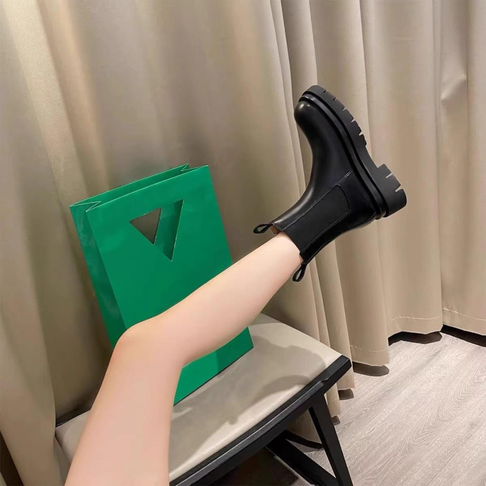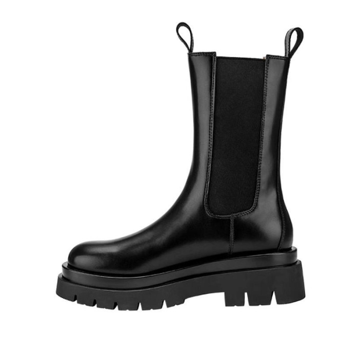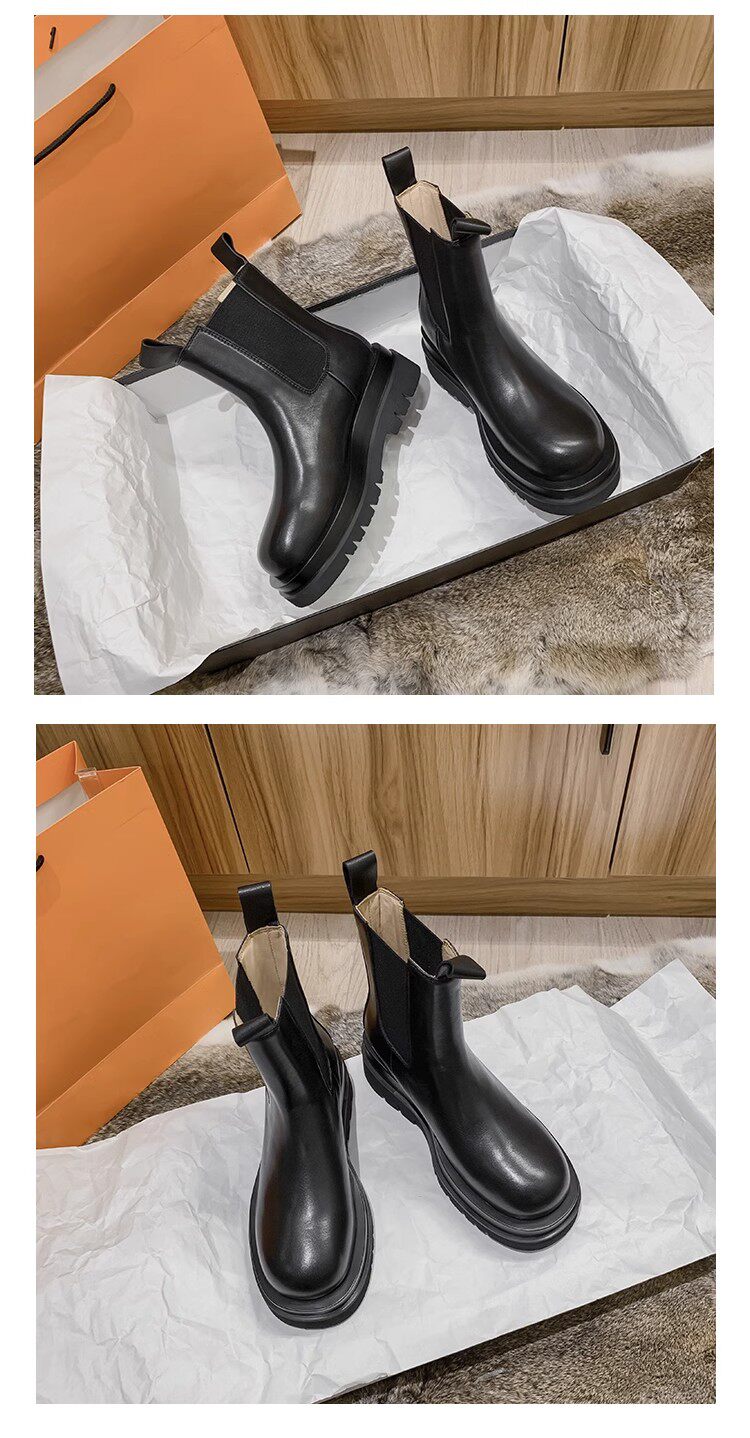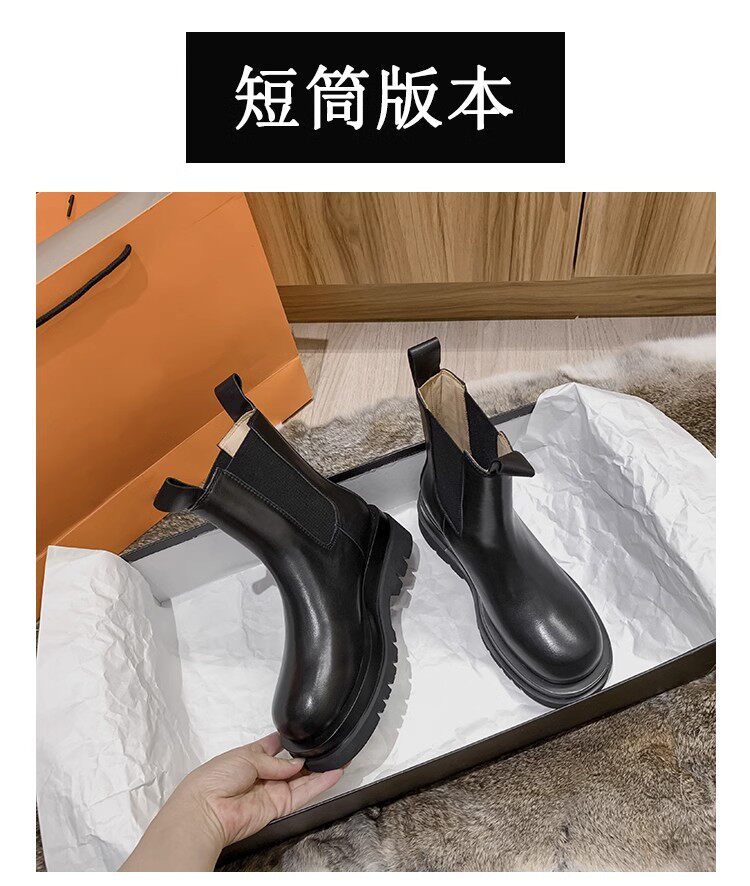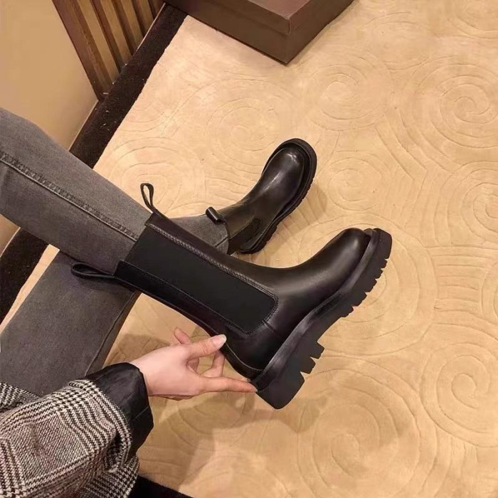 大碼女靴41一43厚底中筒切爾西靴腳寬胖英倫風菸筒短靴馬丁靴女40