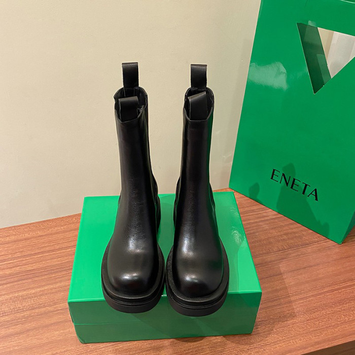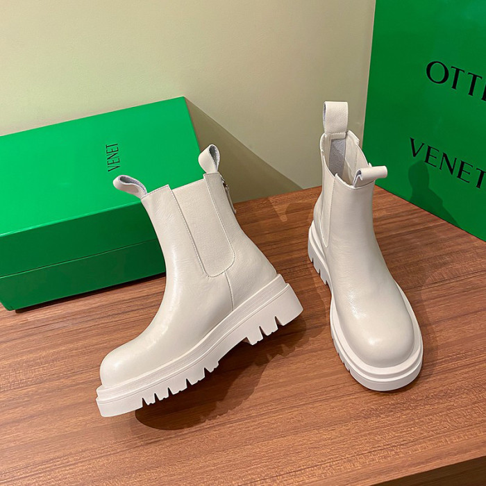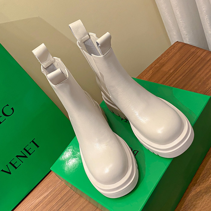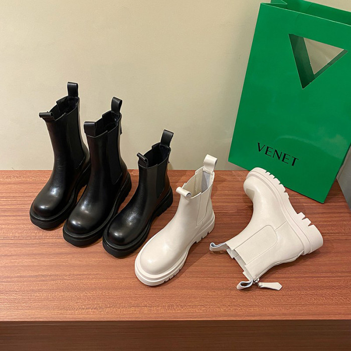 mona同款松緊口切爾西白色真皮短靴內增高大碼41一43厚底菸筒靴女