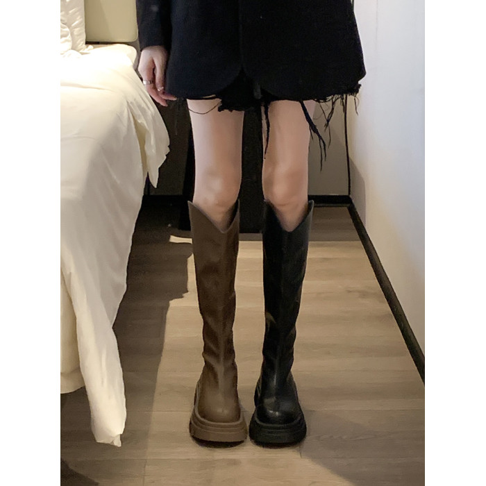 賈不假長筒靴女款2026新款春季黑色高筒靴小個子騎士靴巨好看靴子