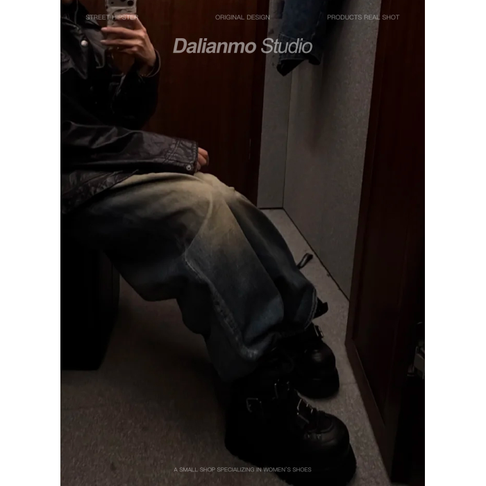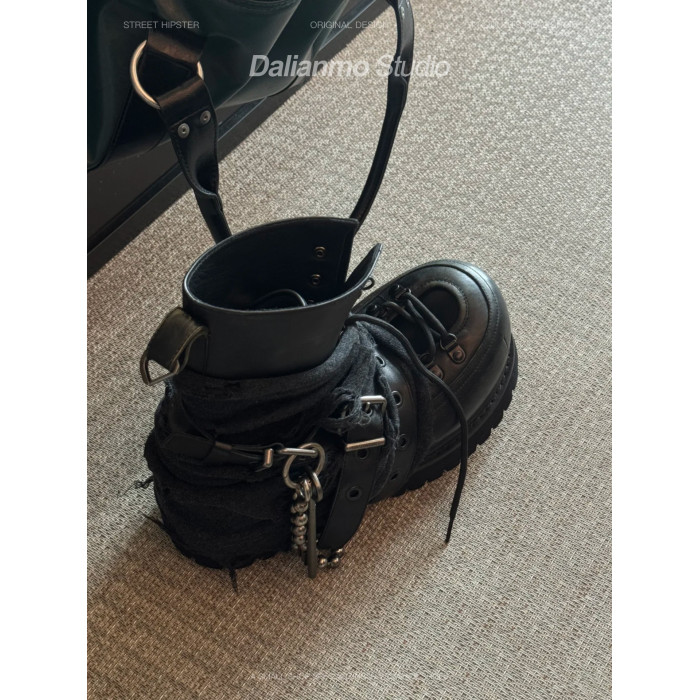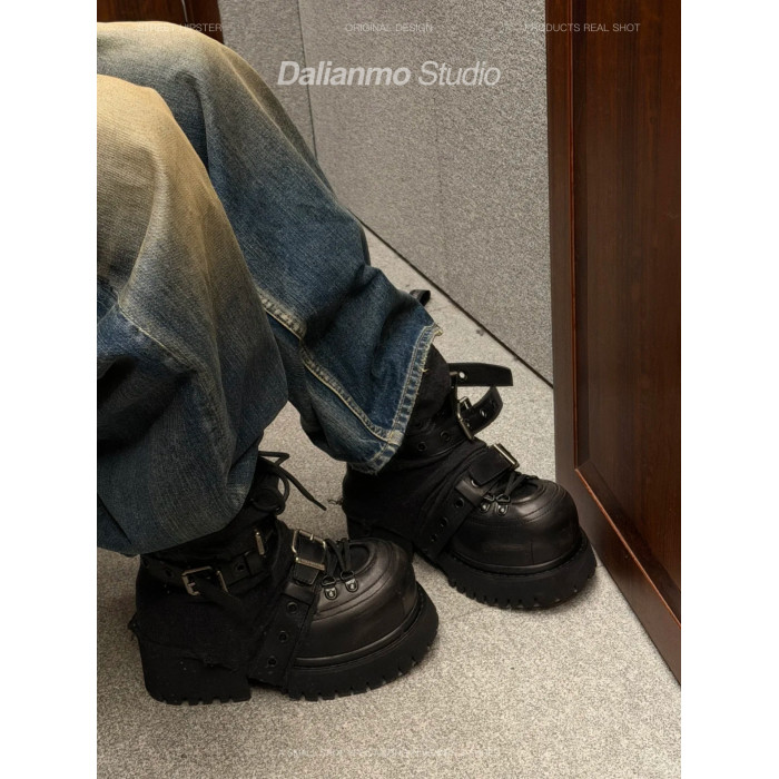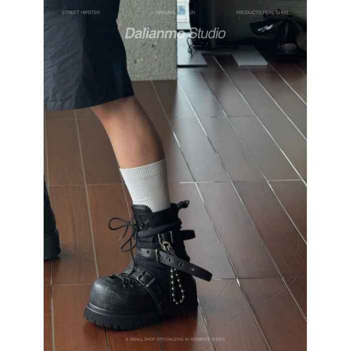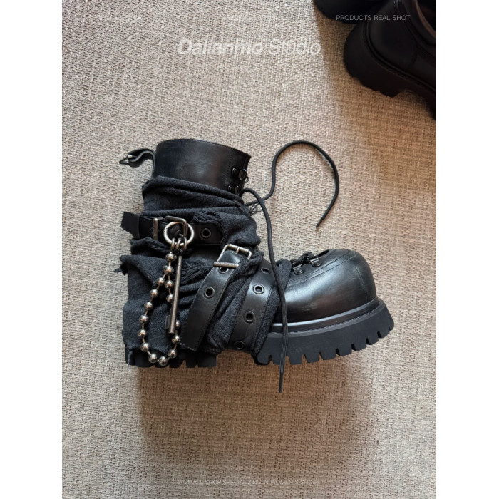 暗黑重工馬丁靴女帥氣龐克短靴厚底增高短筒靴子綑綁金屬高幫鞋潮