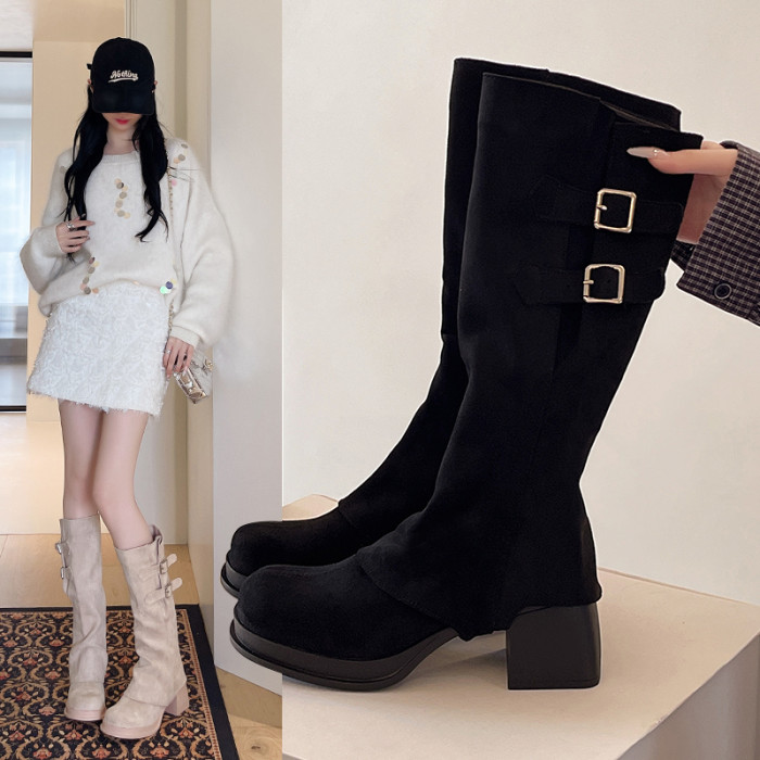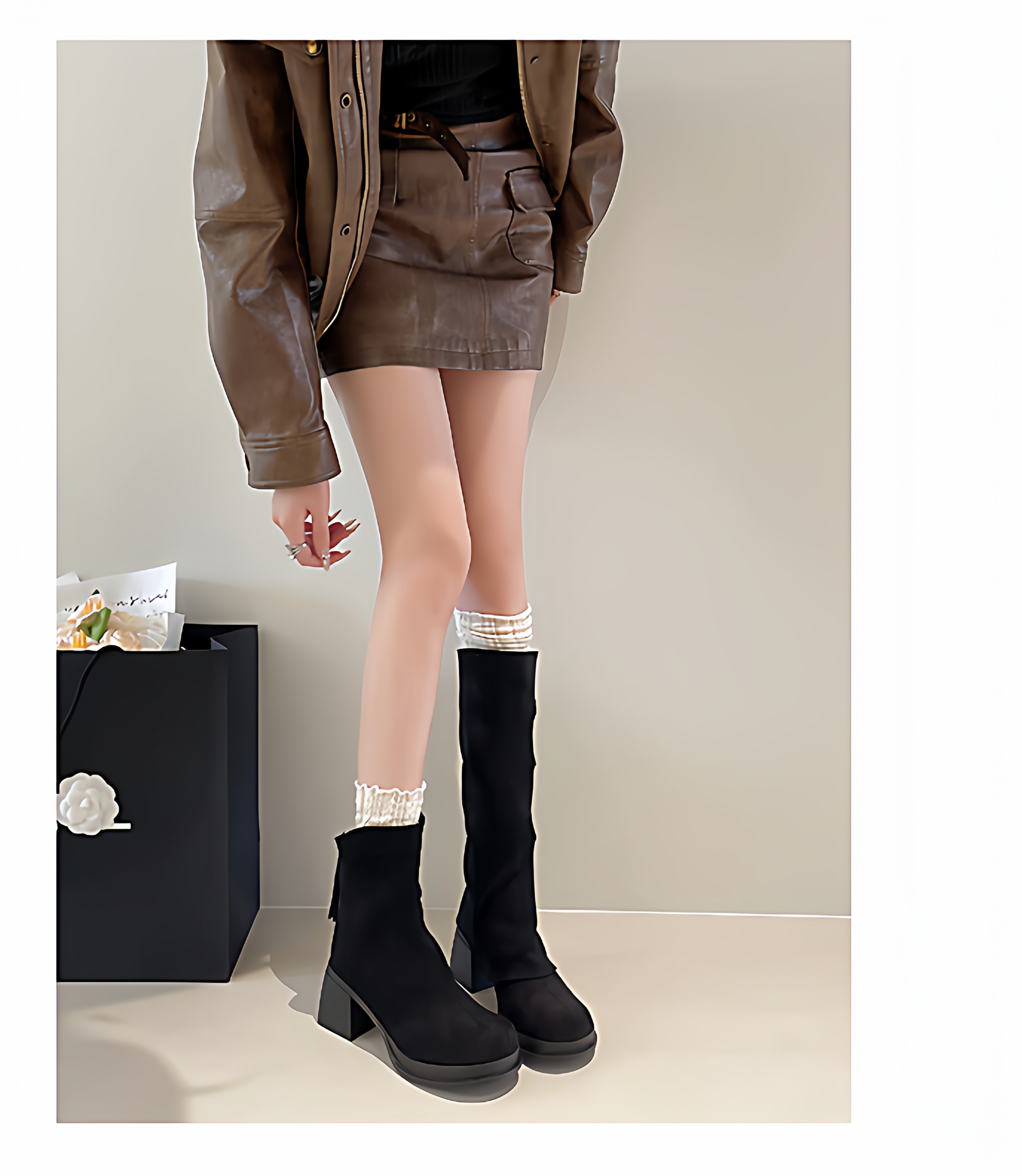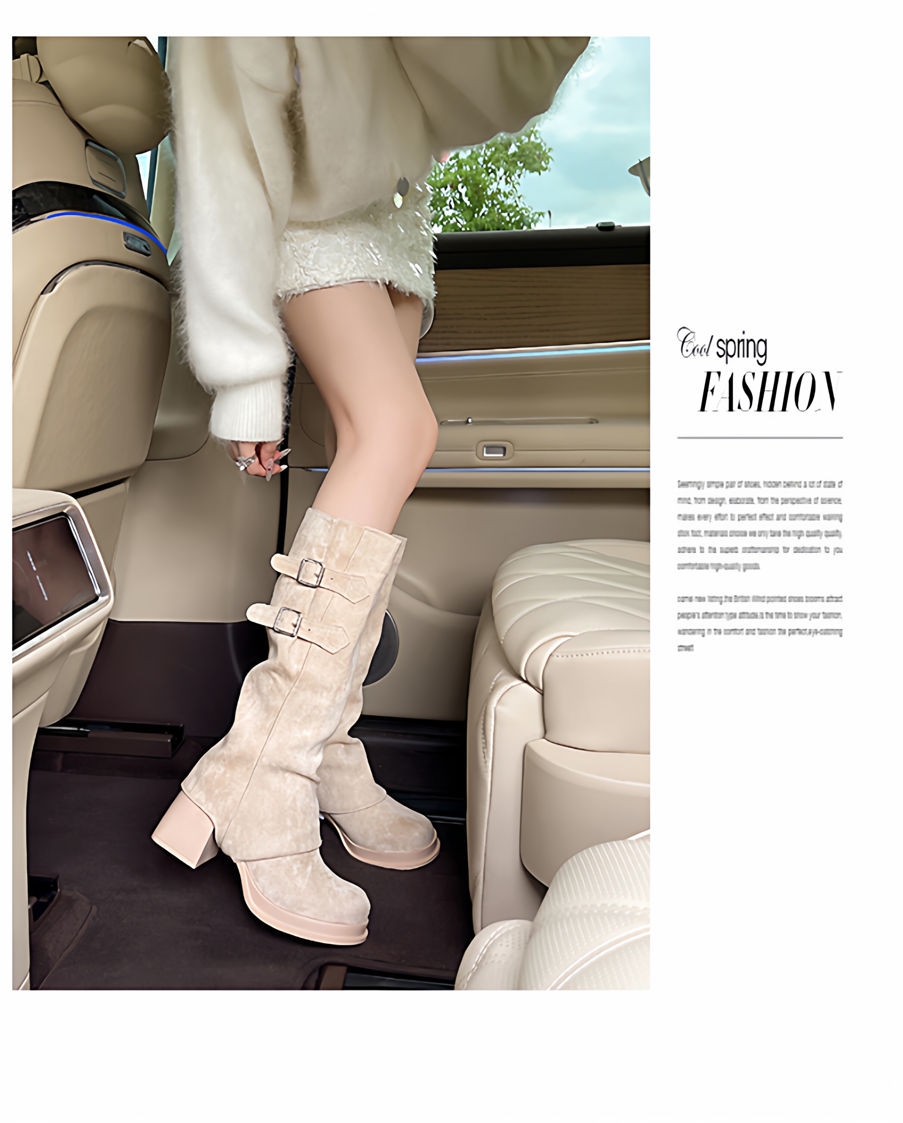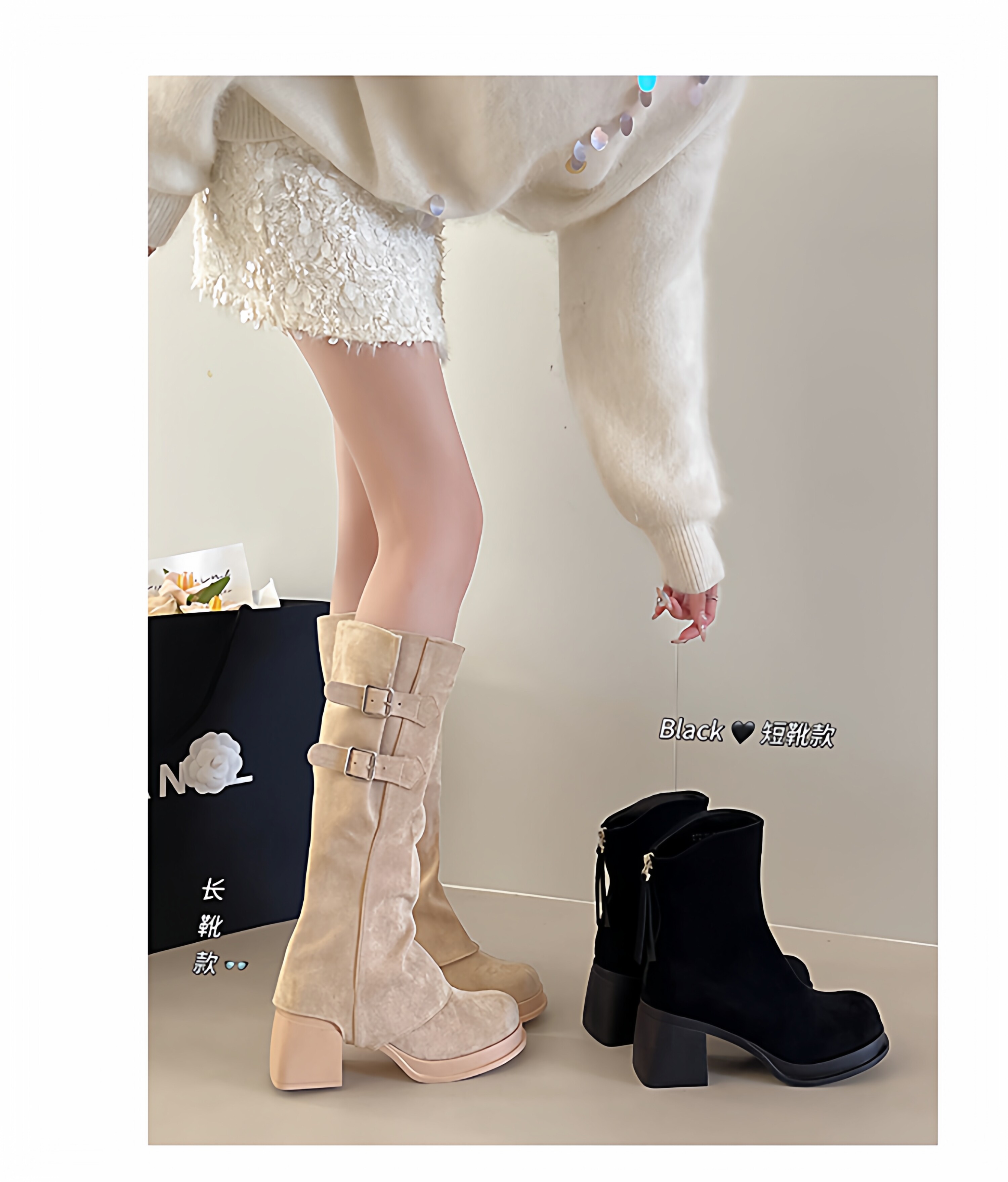 法式高跟靴子女長靴2025年新款秋冬爆款高筒可拆卸兩穿短靴瘦瘦靴