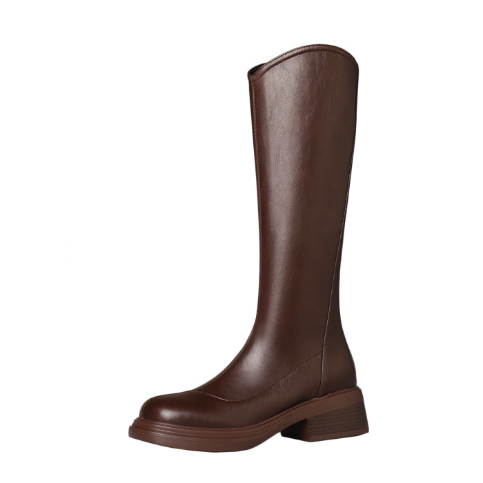 棕色厚底粗腿大筒圍女靴顯瘦粗跟彈力v口長筒靴胖mm高筒騎士靴子